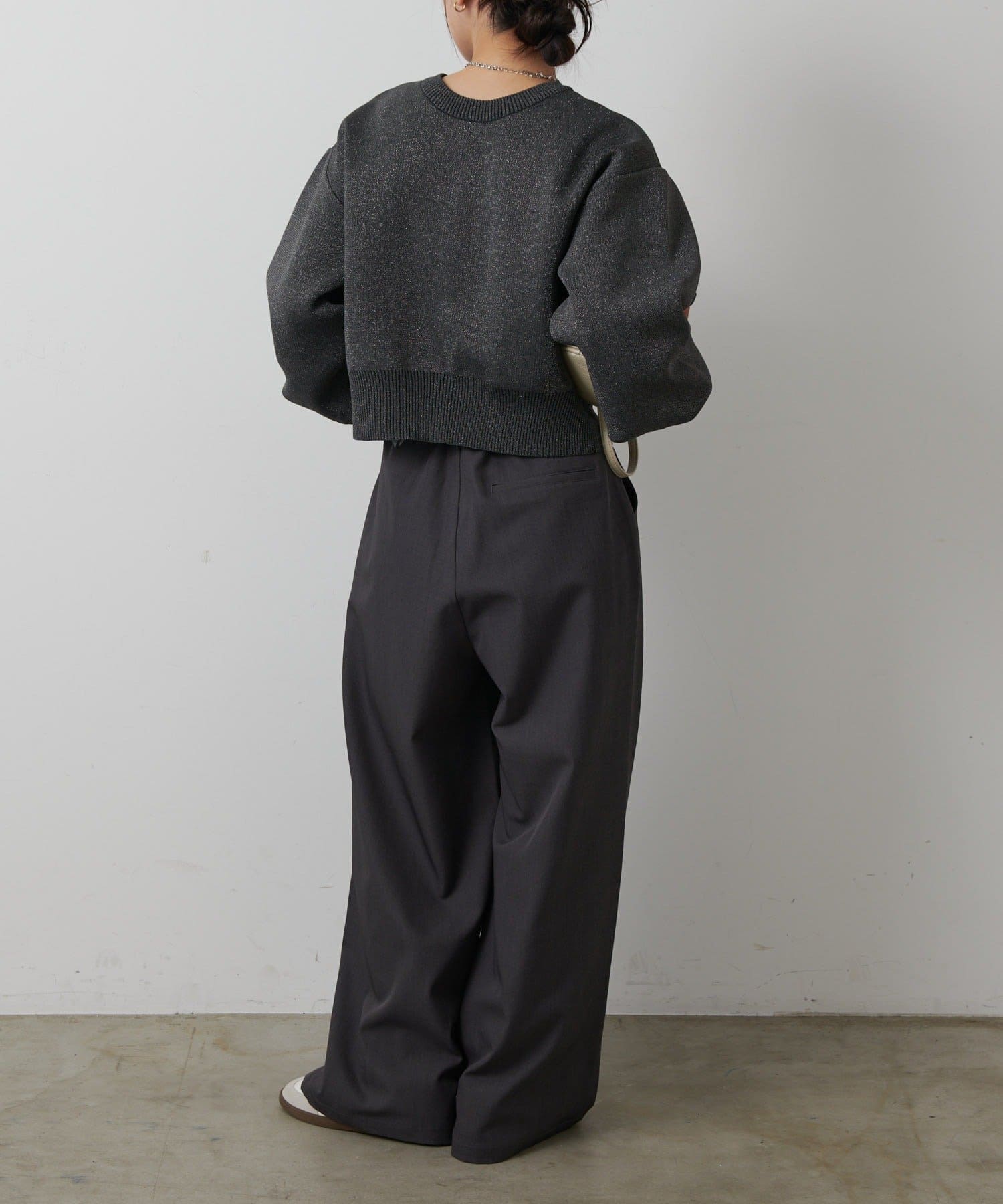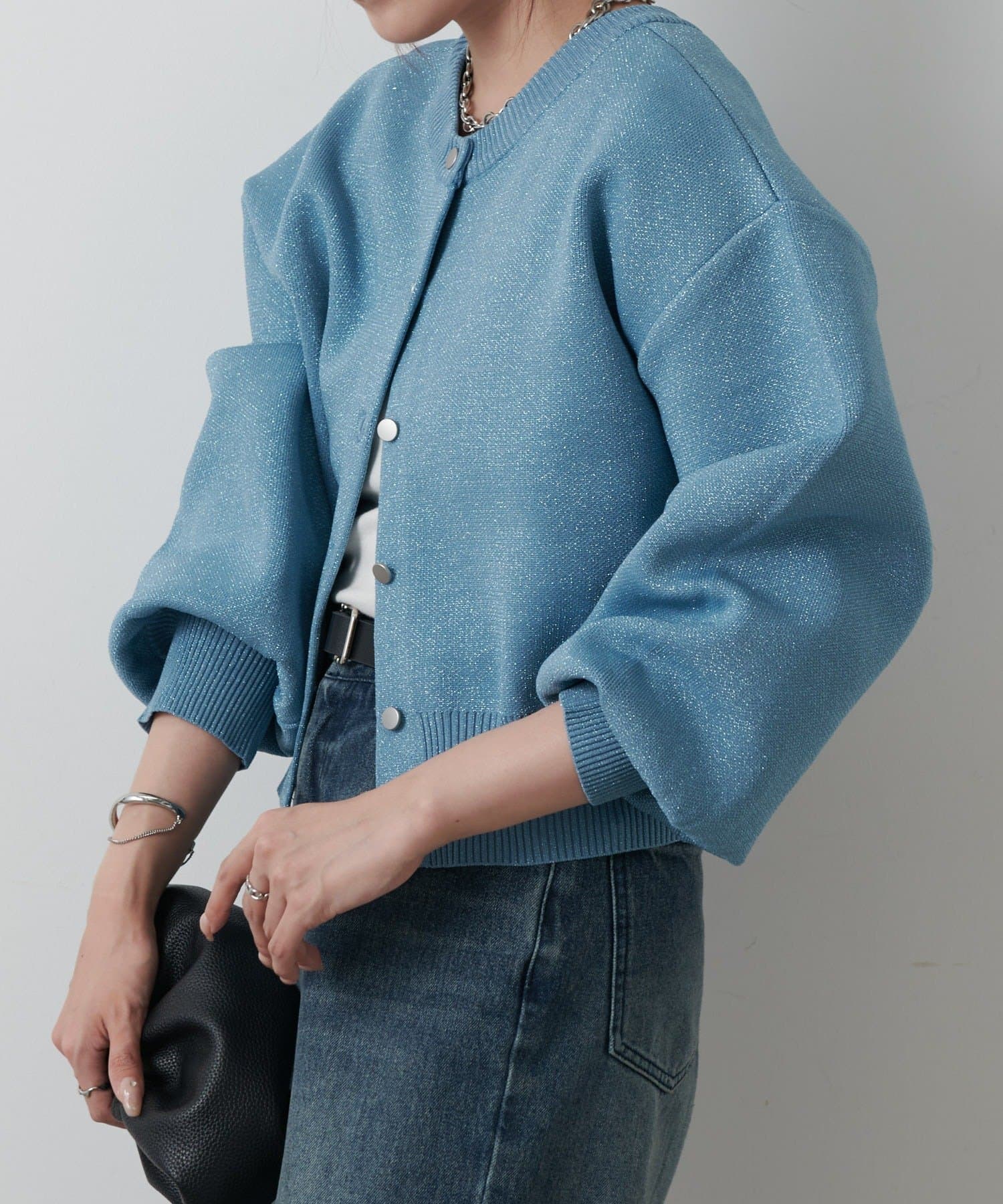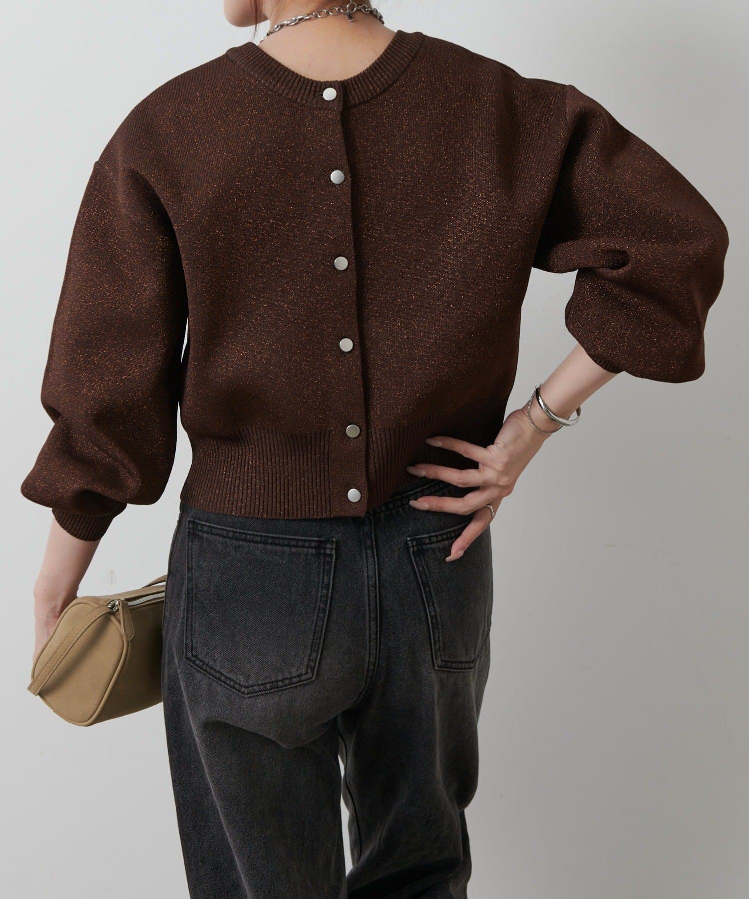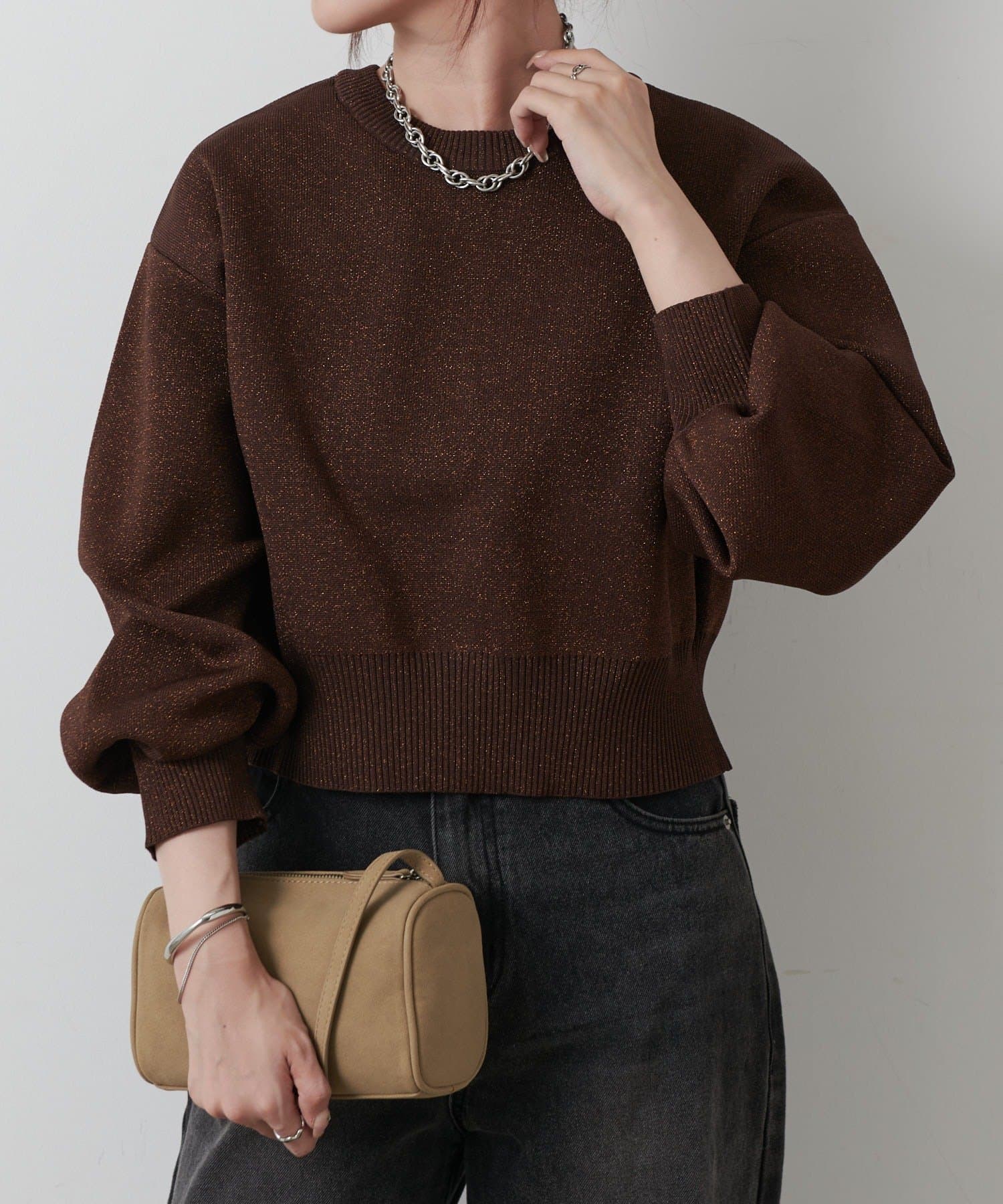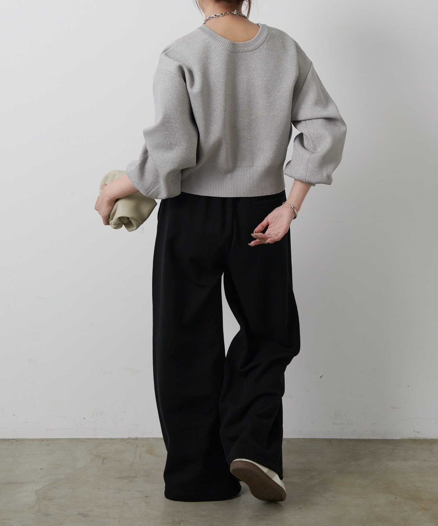 短丈シルエットとボリューム袖でトレンド感を高め、コーディネートしやすいサイズ感になっています。