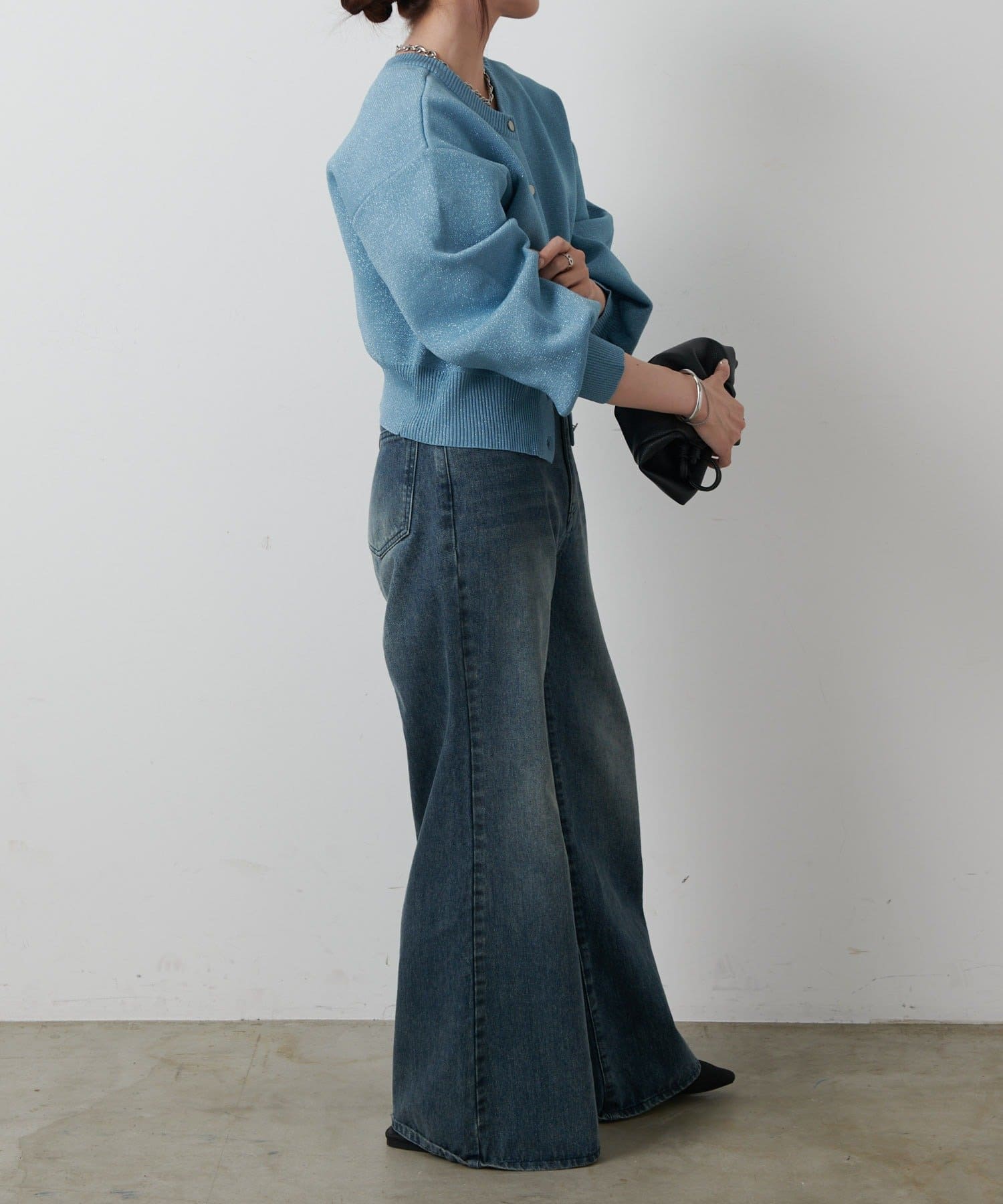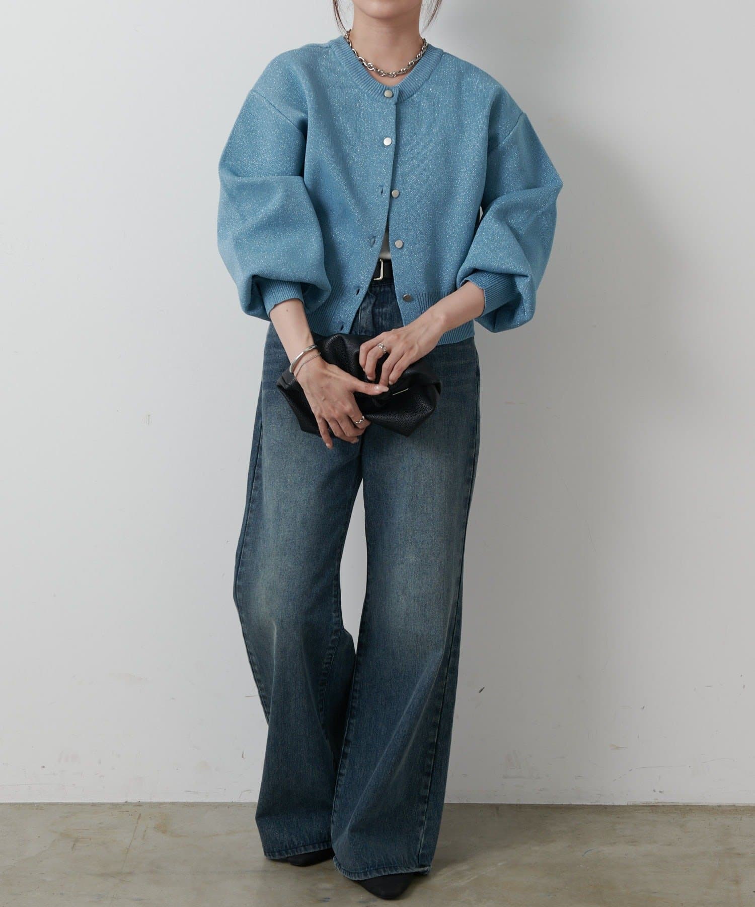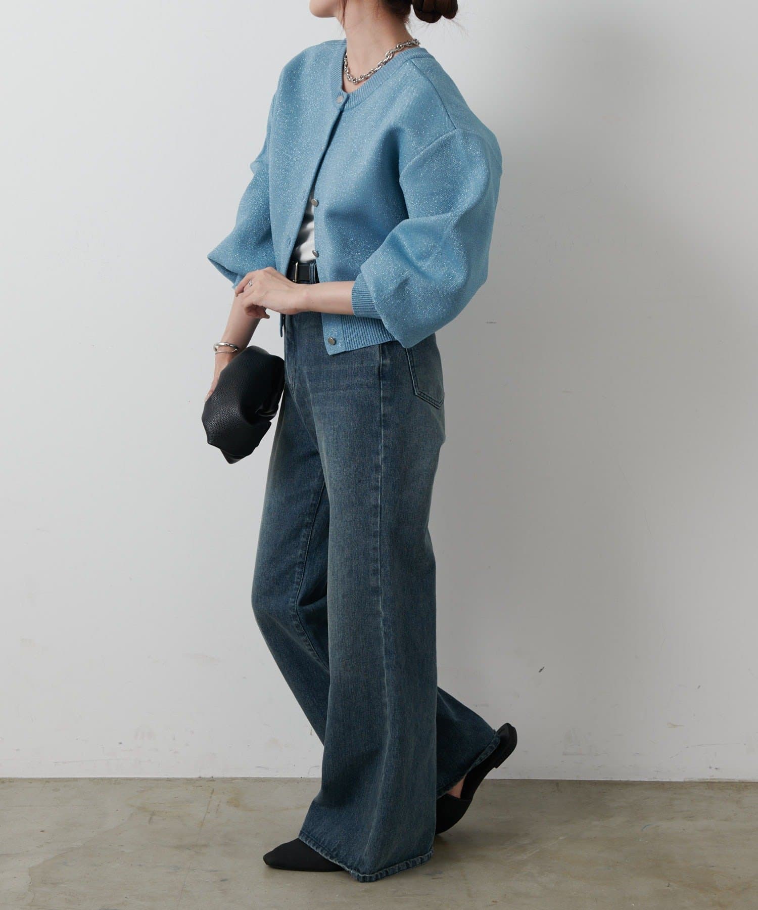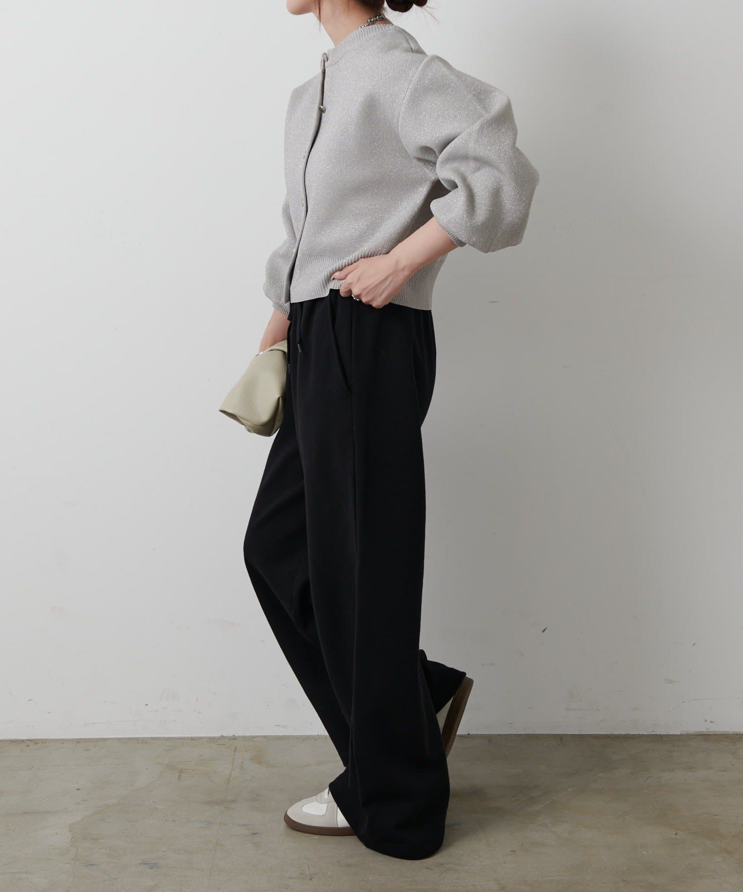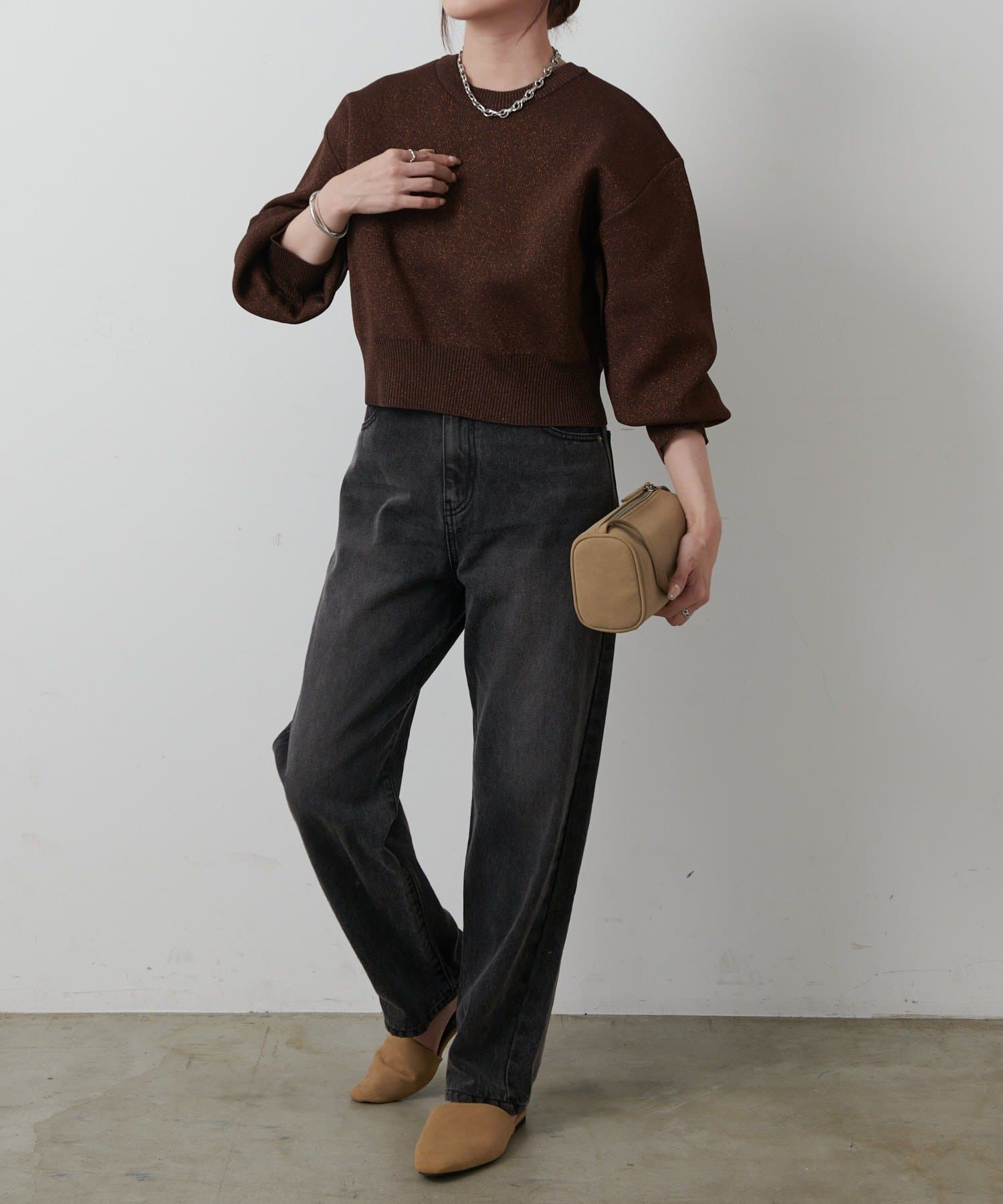 短丈シルエットとボリューム袖でトレンド感を高め、コーディネートしやすいサイズ感になっています。