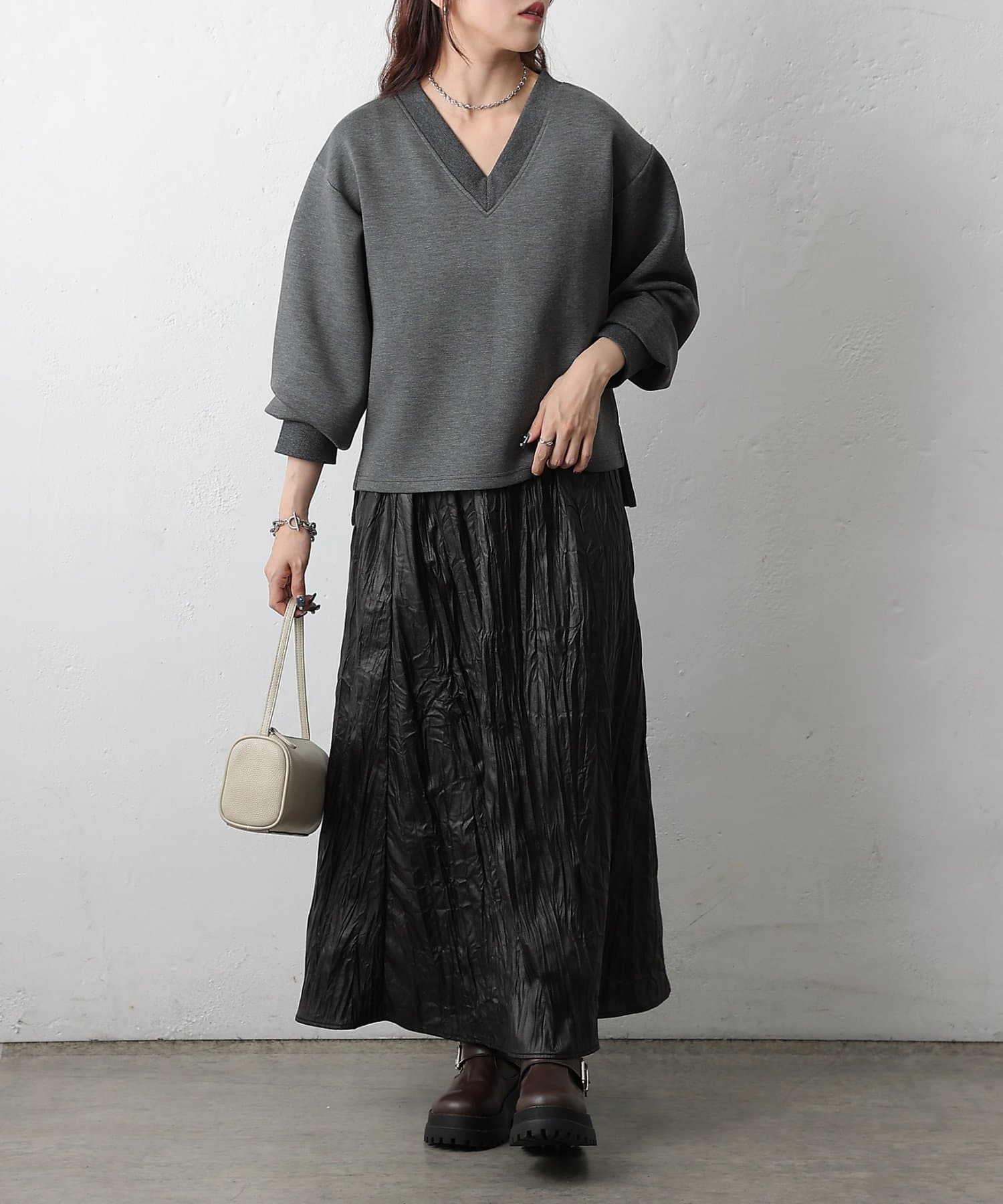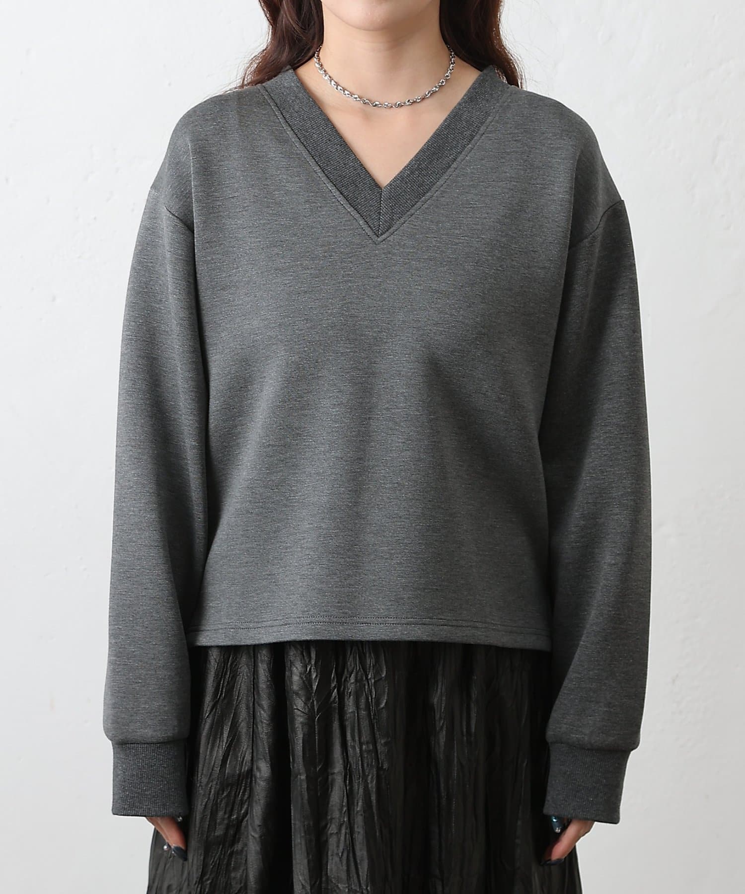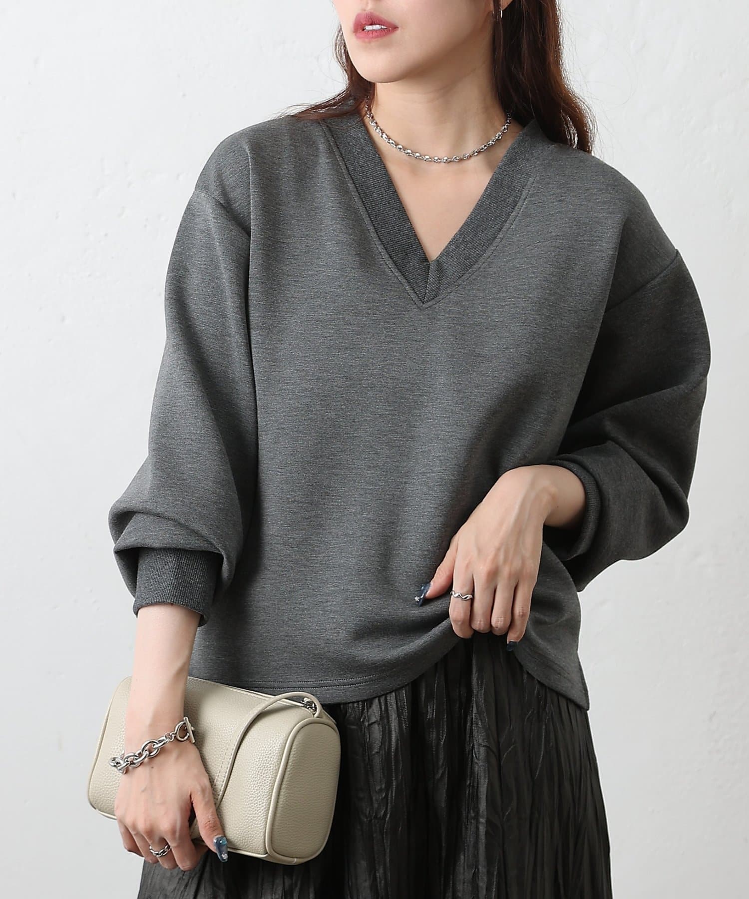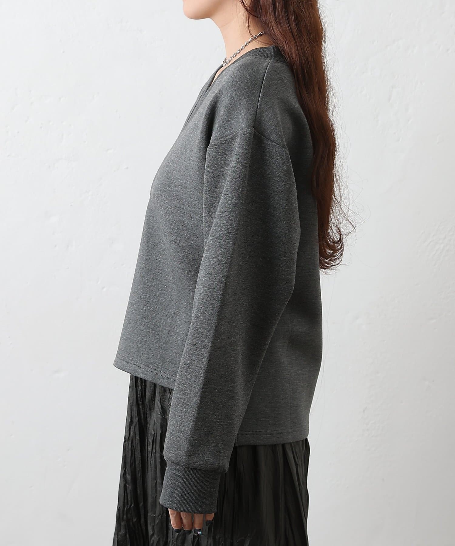 しっとりとしたハリ感と柔らかな肌ざわりが魅力のダンボールニット素材を使用したVネックプルオーバーです。