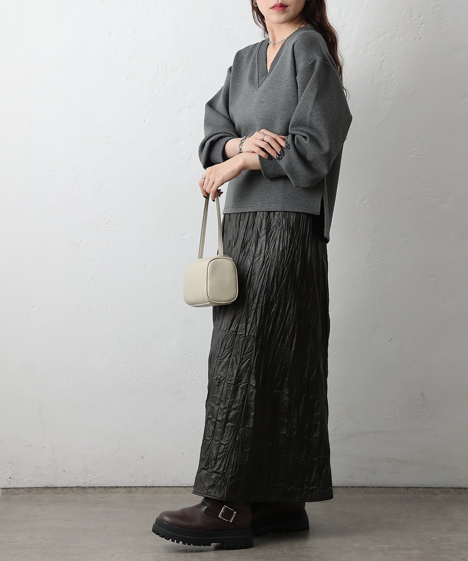 程よい厚みと立体感のあるフォルムが、体のラインを拾わず美しいシルエットをキープします。