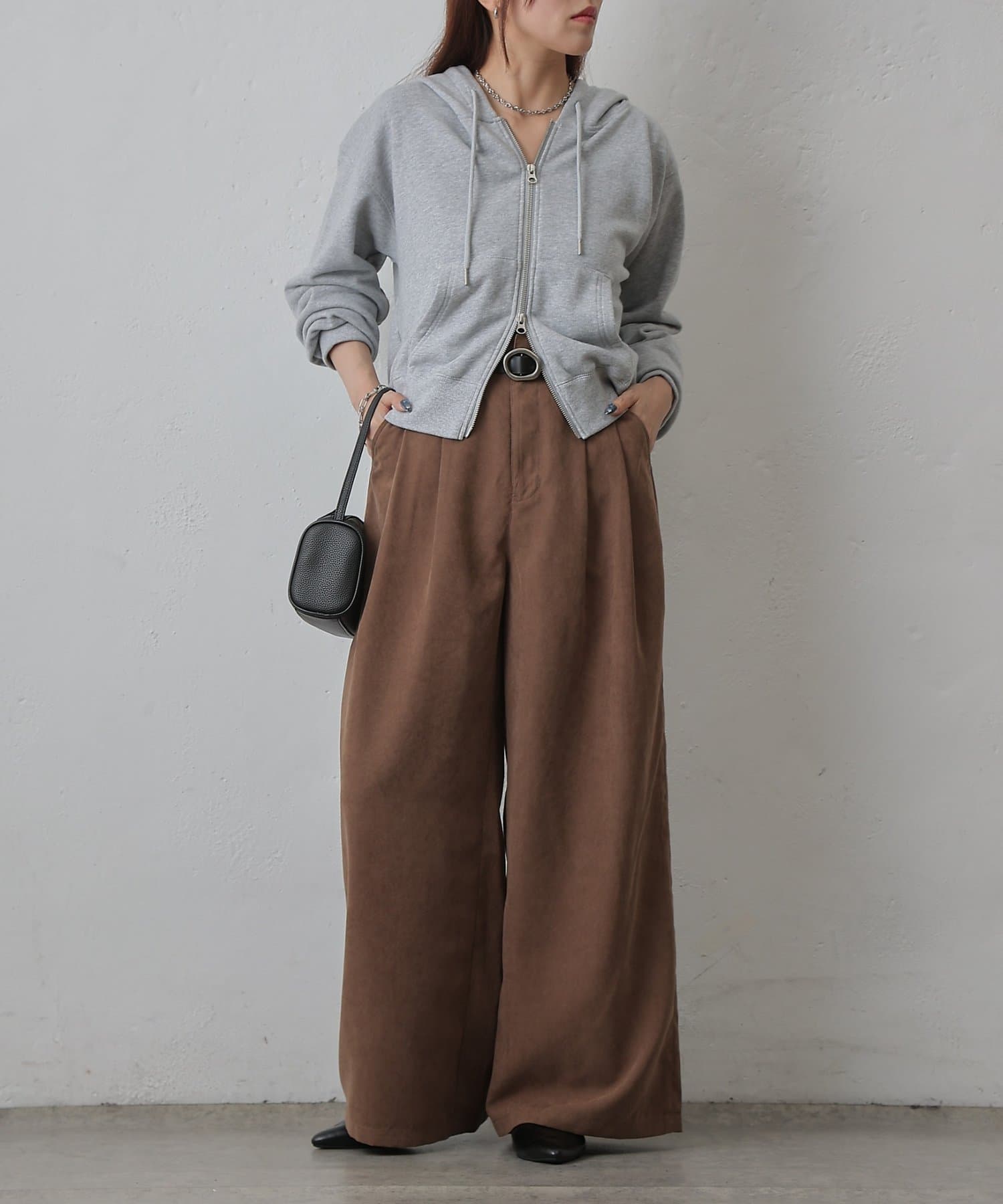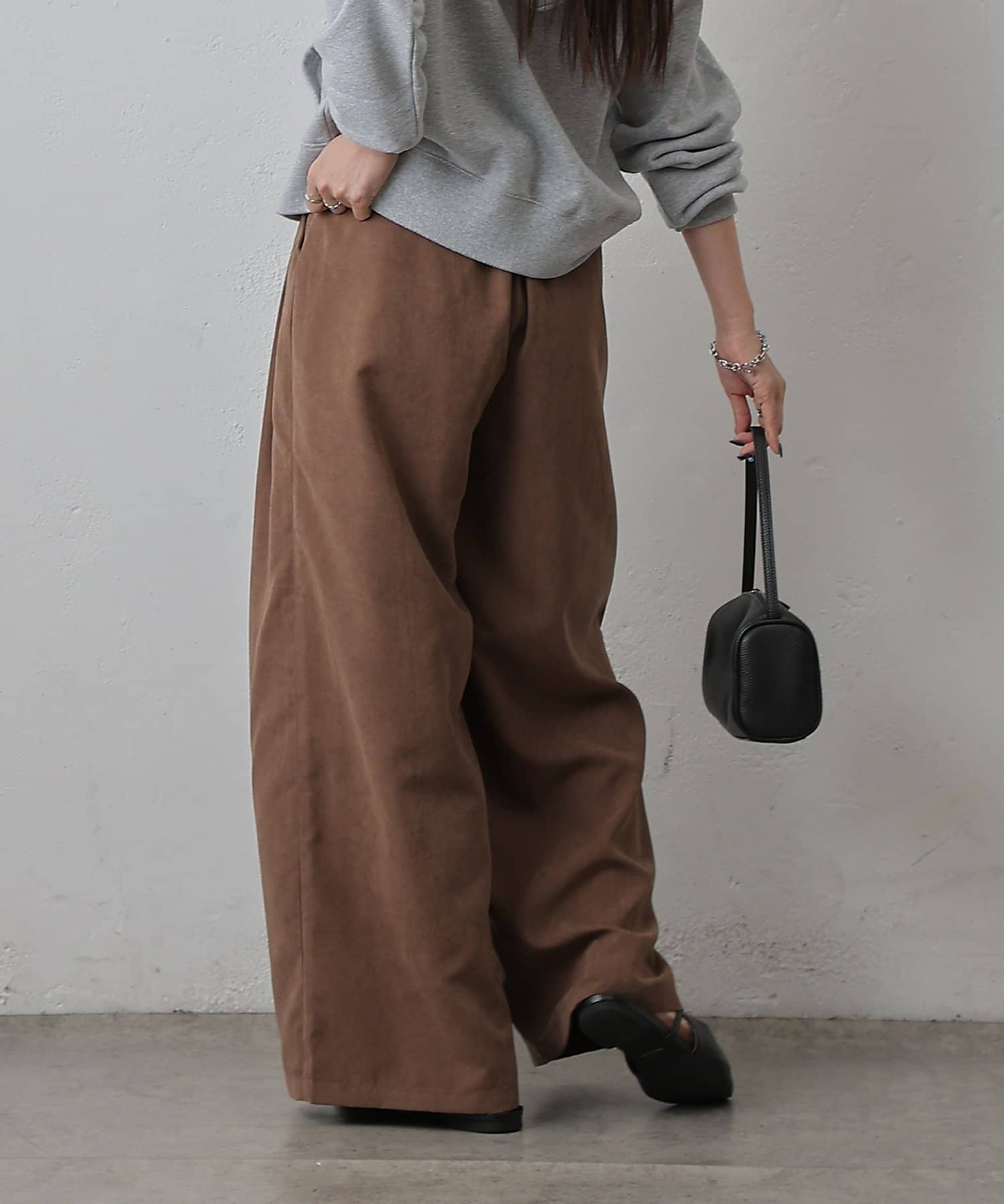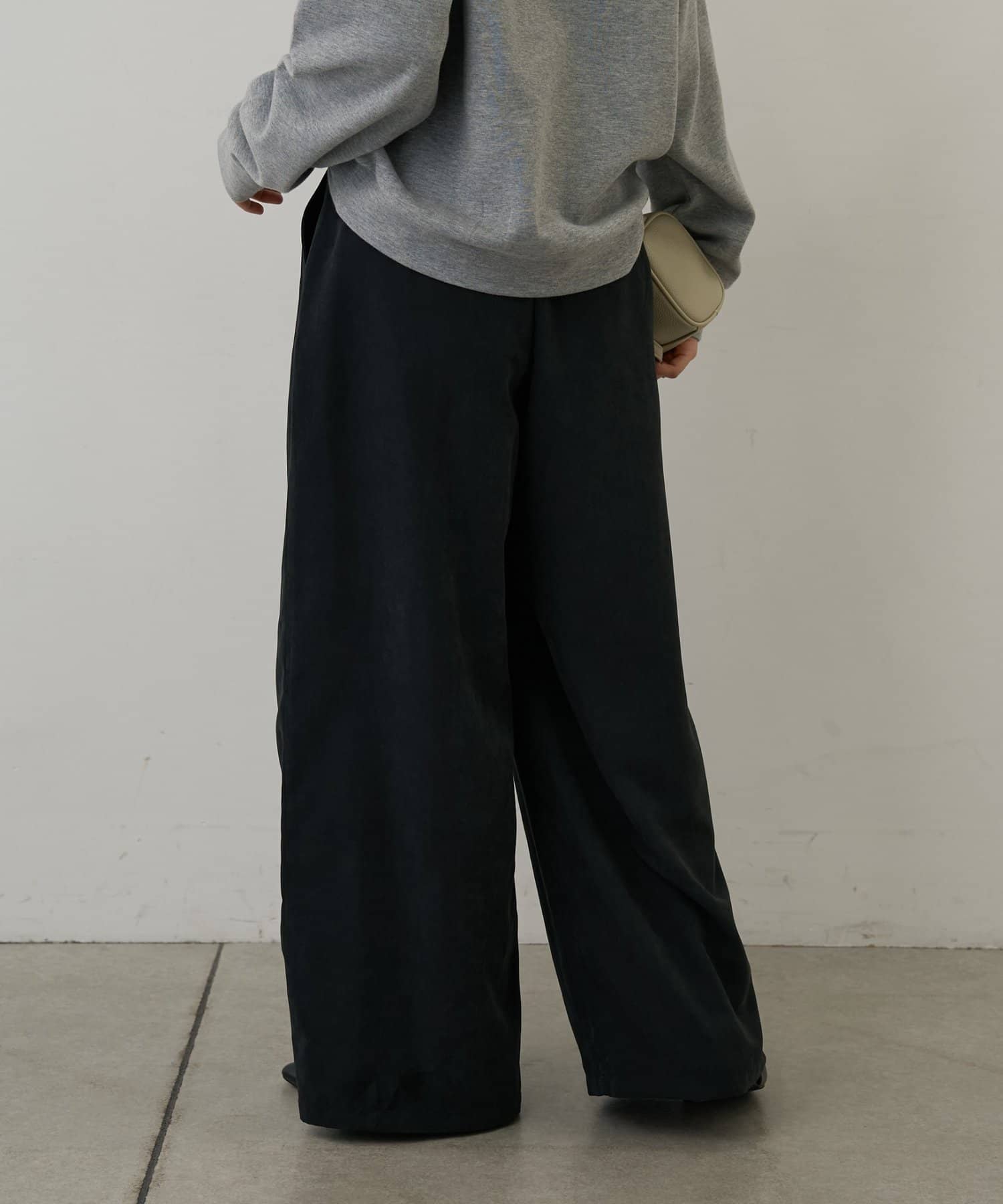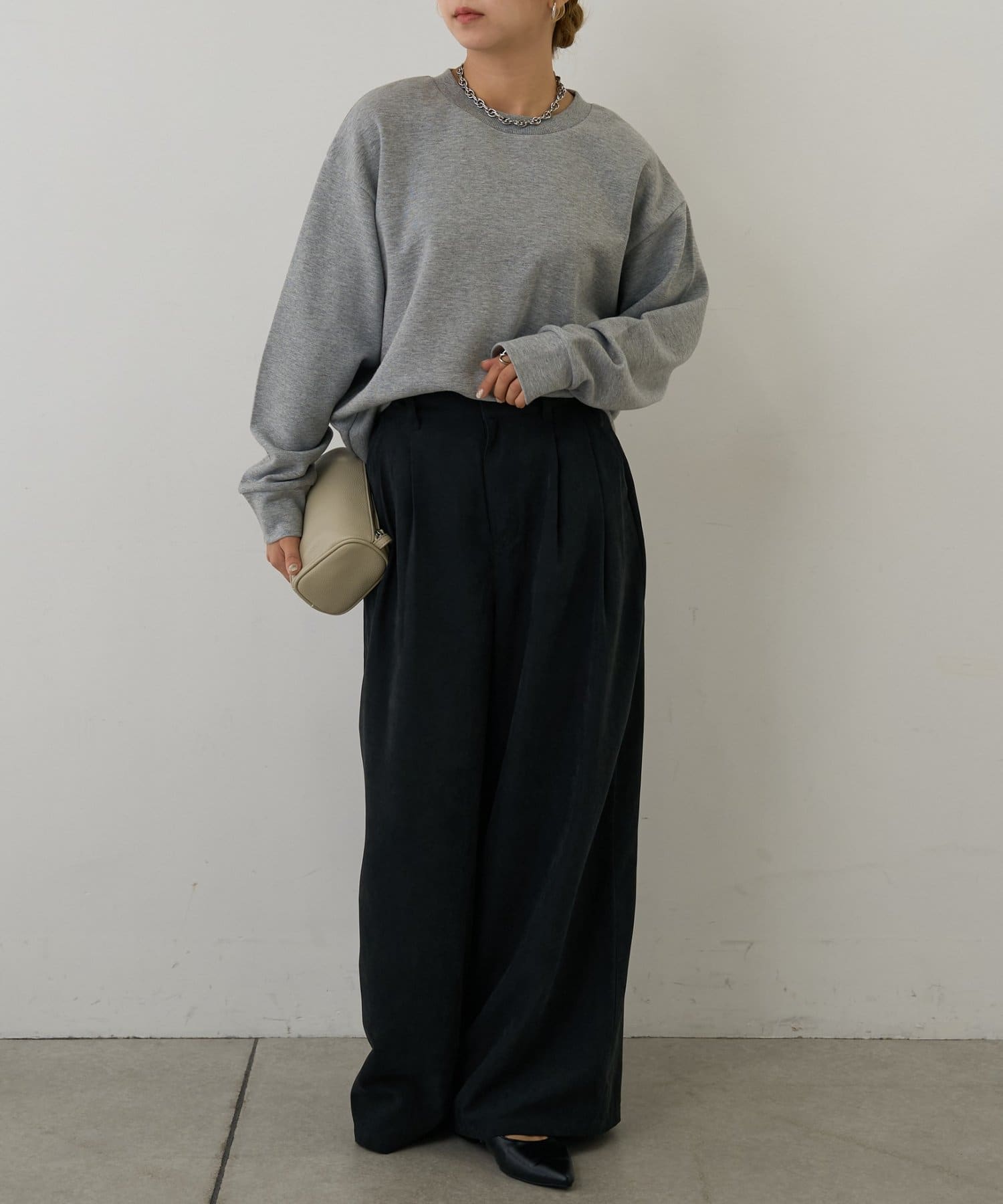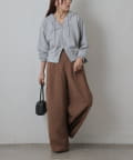 ブラウスやTシャツ、スウェットなどいろいろなアイテムと相性もいいので着回しにも困らないワイドパンツです。