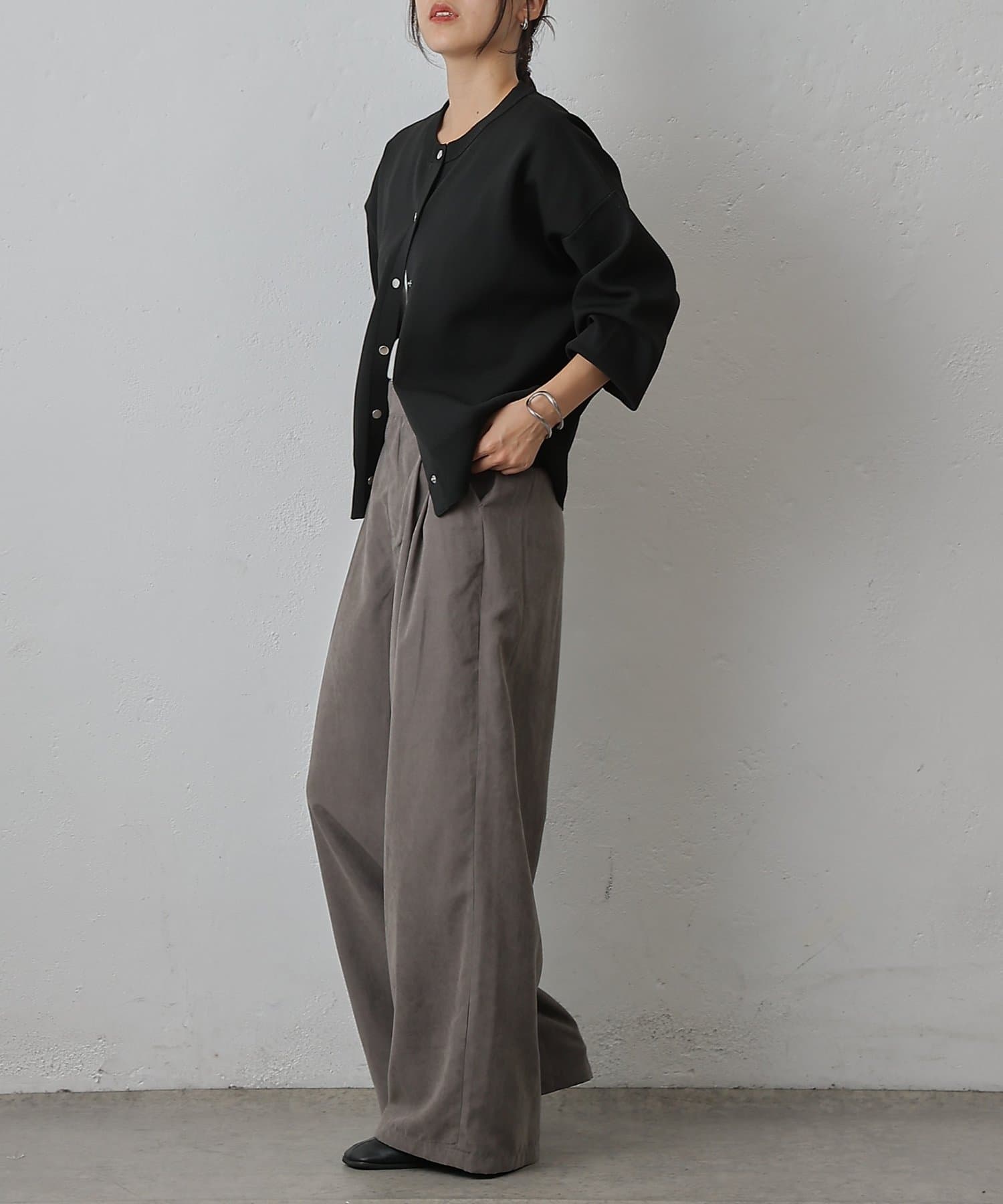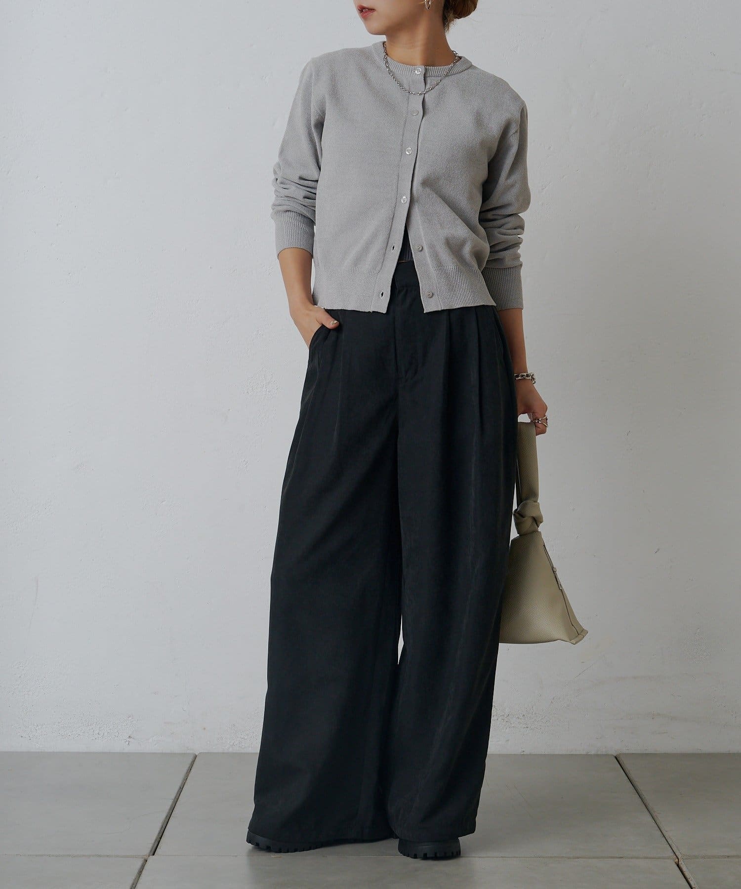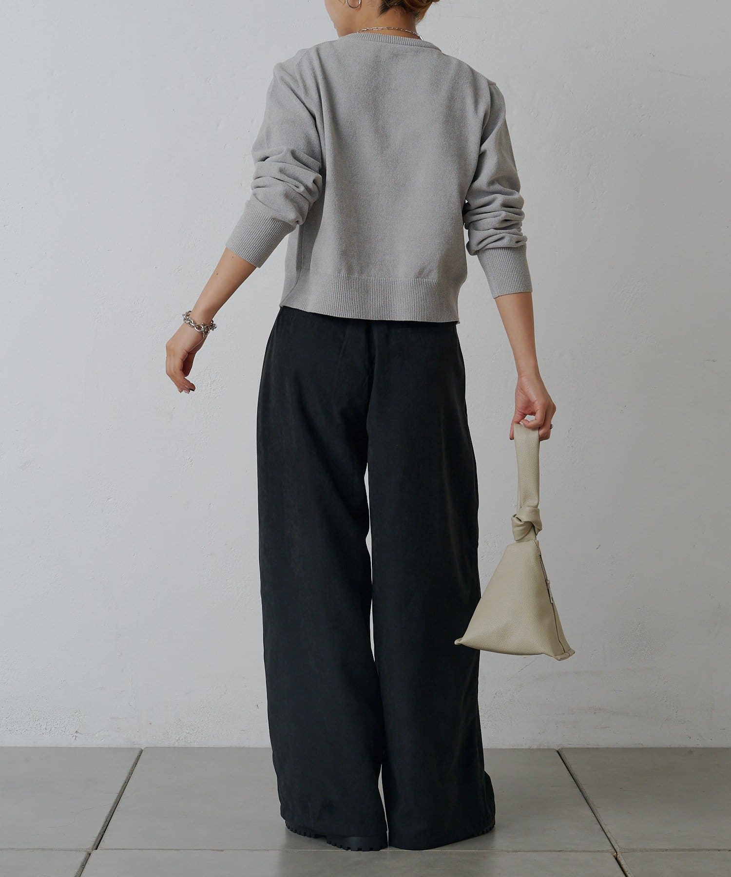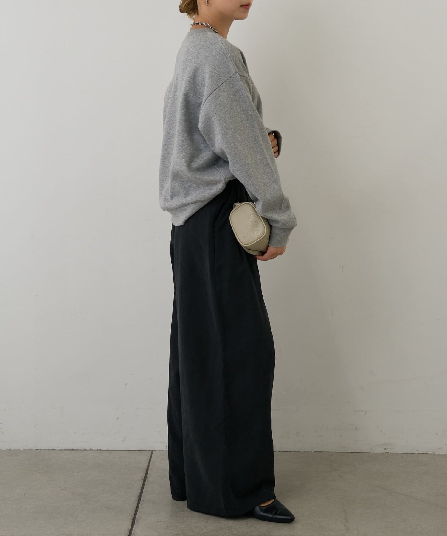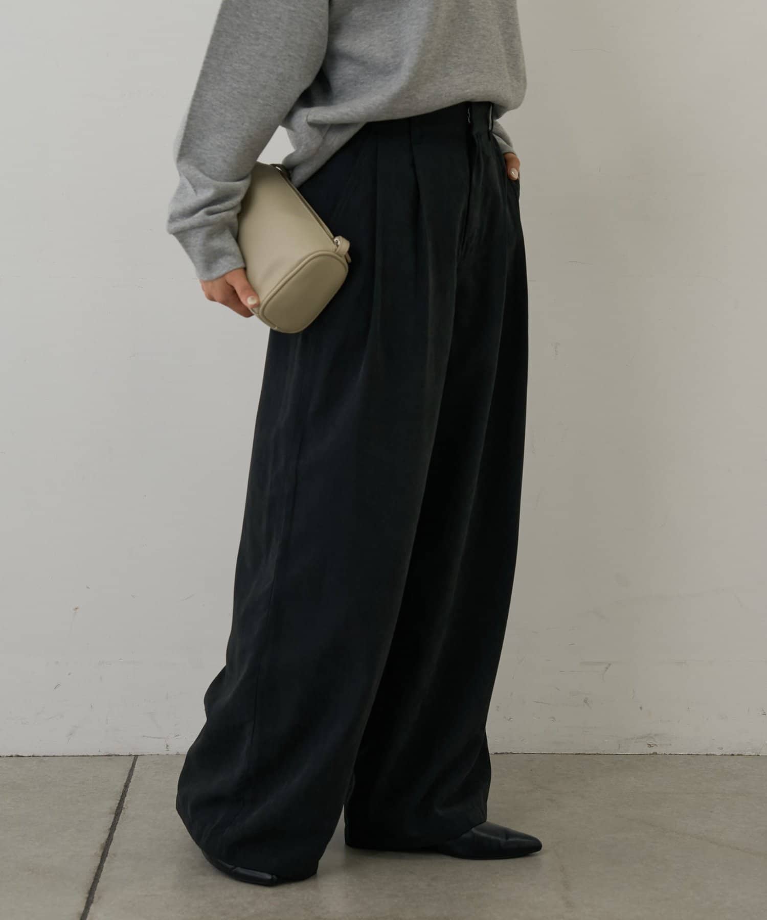 ブラウスやTシャツ、スウェットなどいろいろなアイテムと相性もいいので着回しにも困らないワイドパンツです。
