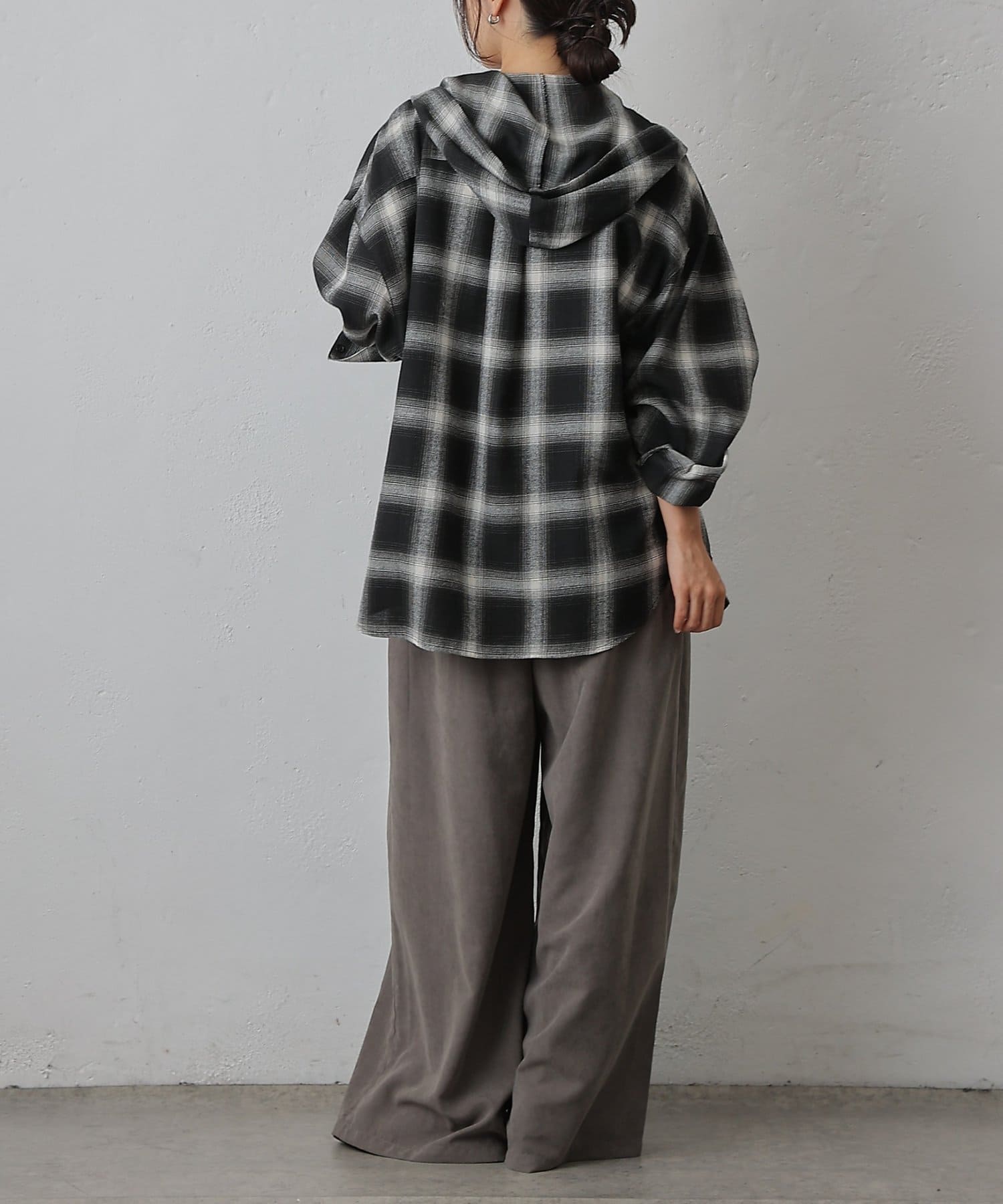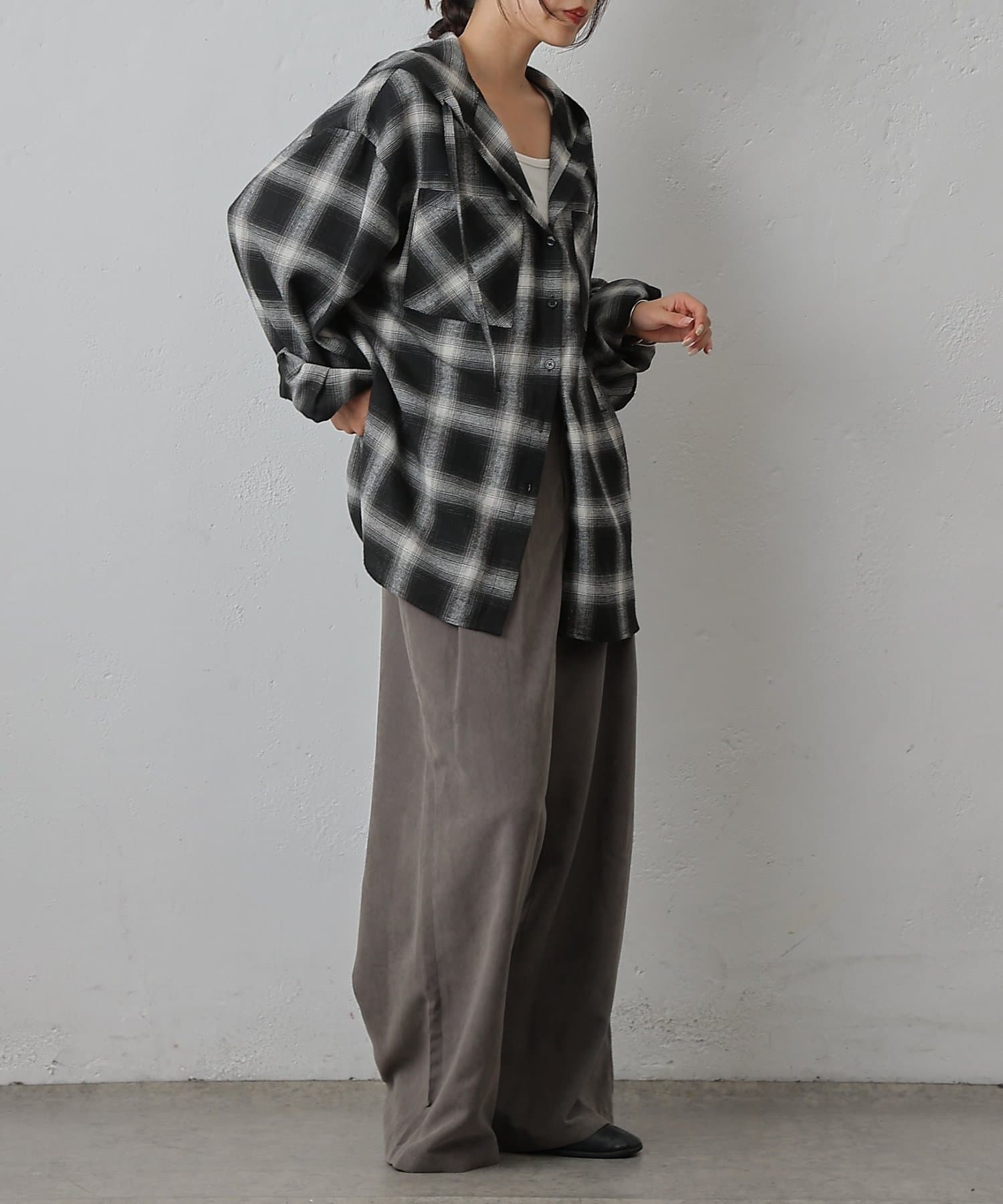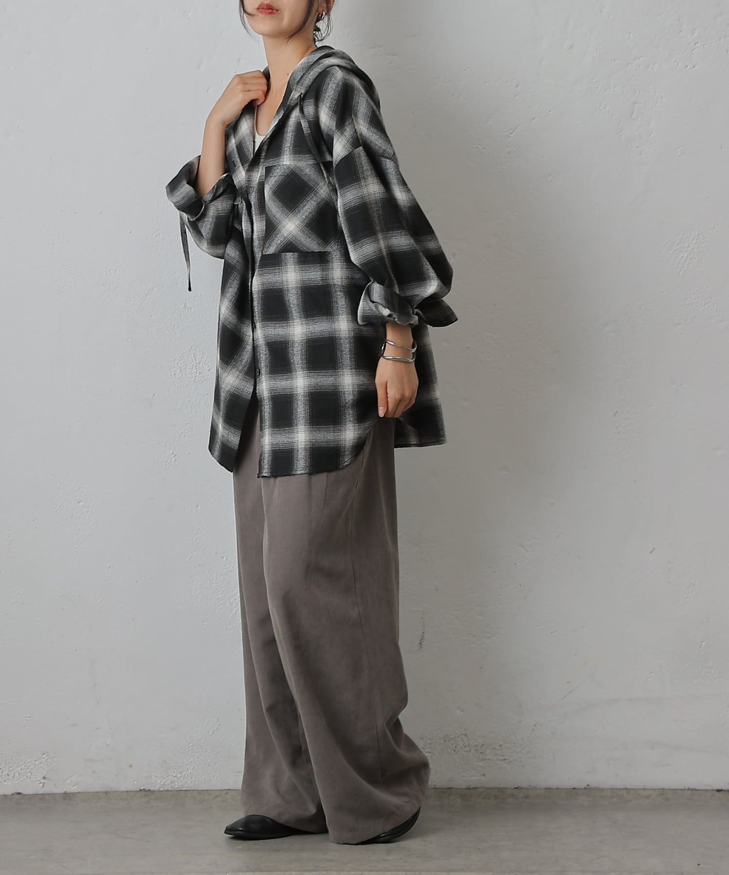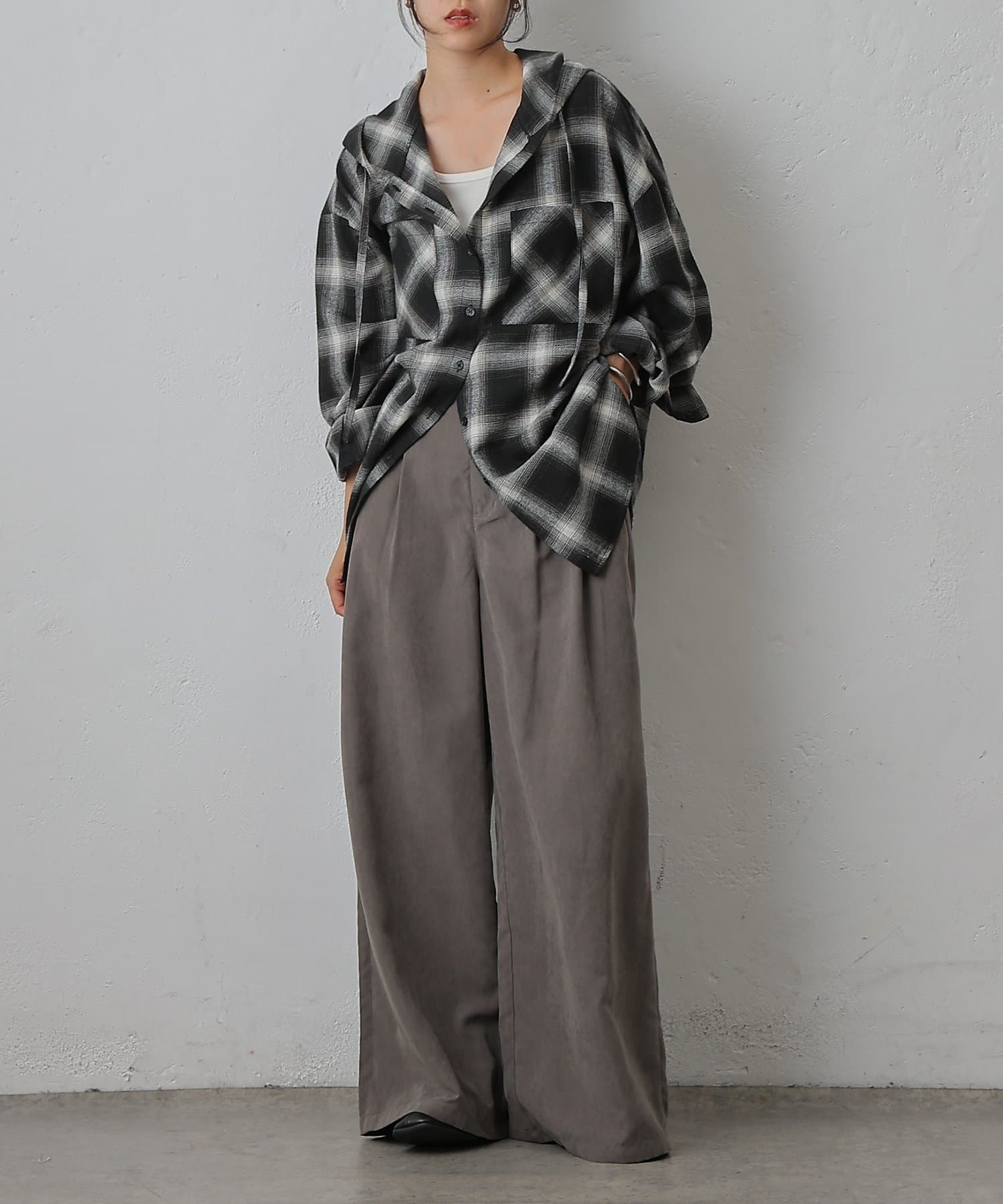 ブラウスやTシャツ、スウェットなどいろいろなアイテムと相性もいいので着回しにも困らないワイドパンツです。