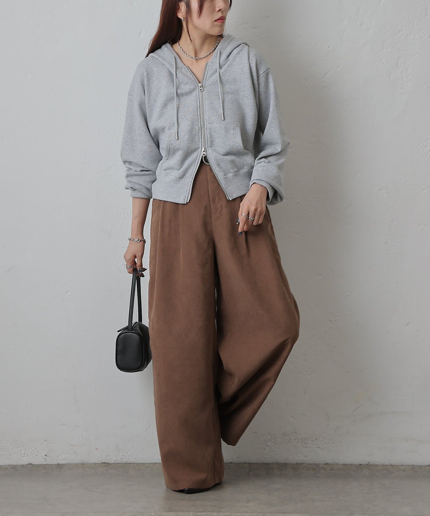 【しなやかな肌触りのピーチ起毛2タックパンツ】
