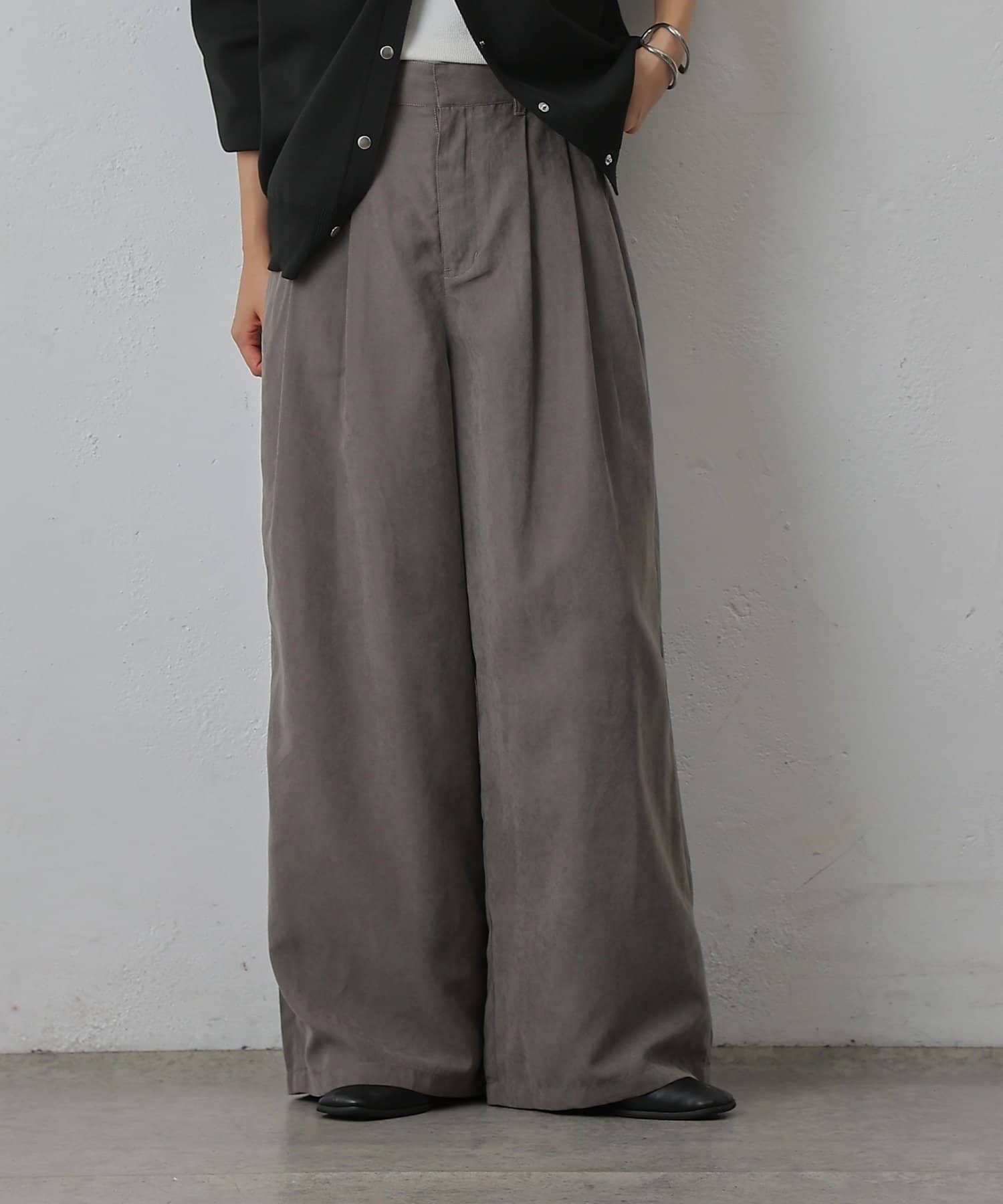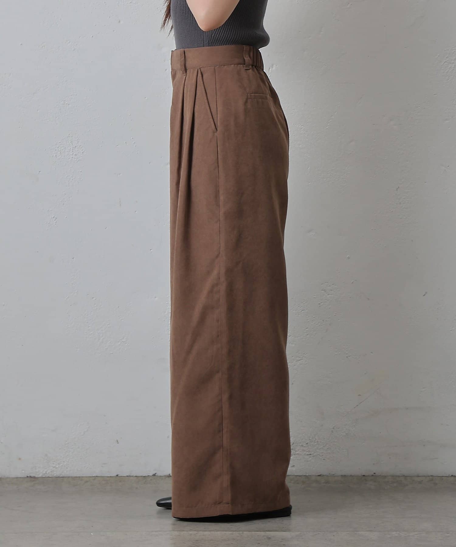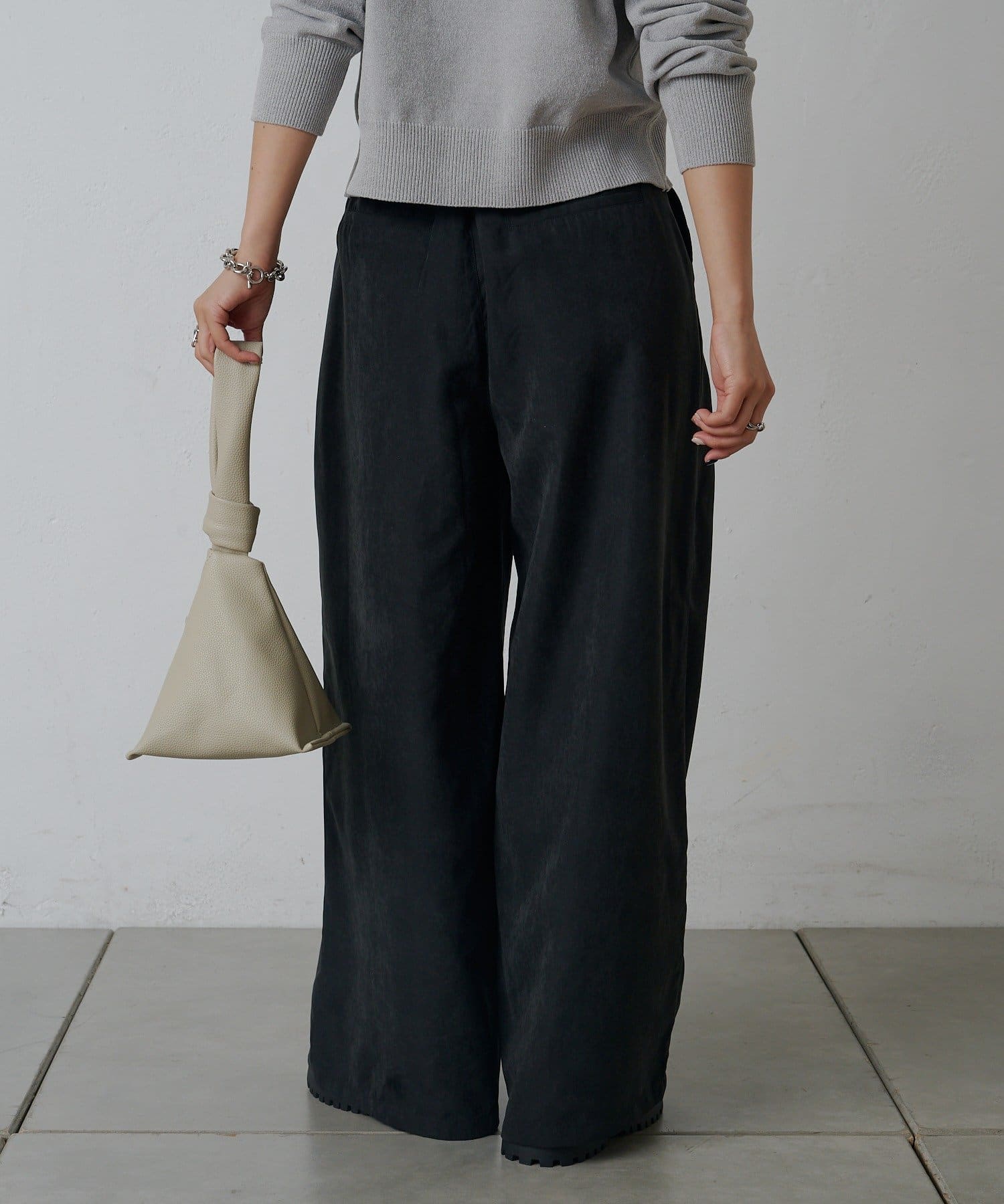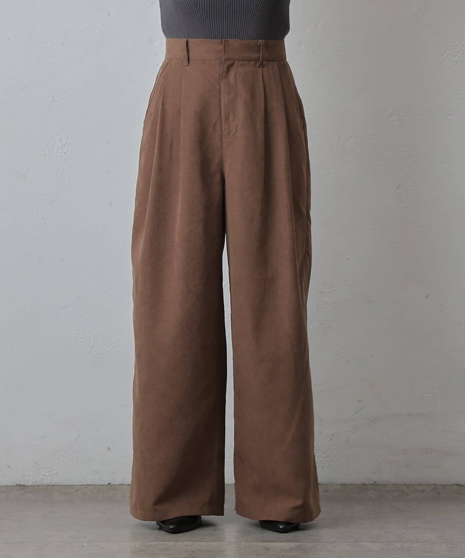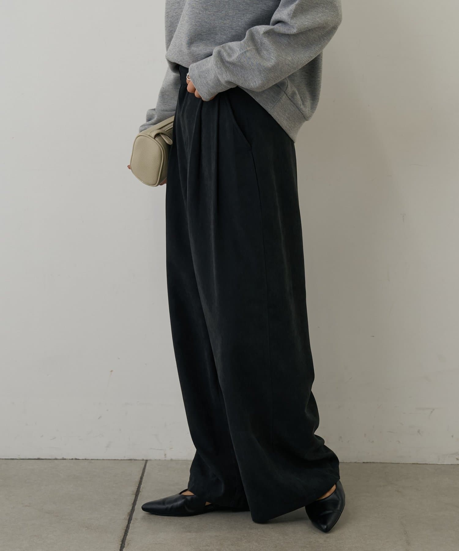 微起毛のピーチスキン素材で仕立てた、上品な光沢とやわらかな手触りが魅力の2タックパンツです。
