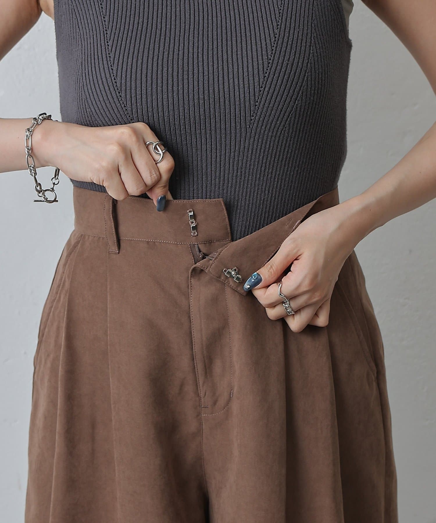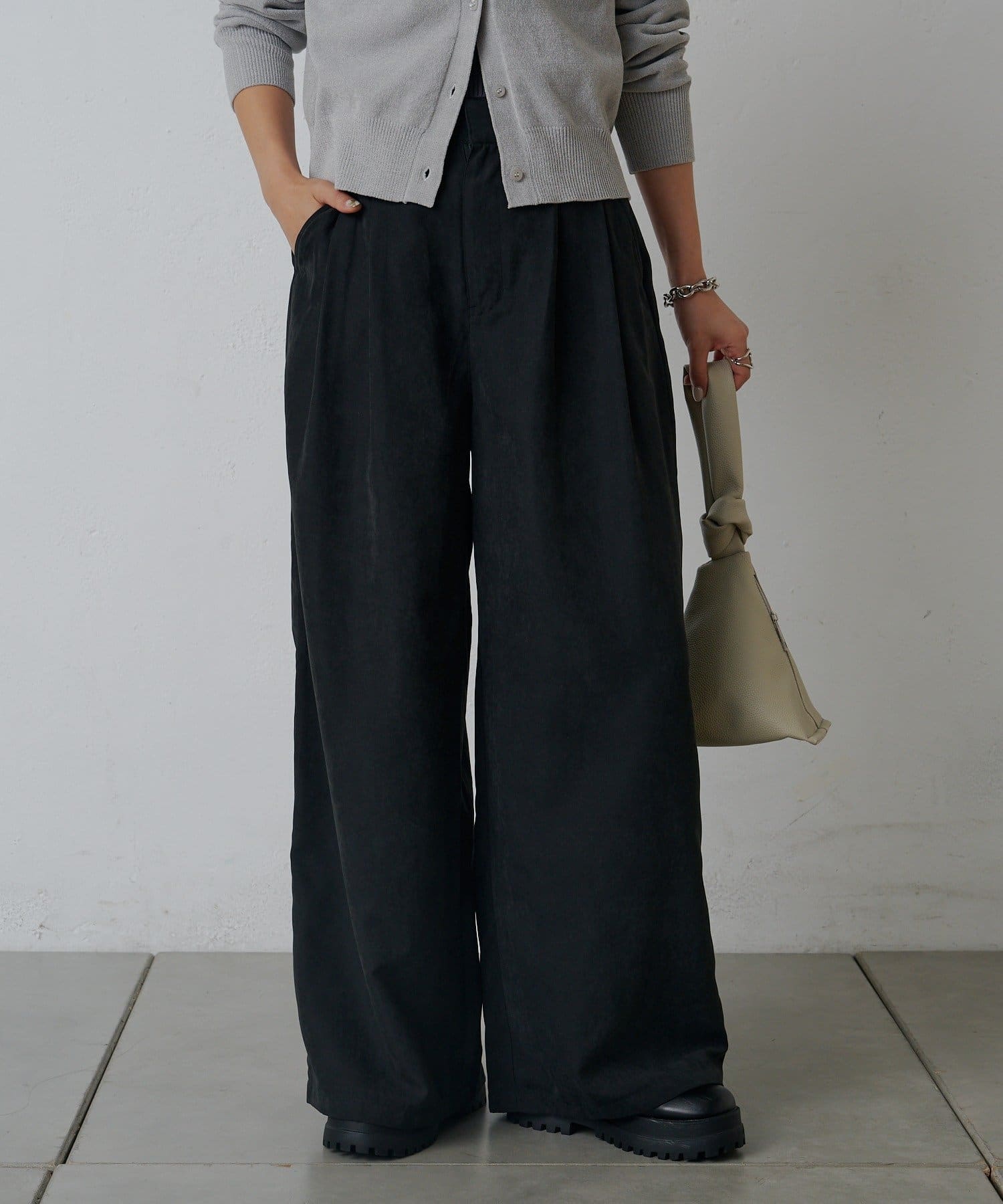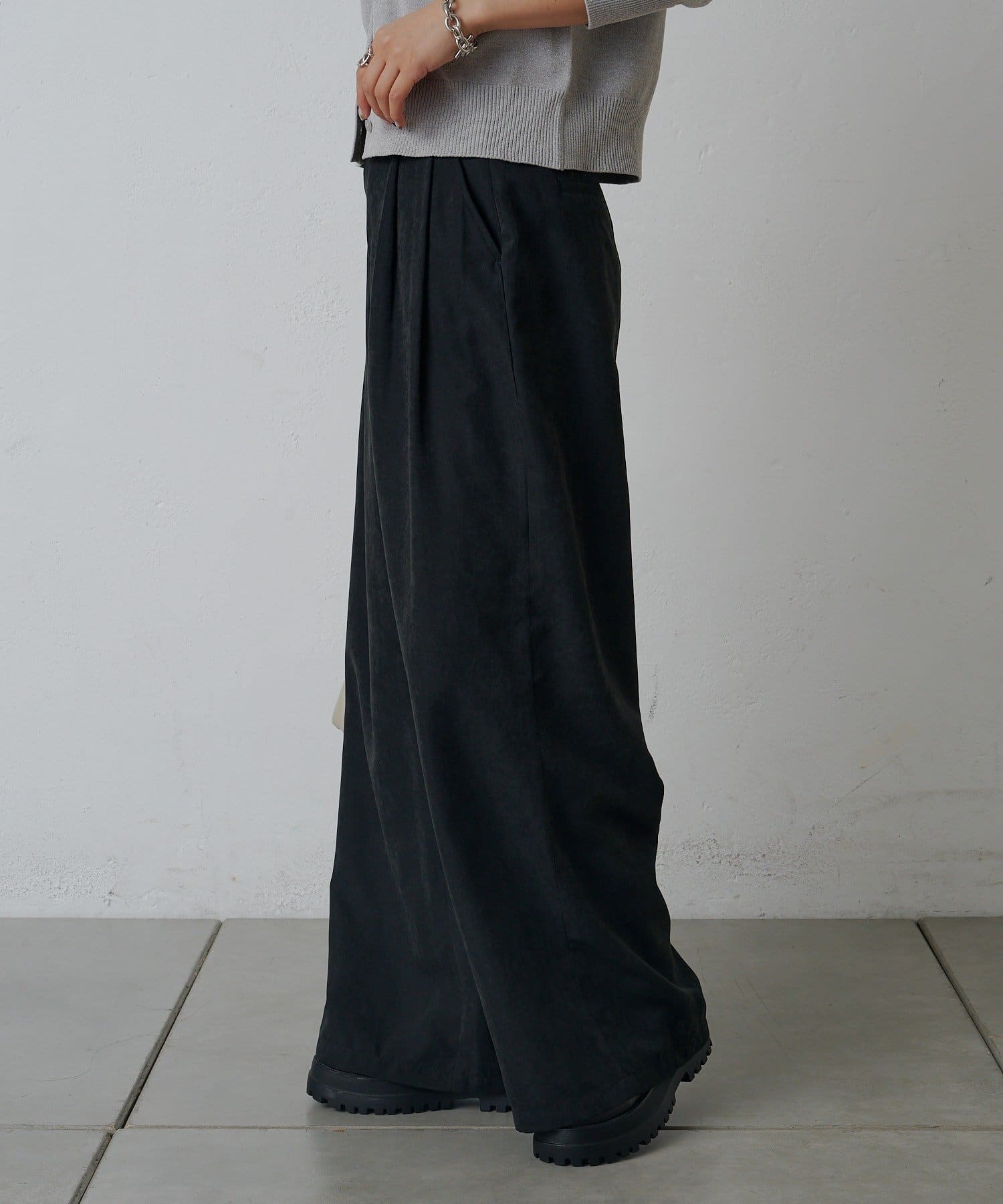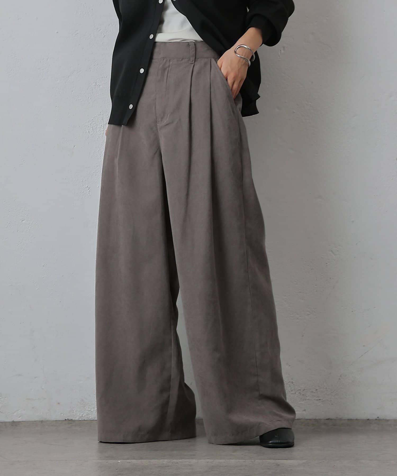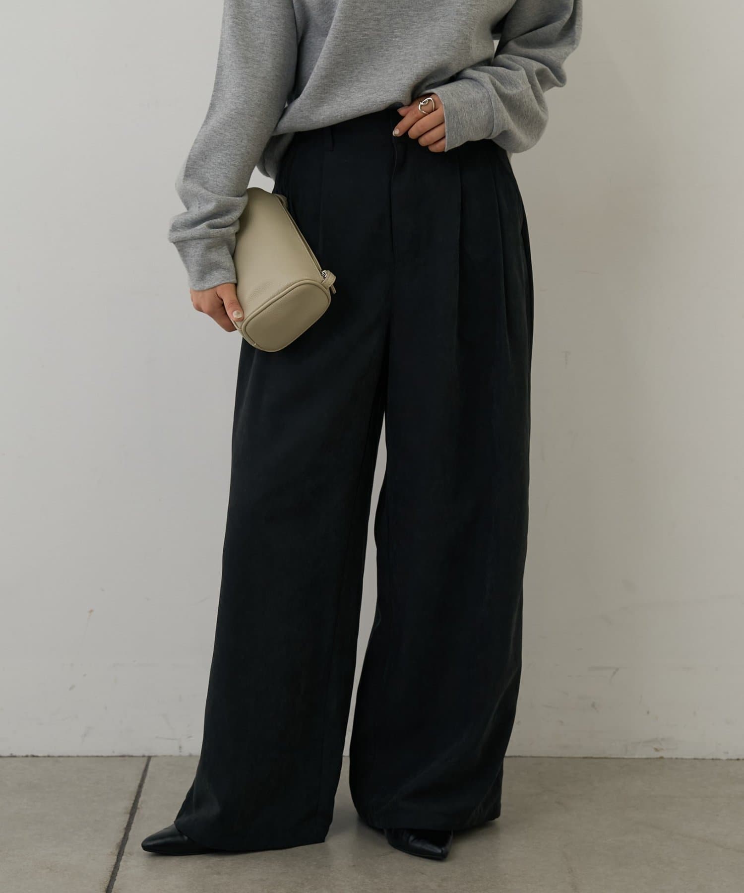 微起毛のピーチスキン素材で仕立てた、上品な光沢とやわらかな手触りが魅力の2タックパンツです。