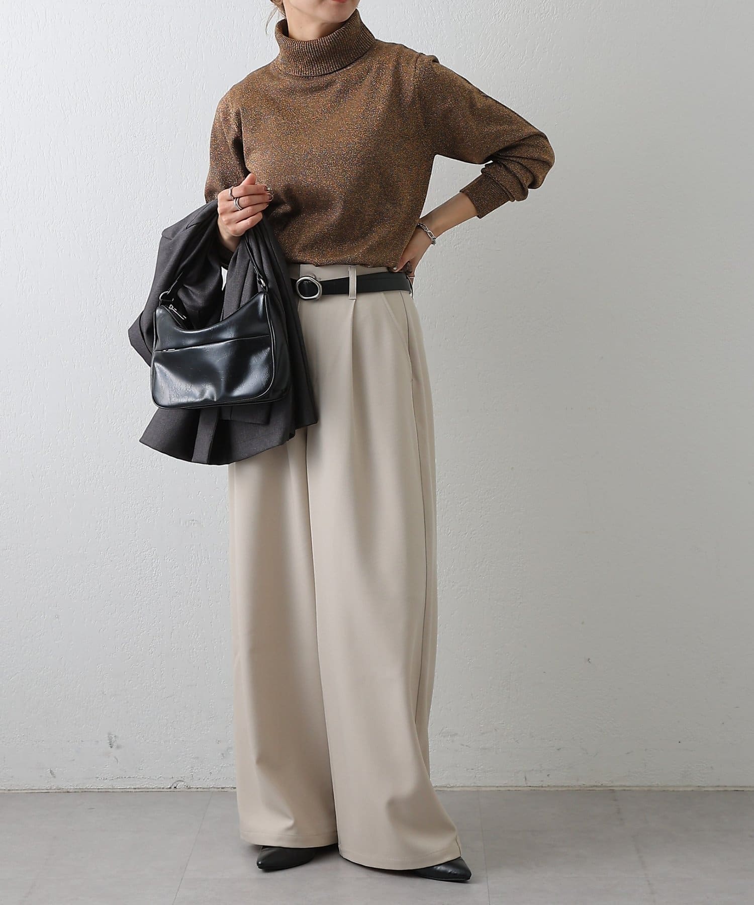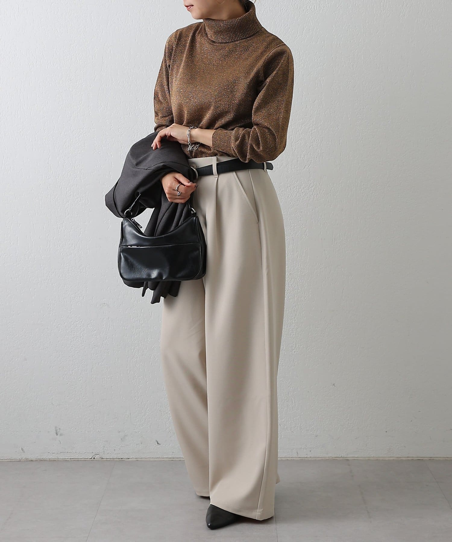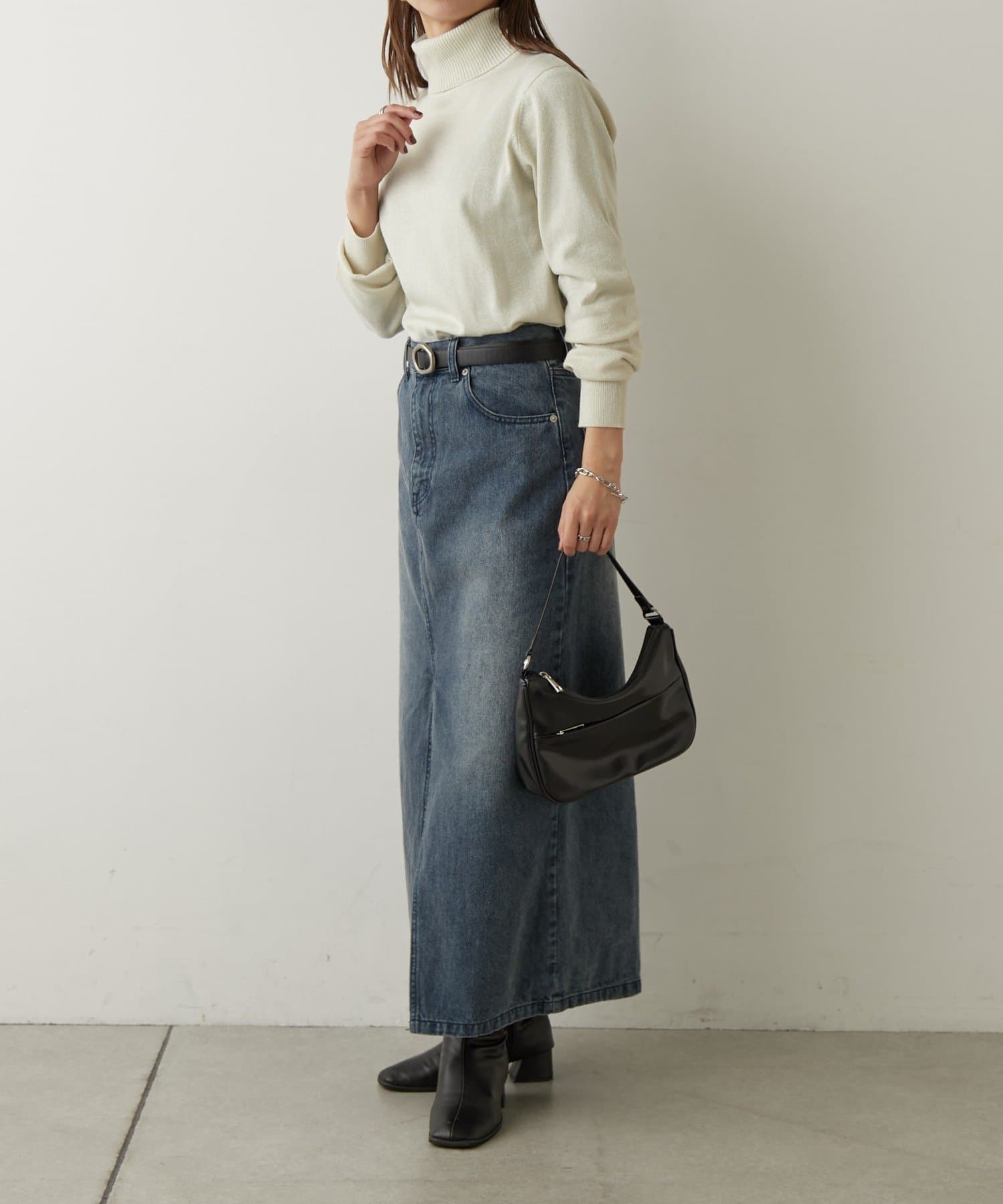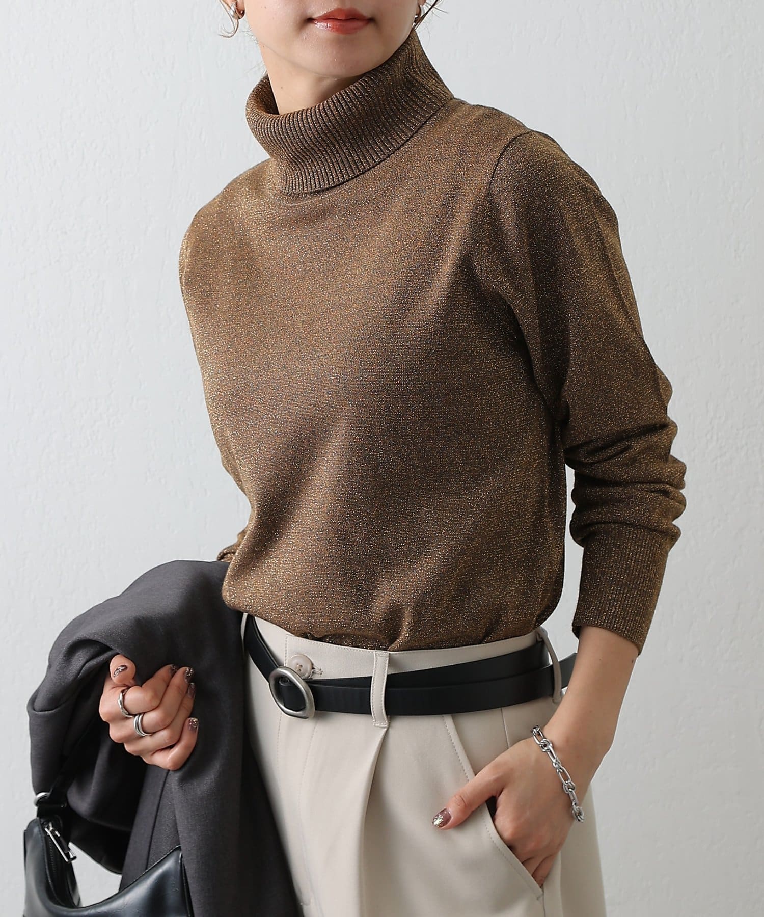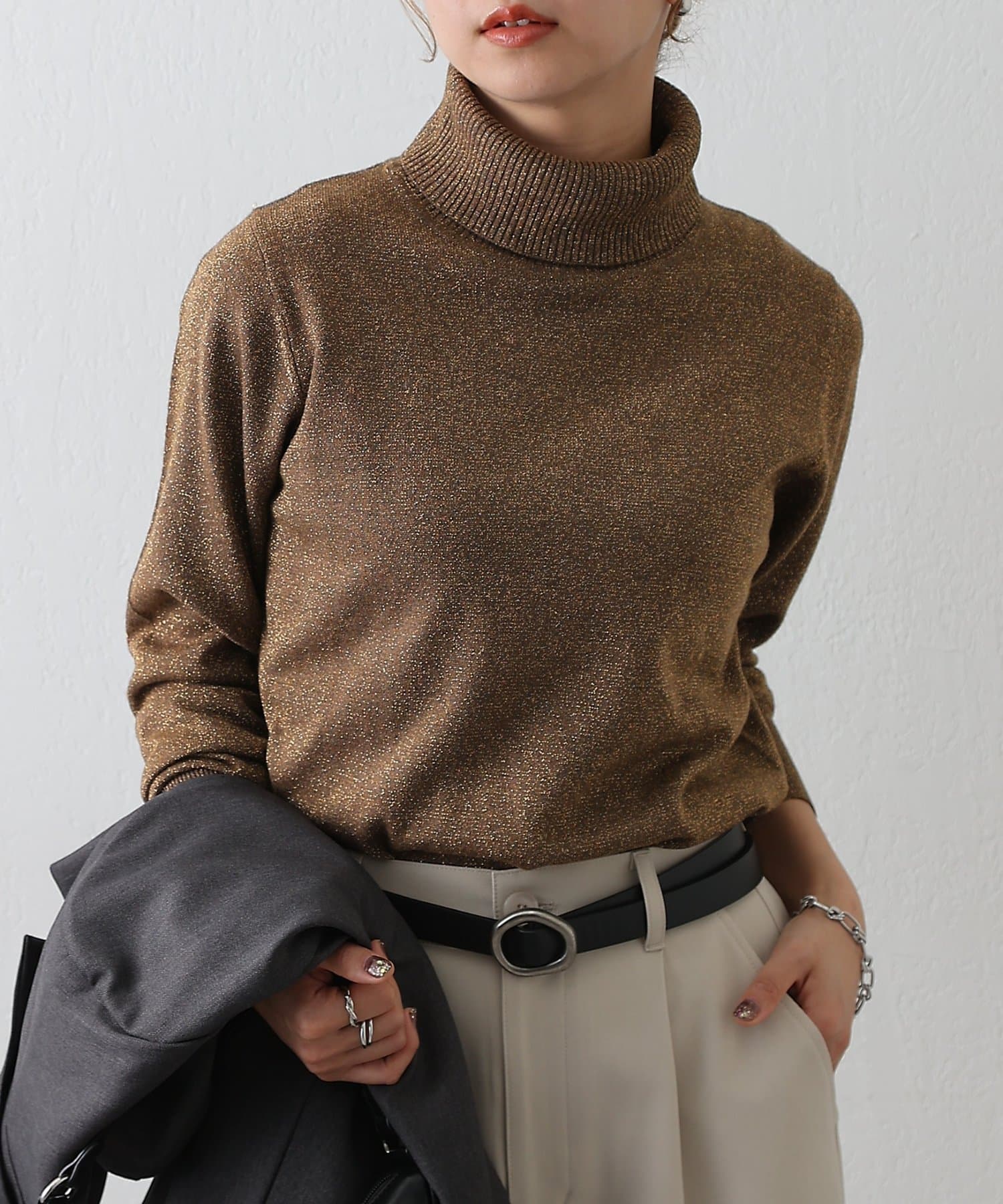 上品なラメ感がかわいいタートルネックニットです。