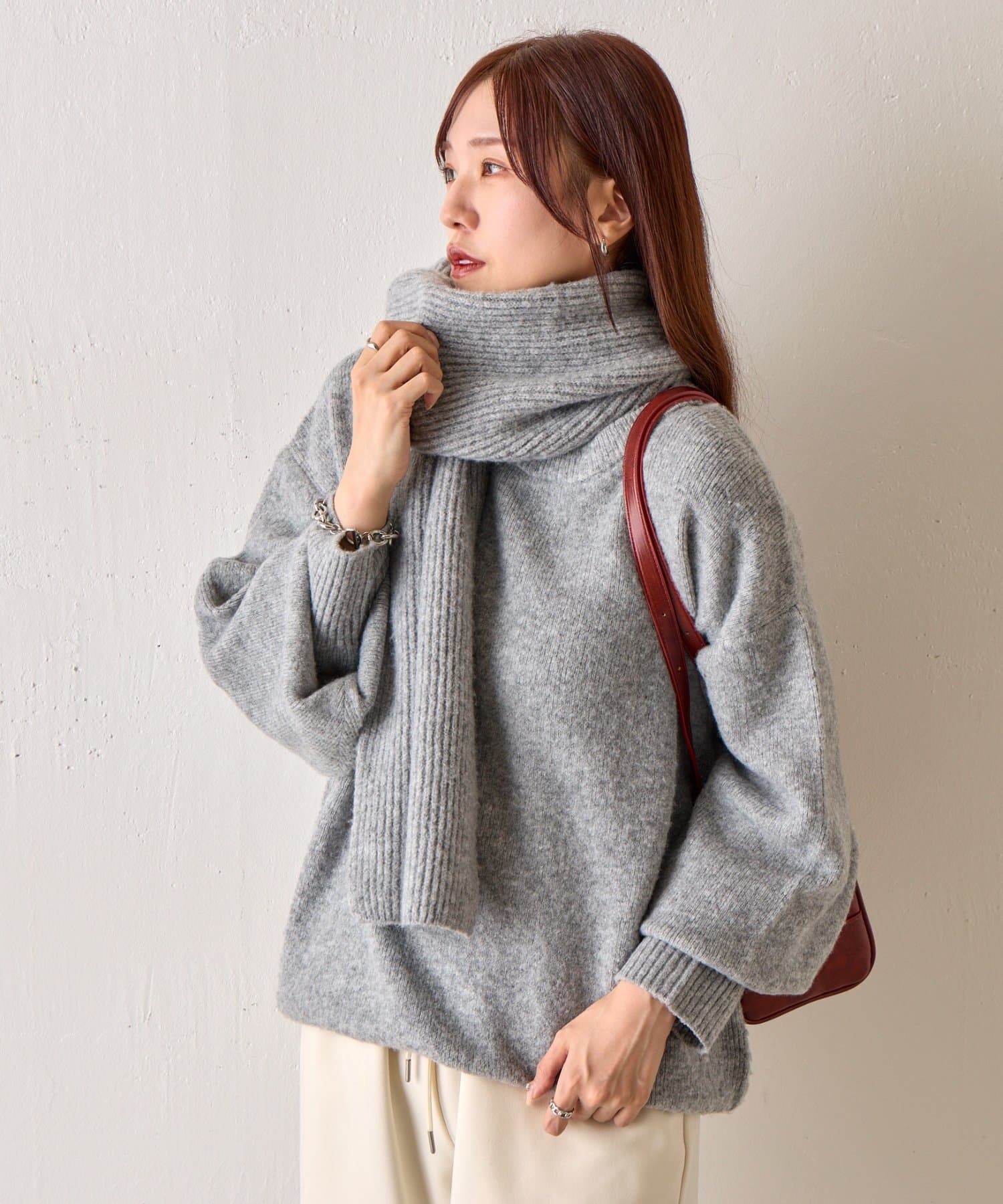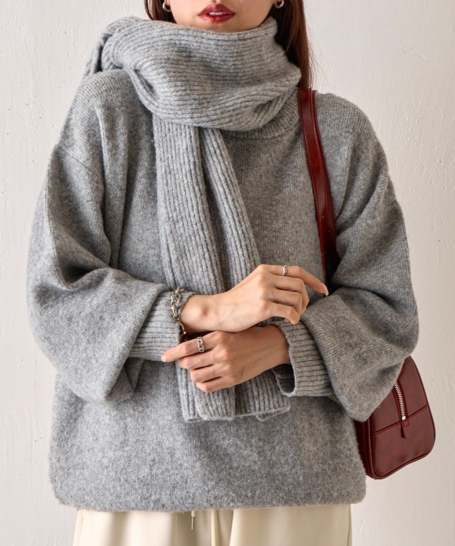・同色のクルーネックとマフラーのセットアイテム