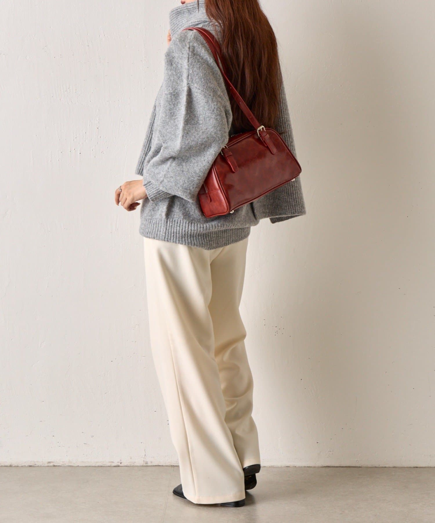 さらにニットはゆったりとしたシルエットなので中に重ね着も可能です◎