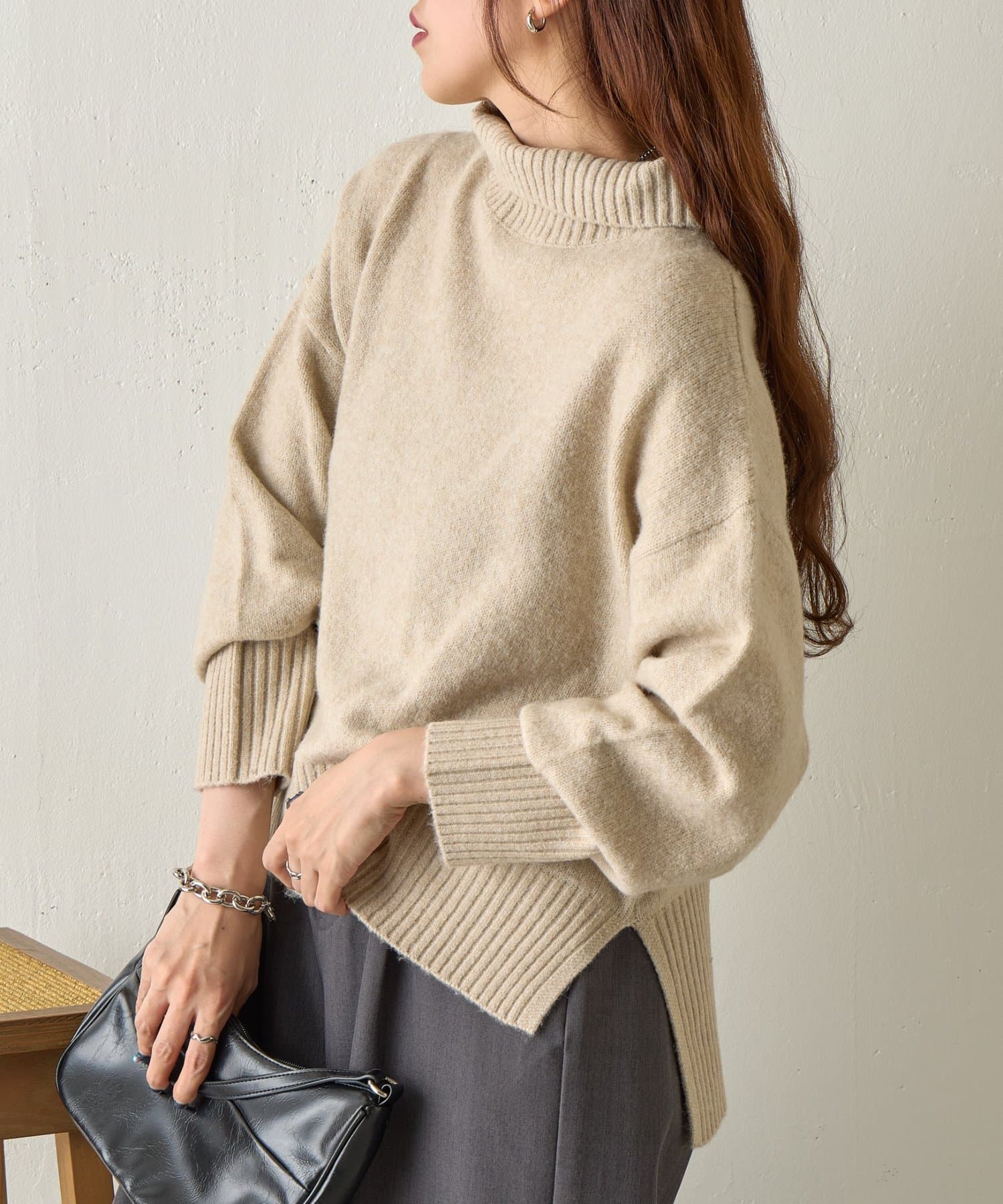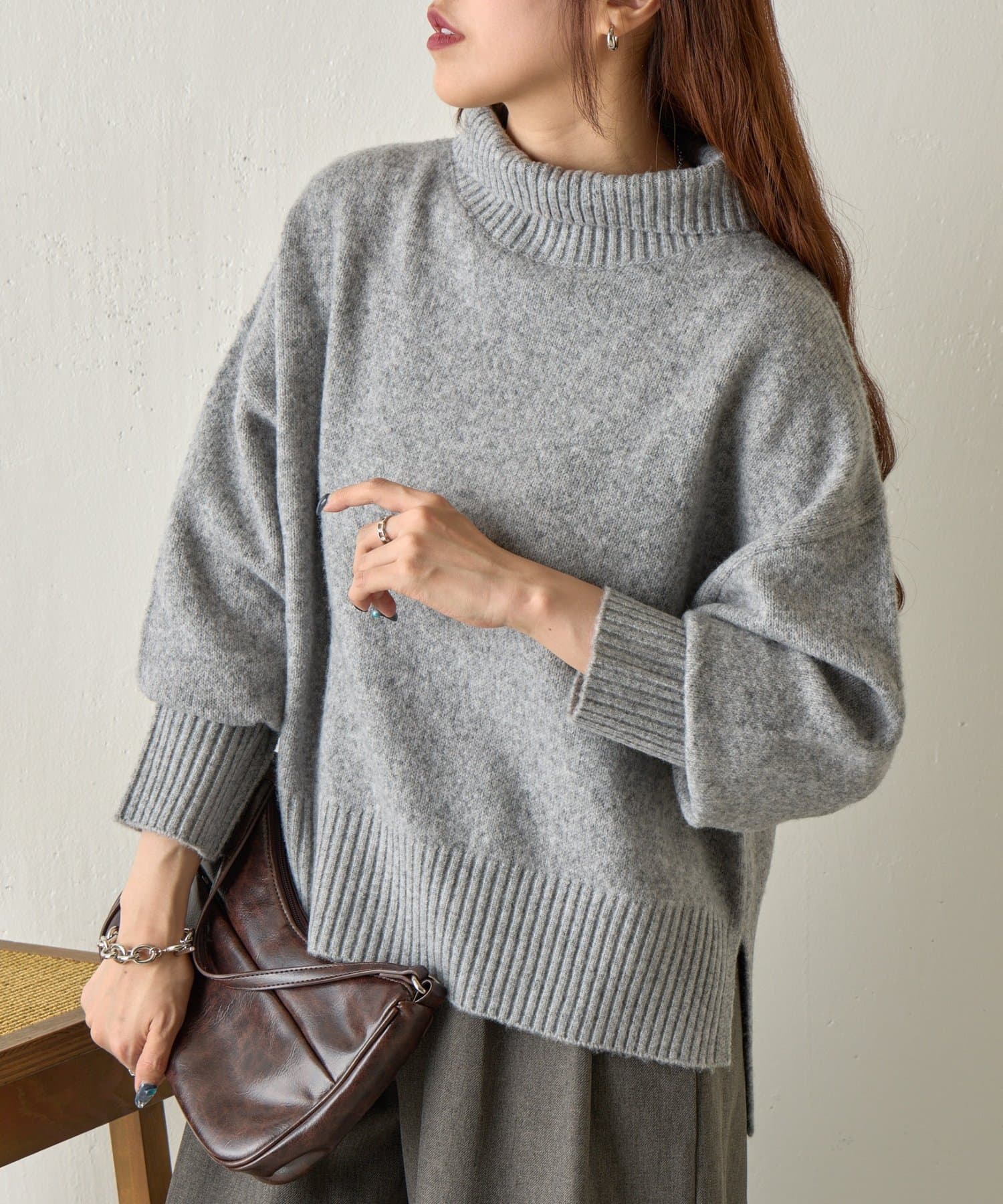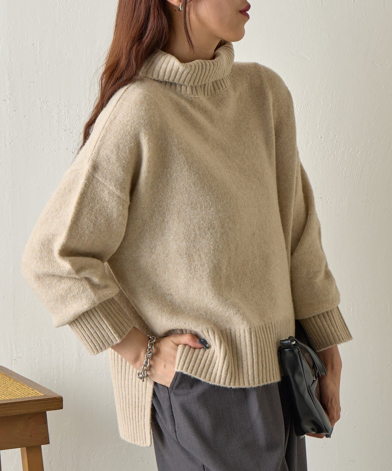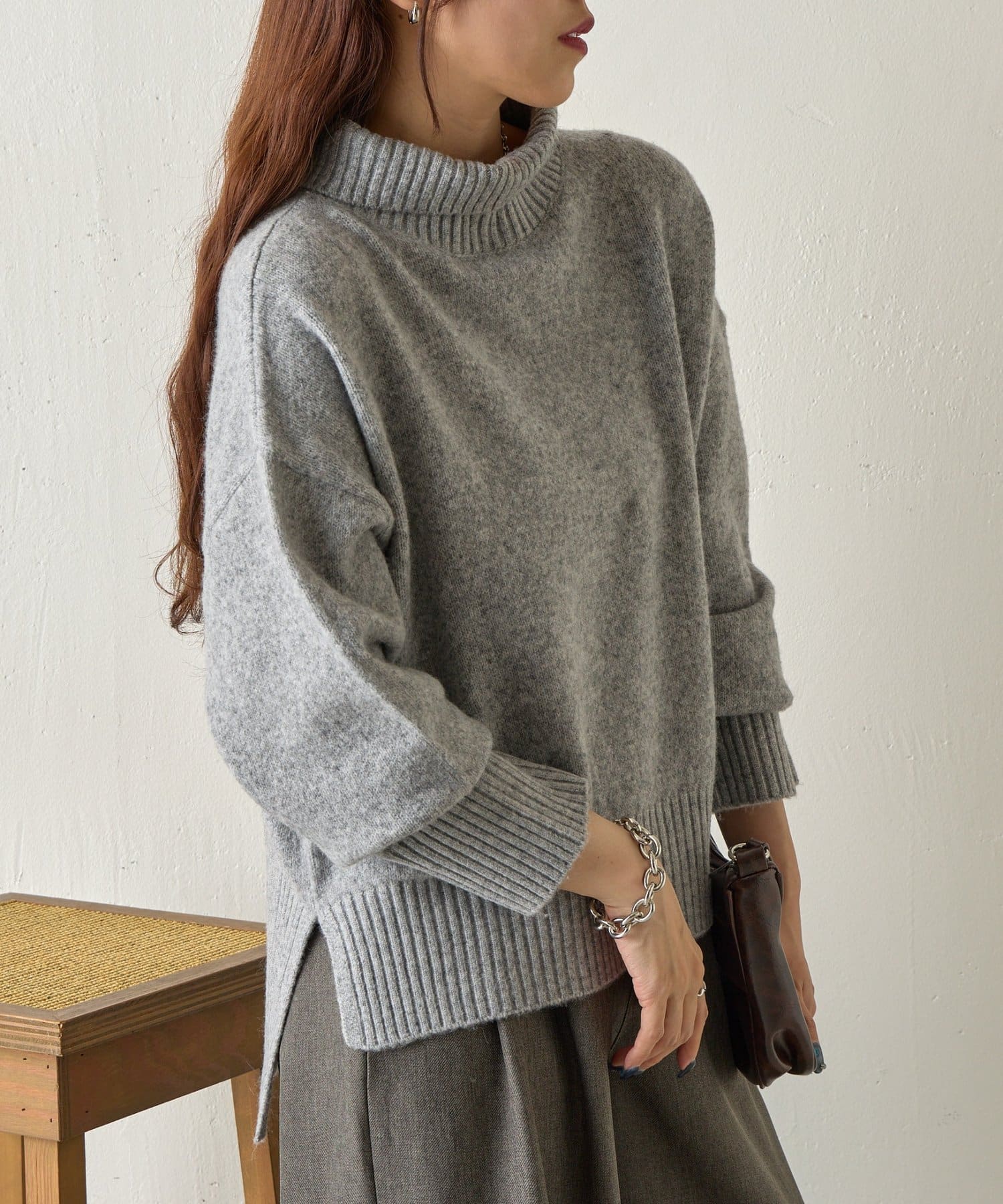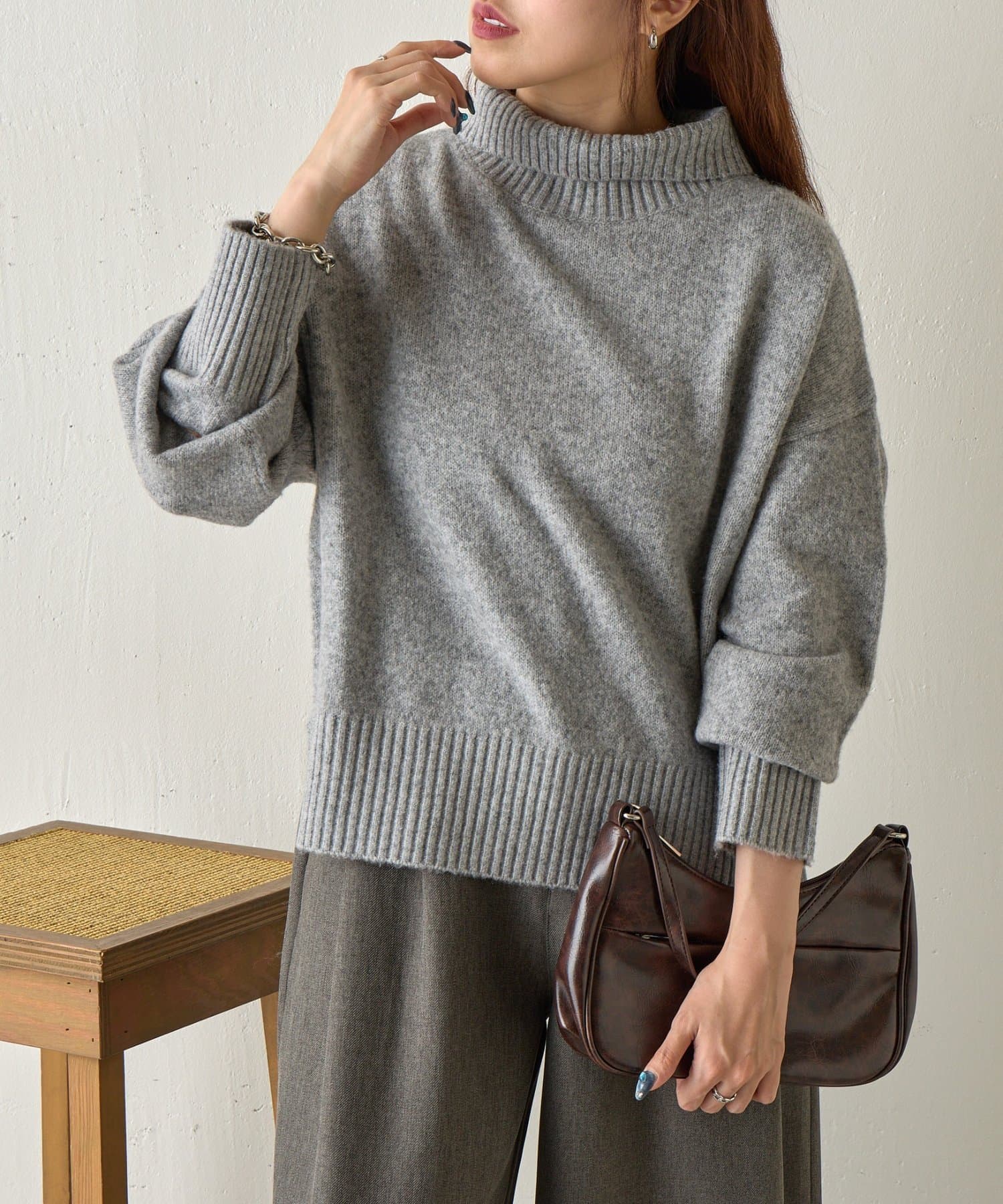 もちもちとしたやわらかい肌触りが特徴のボトルネックプルオーバーです。