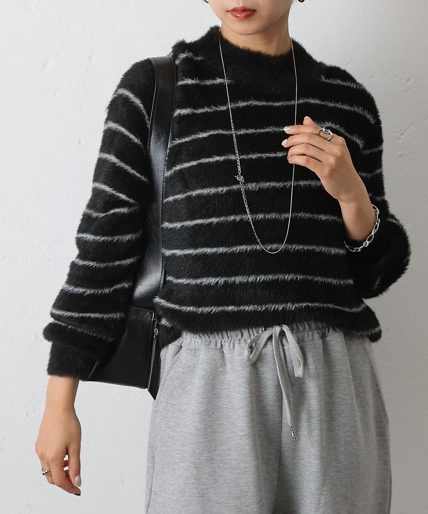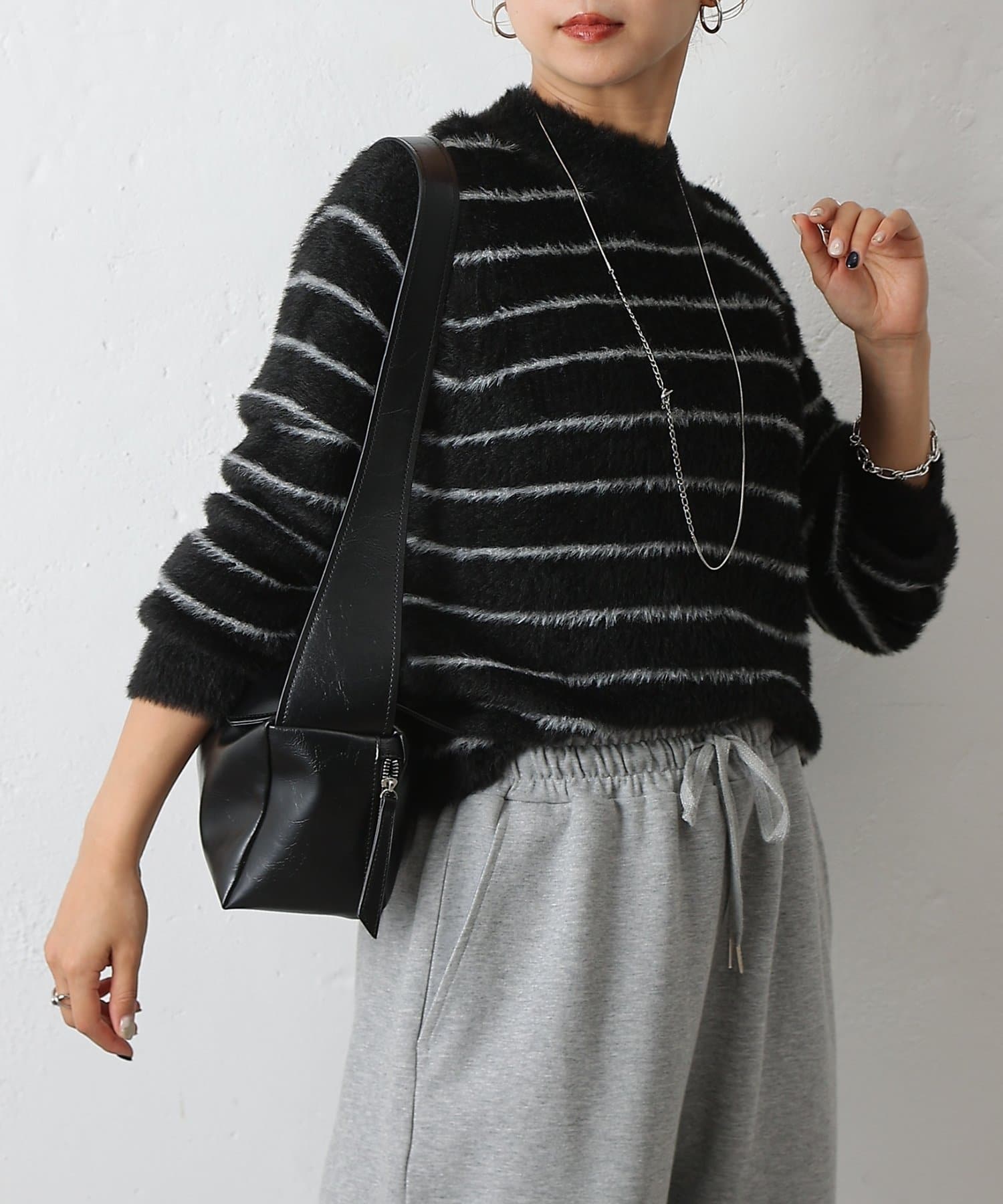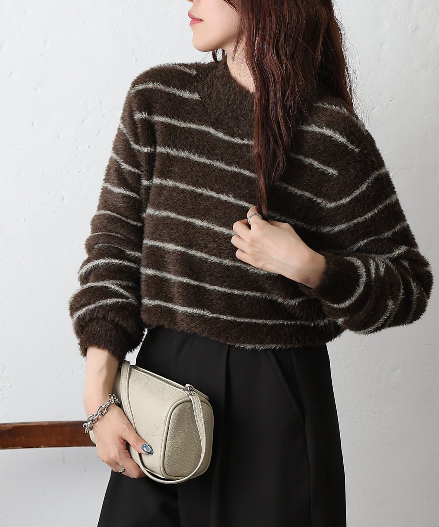 やわらかなシャギー素材と落ち着いたボーダーデザインが魅力のシャギーボーダーニットが登場。