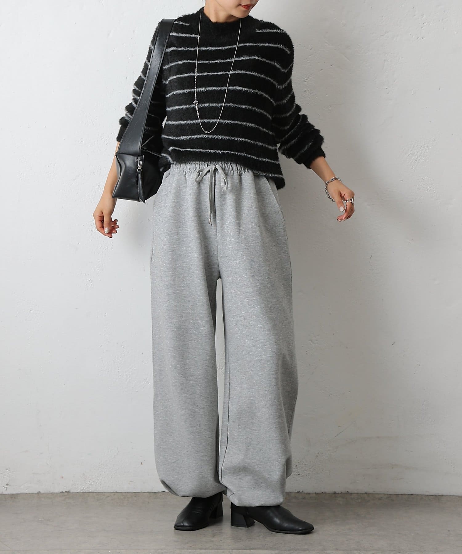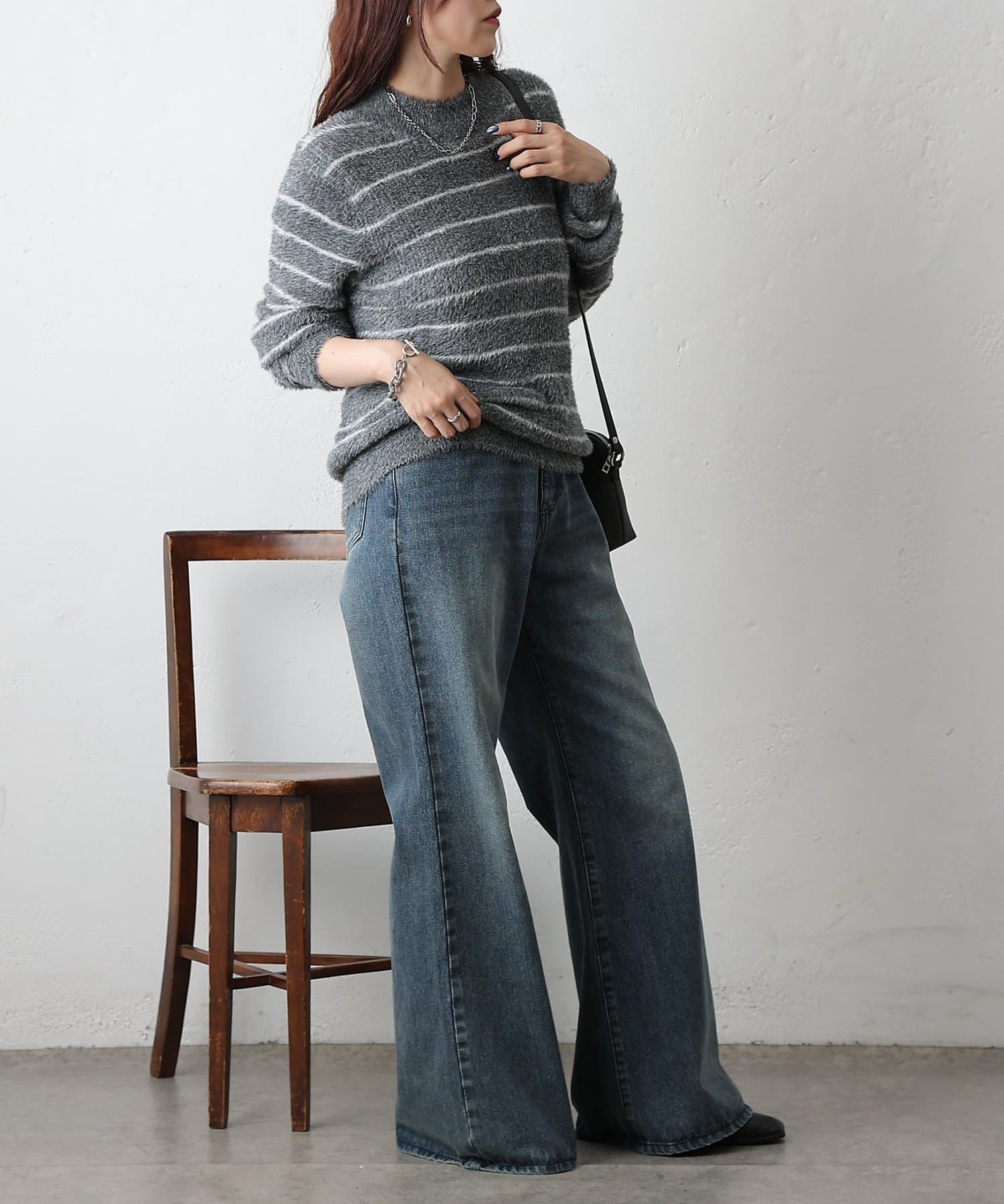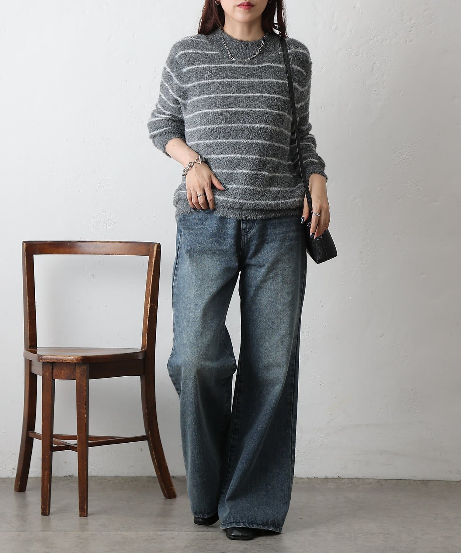 やわらかなシャギー素材と落ち着いたボーダーデザインが魅力のシャギーボーダーニットが登場。