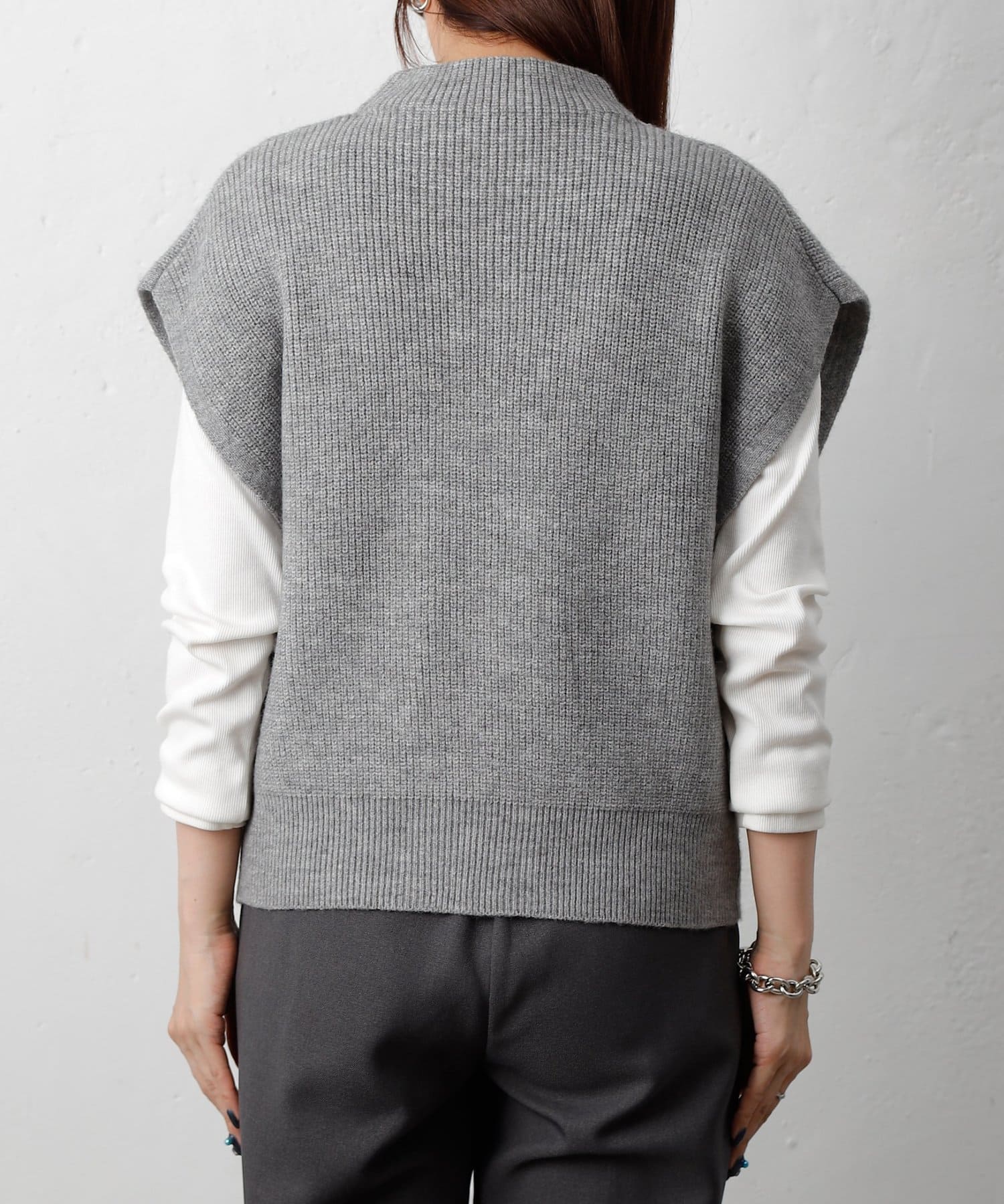 凹凸のある片畦編みが生み出す自然な立体感がかわいいジップアップベストです。