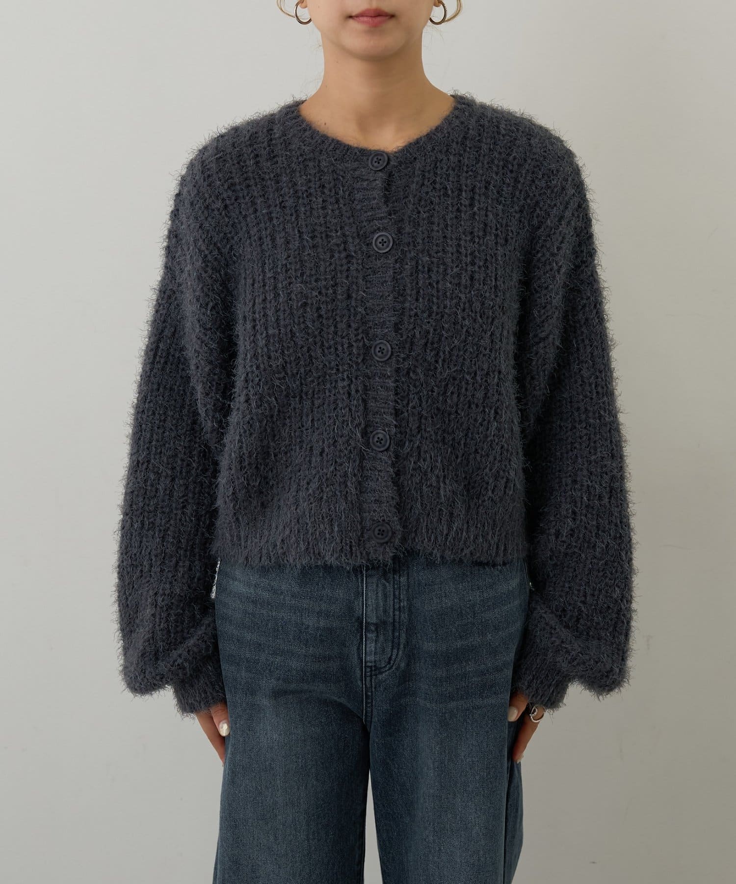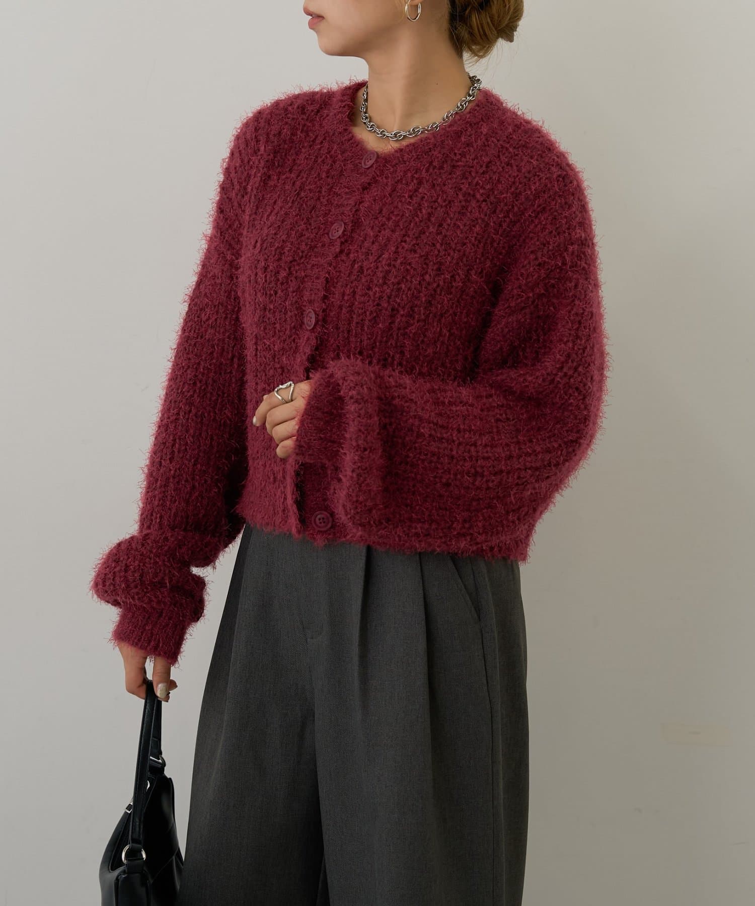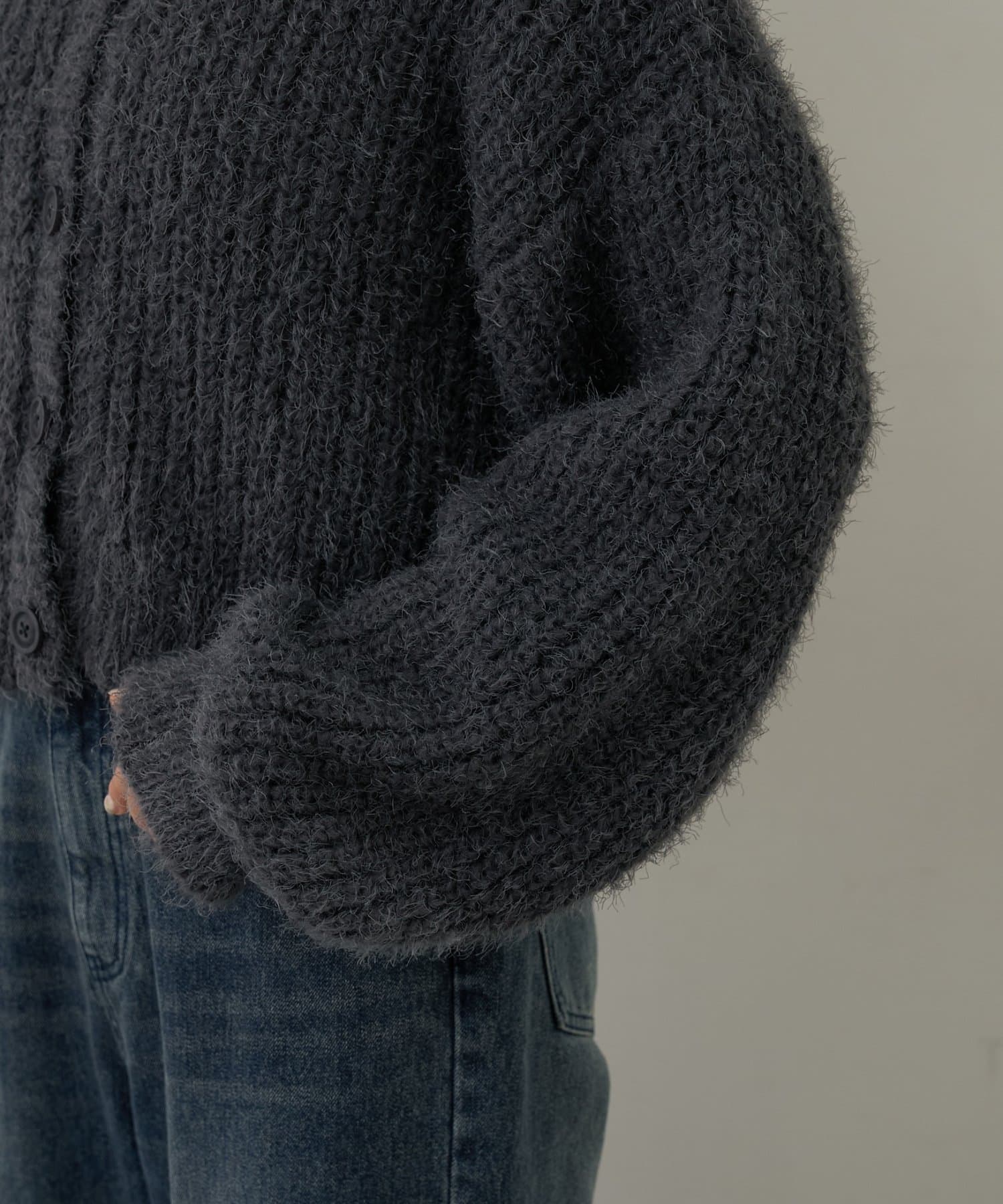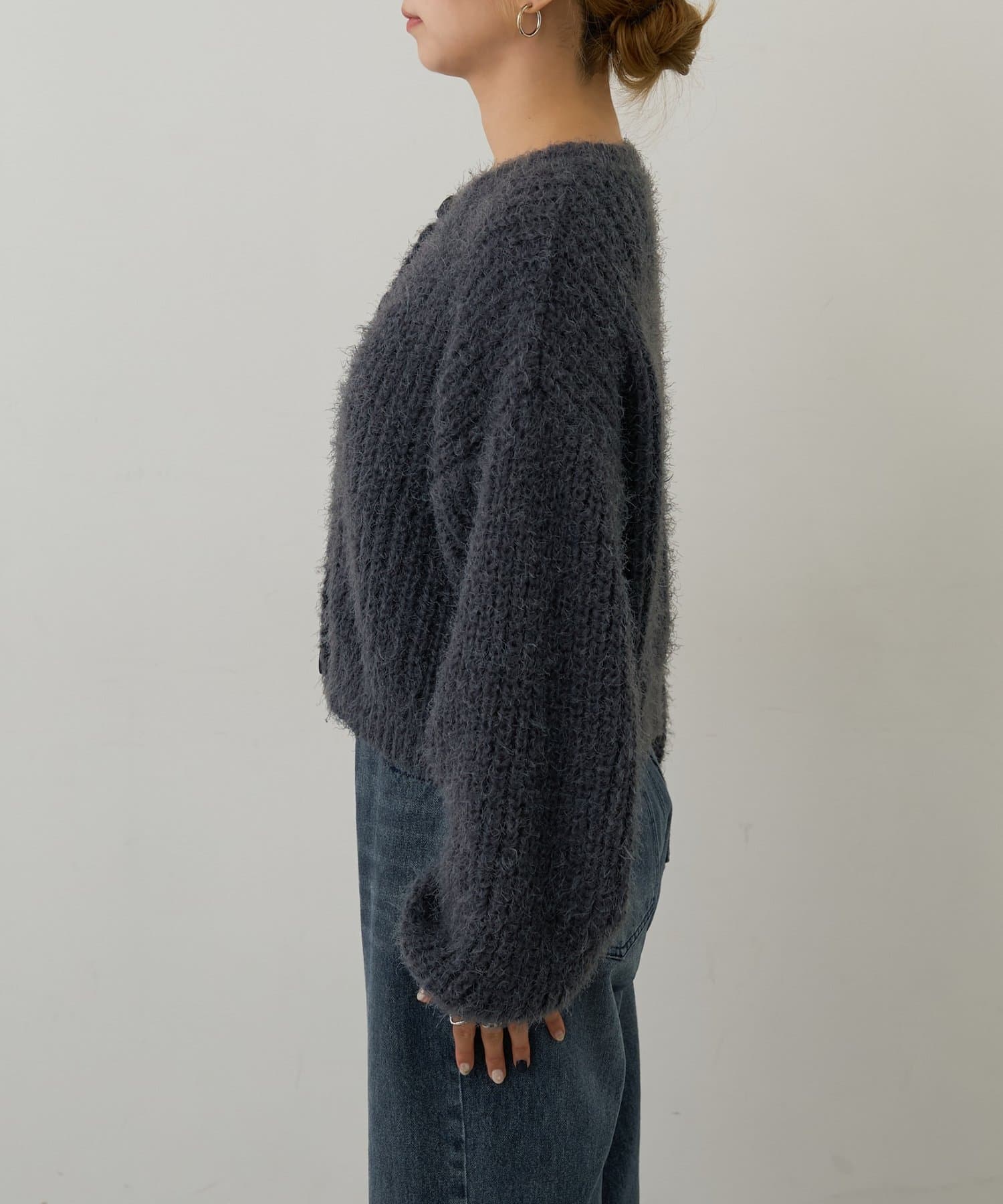 片畦フェザーヤーンカーディガン