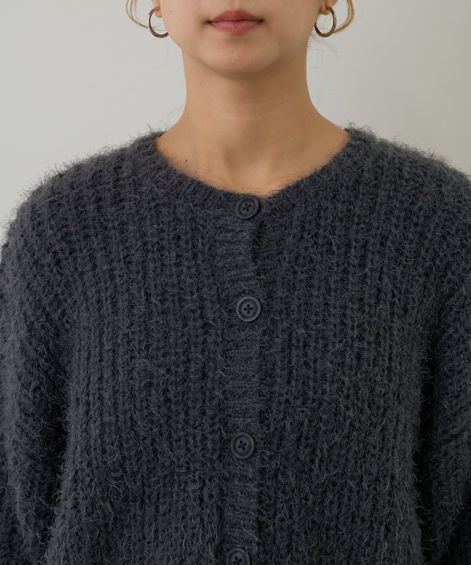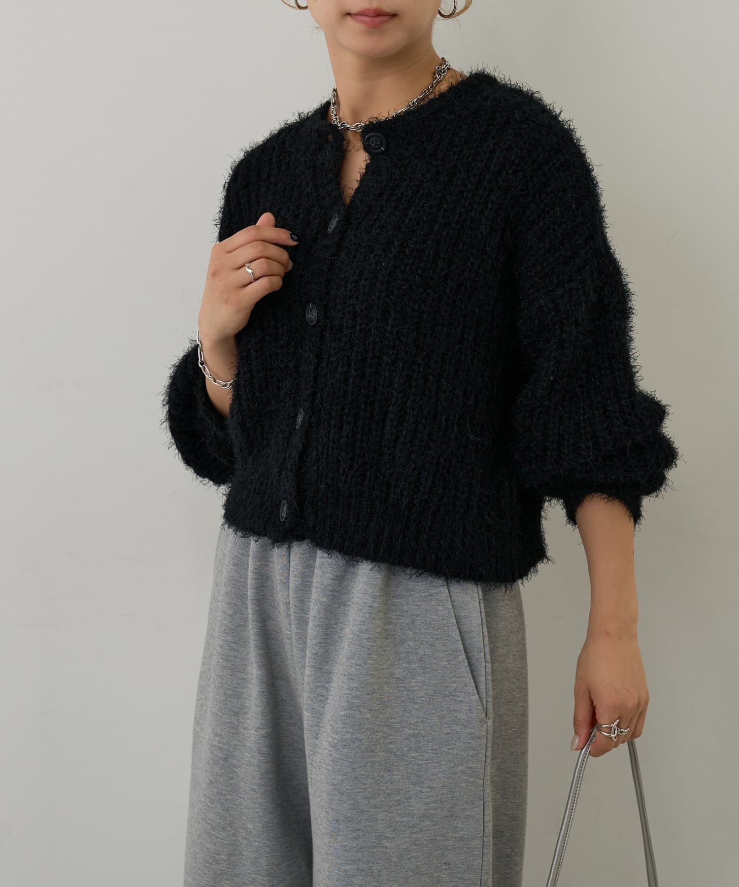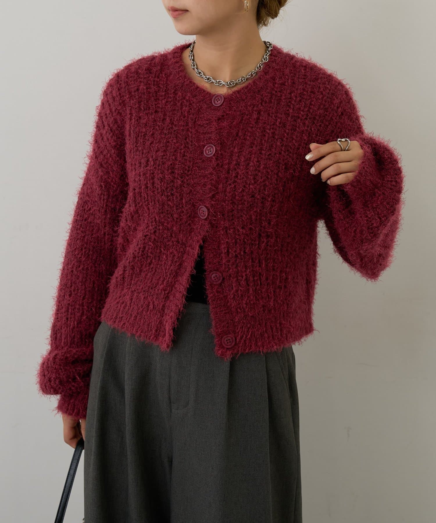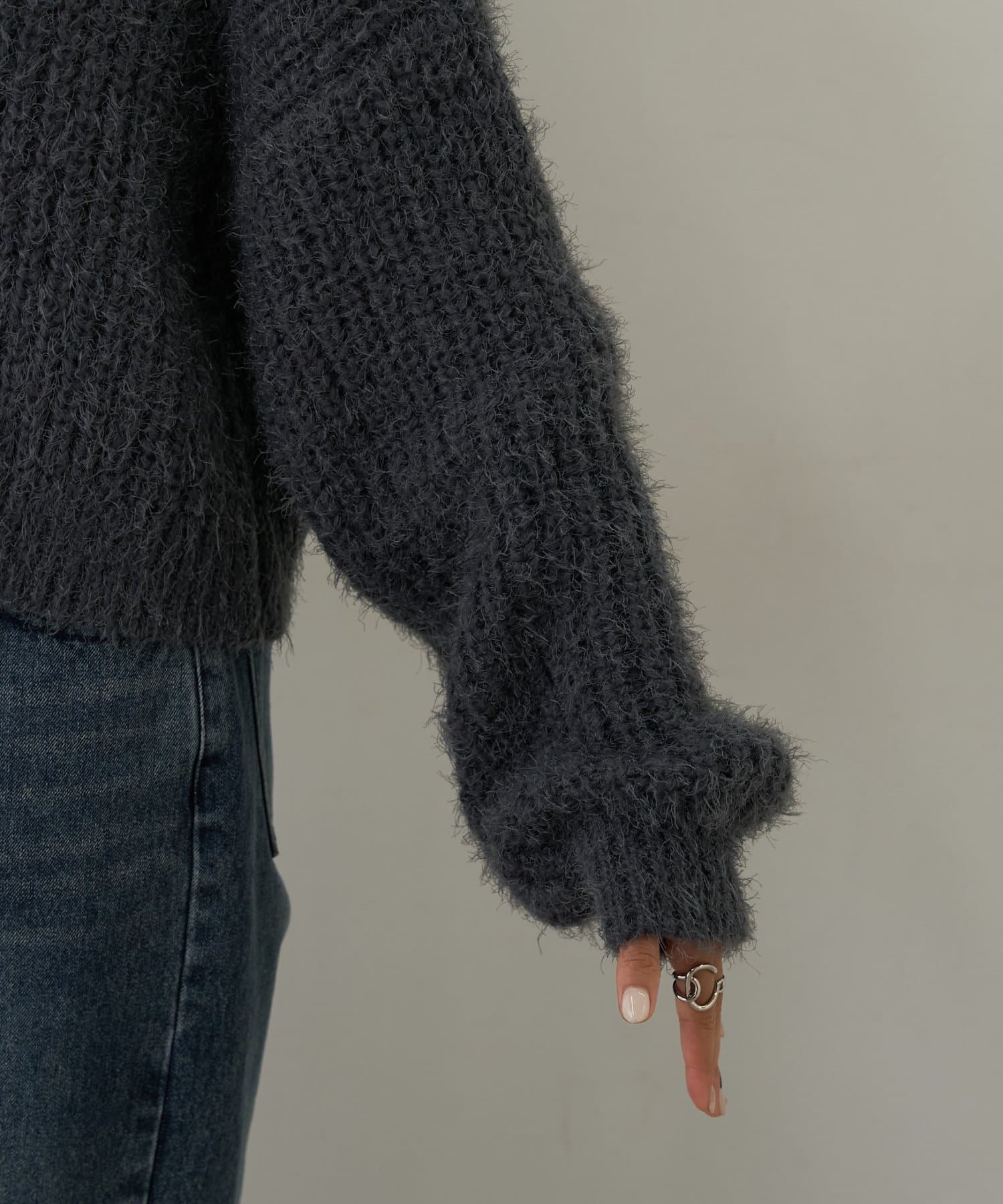 片畦フェザーヤーンカーディガン