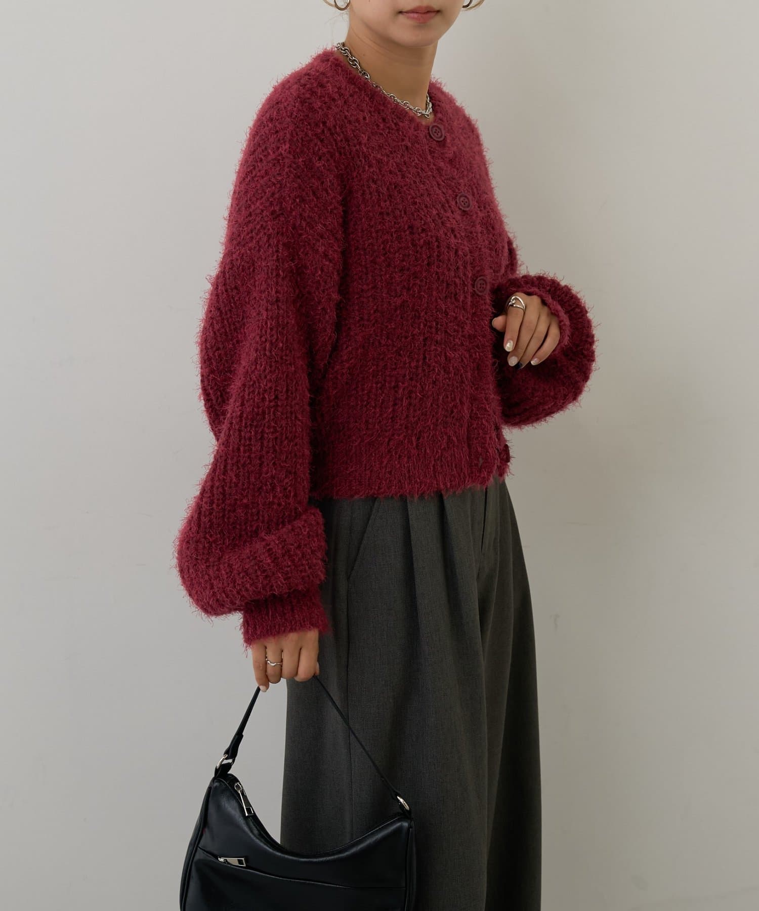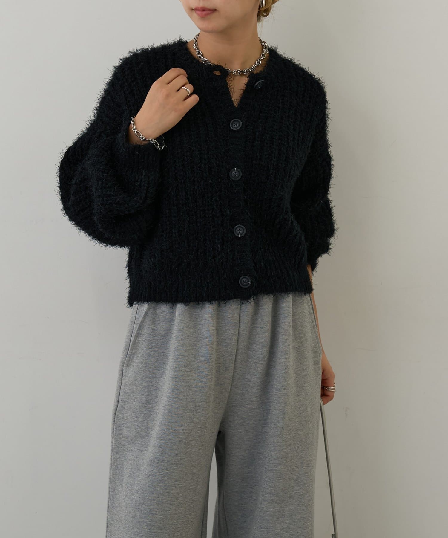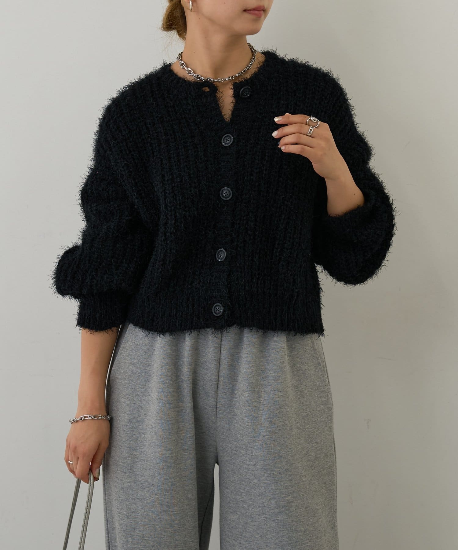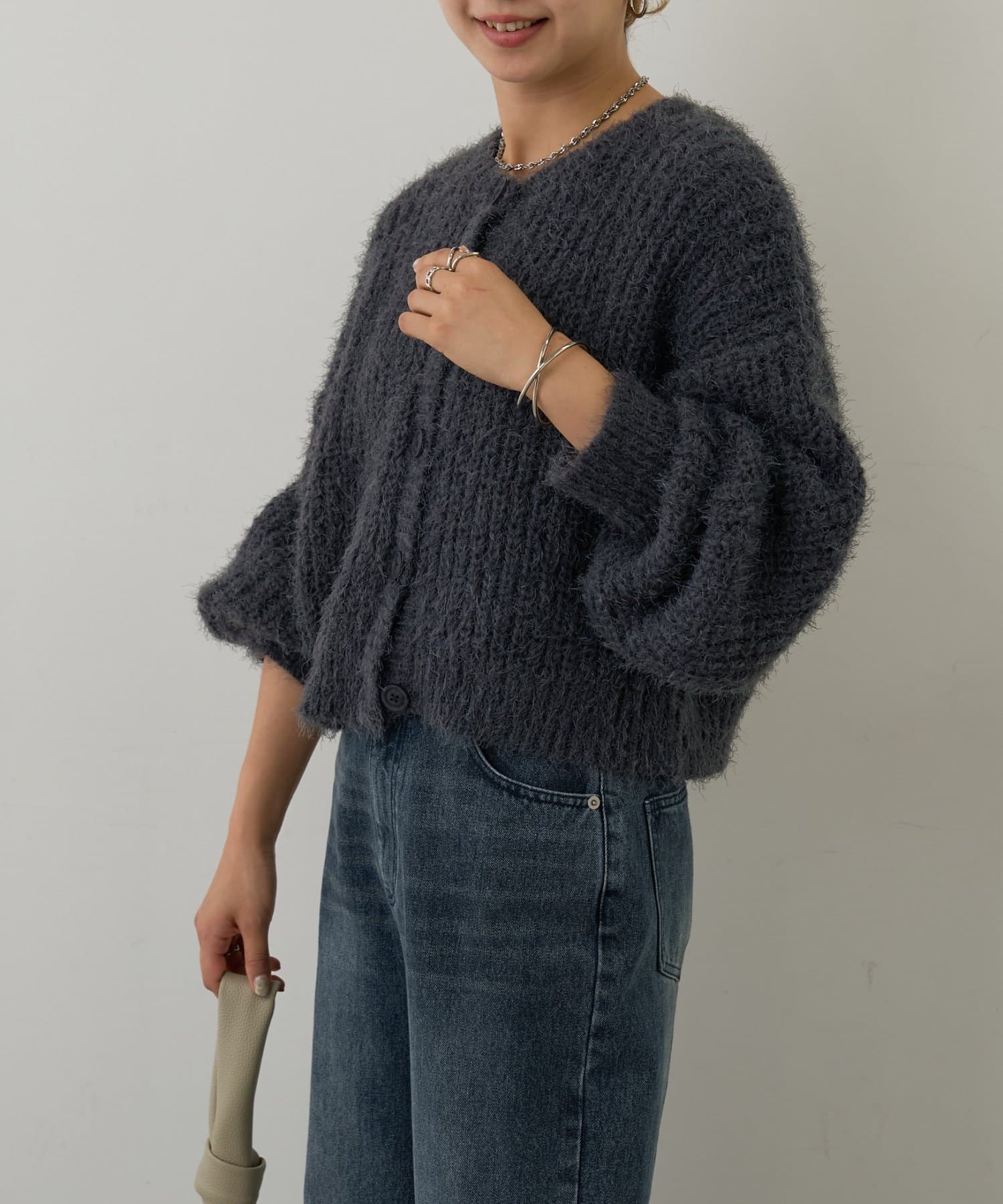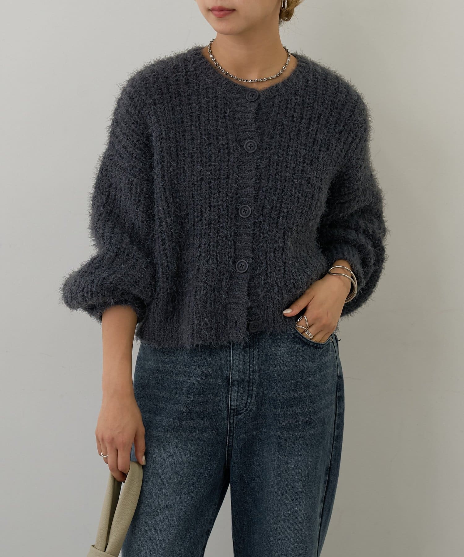片畦フェザーヤーンカーディガン