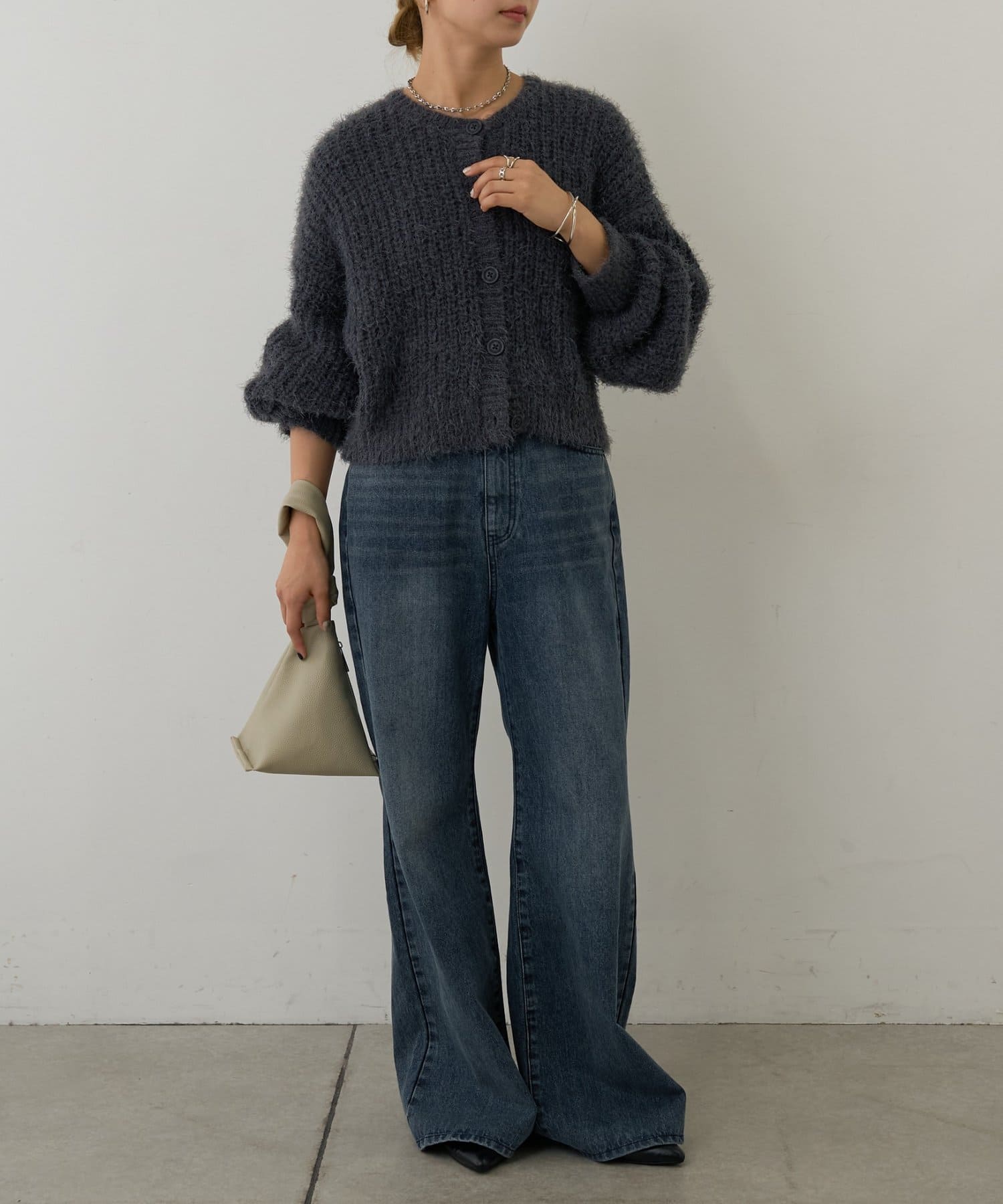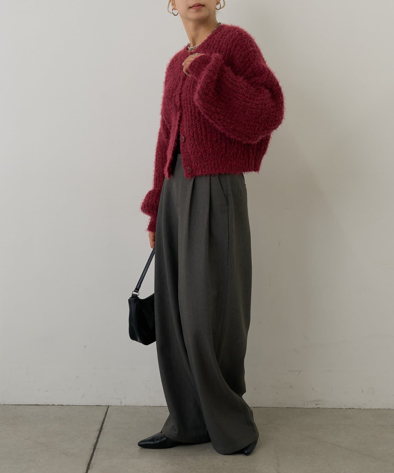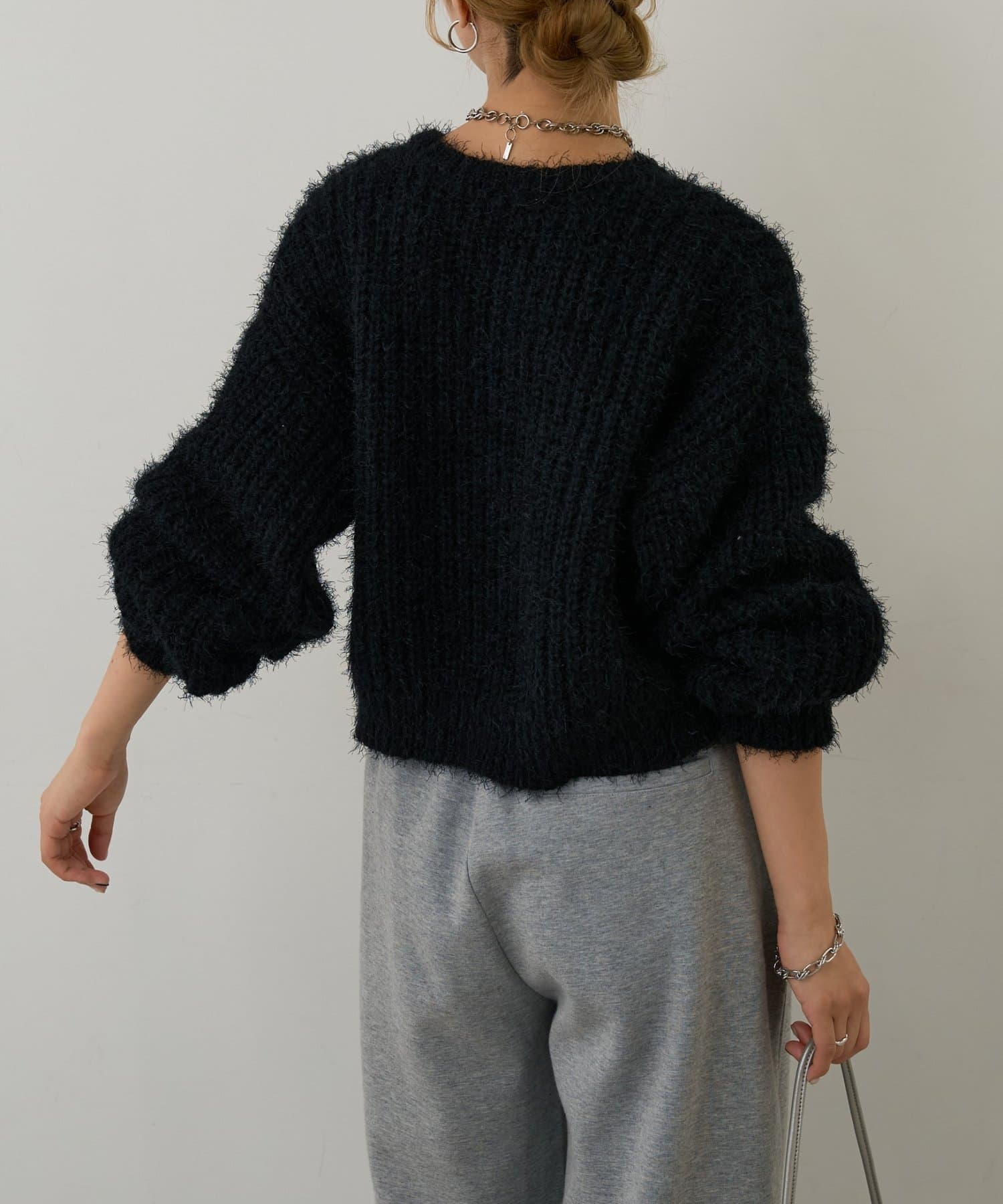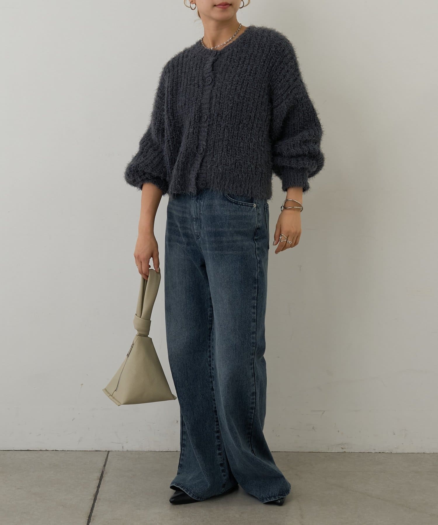 片畦フェザーヤーンカーディガン
