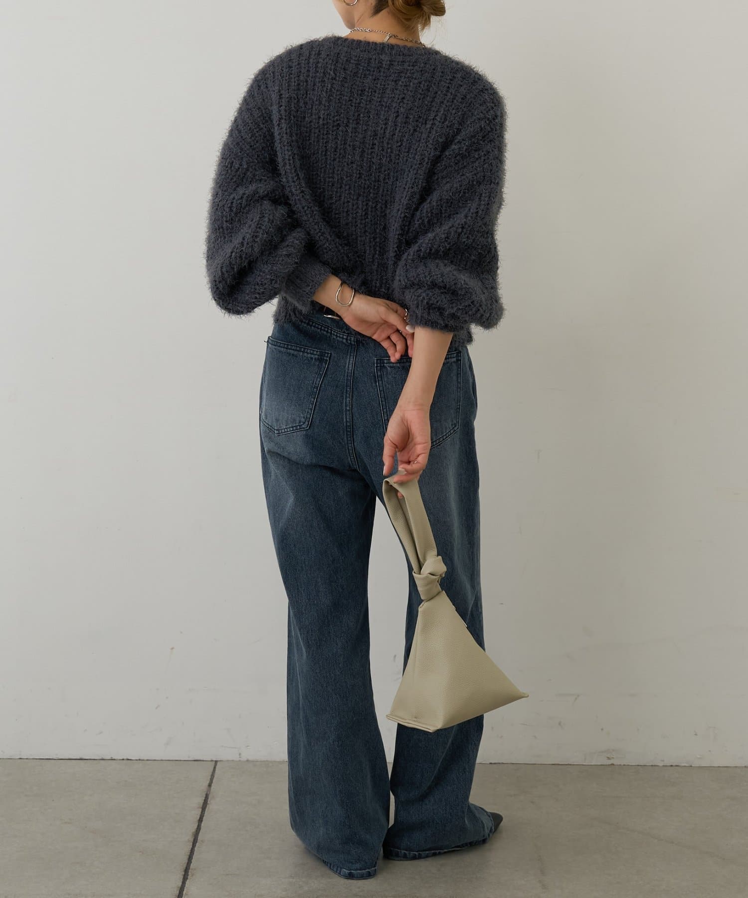 毛足が長く、羽根のようにふわふわとした質感が特徴で、保温性もあるので冬にオススメのアイテムです。