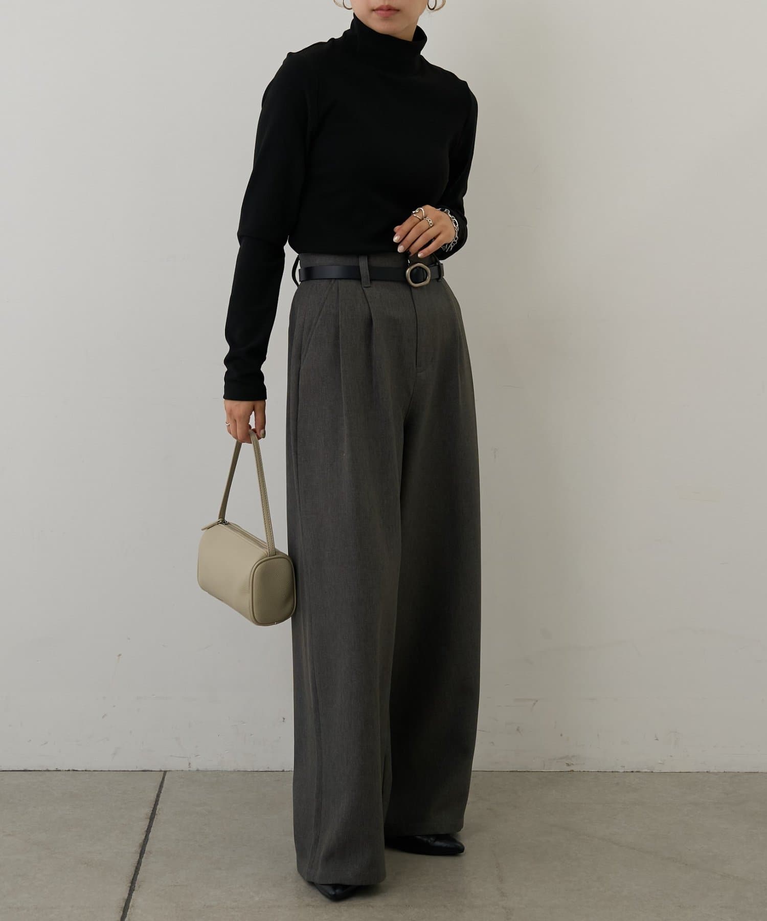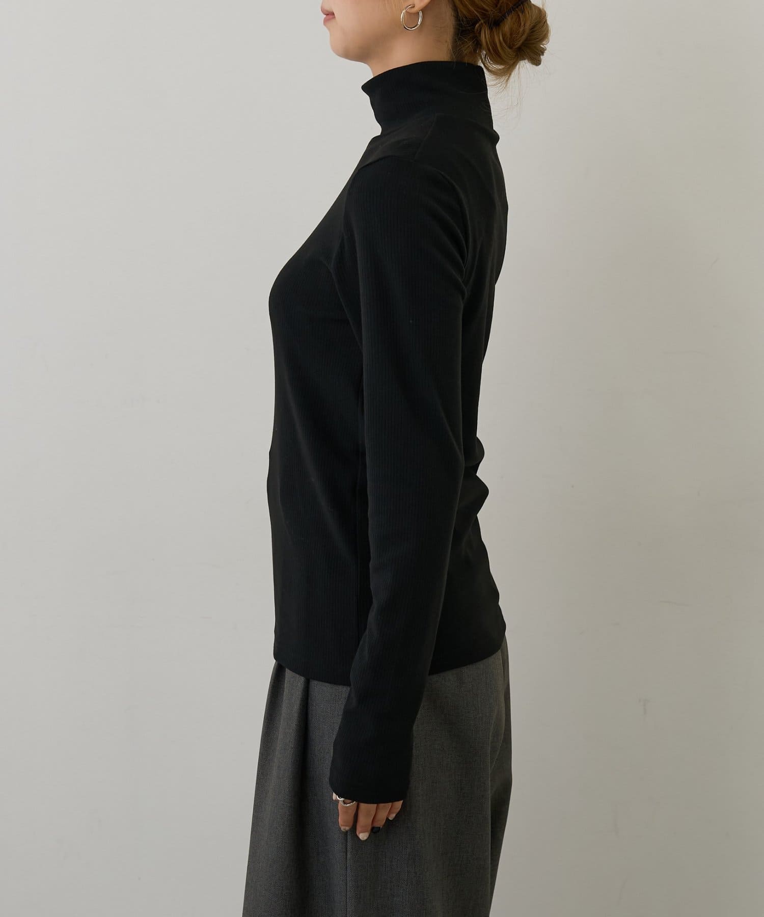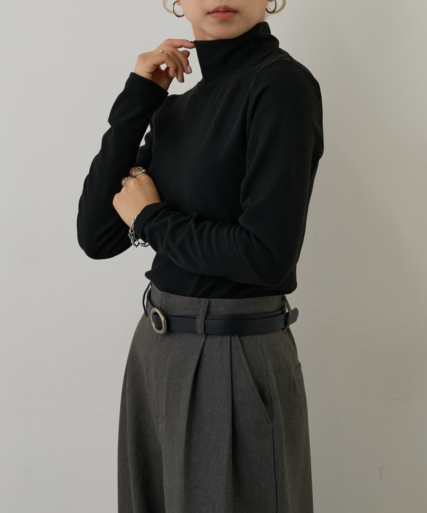 オフィスシーンから普段使いまで役立つ万能さにプラスして、首元まで隠れるハイネック仕様なので防寒性も◎