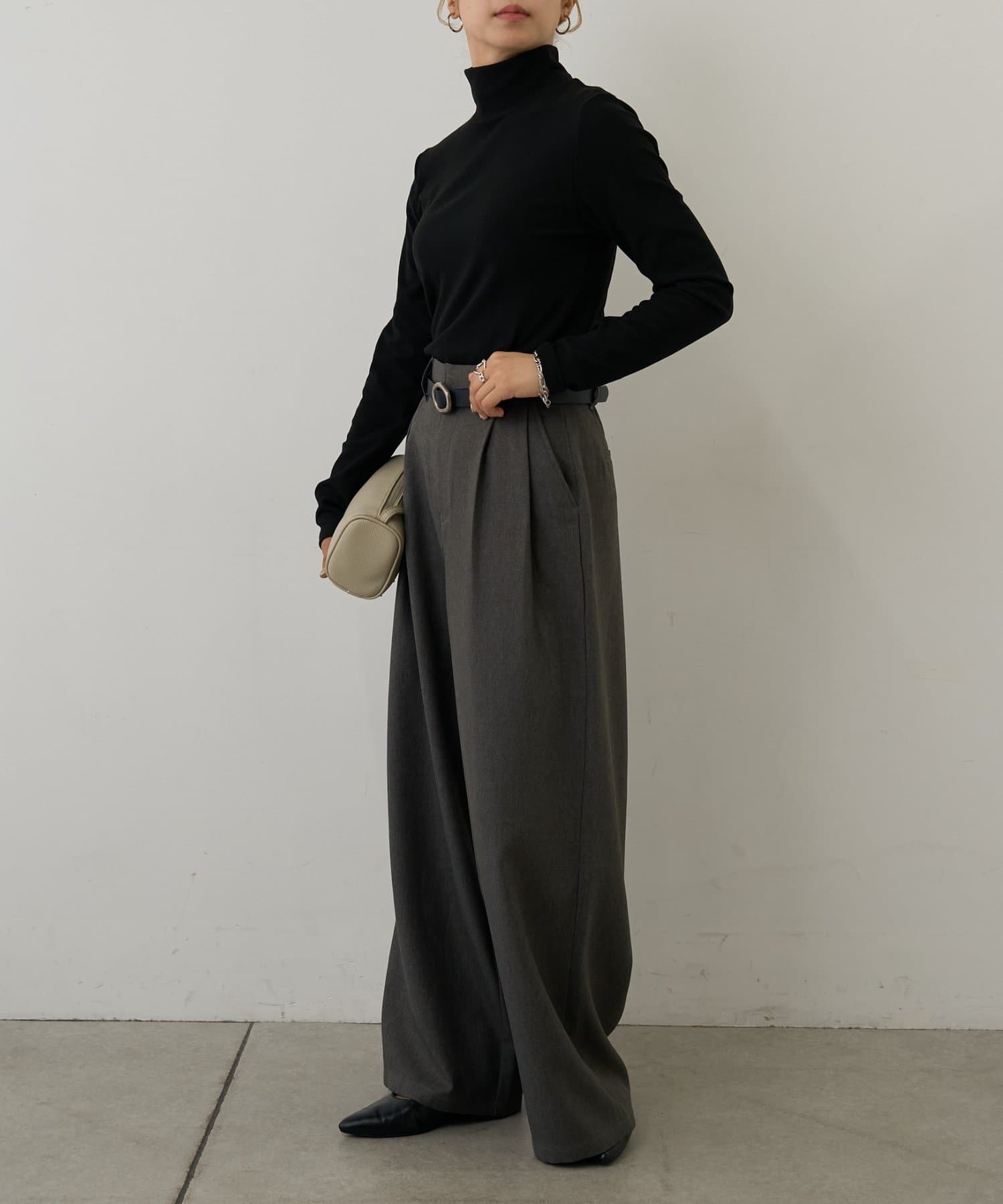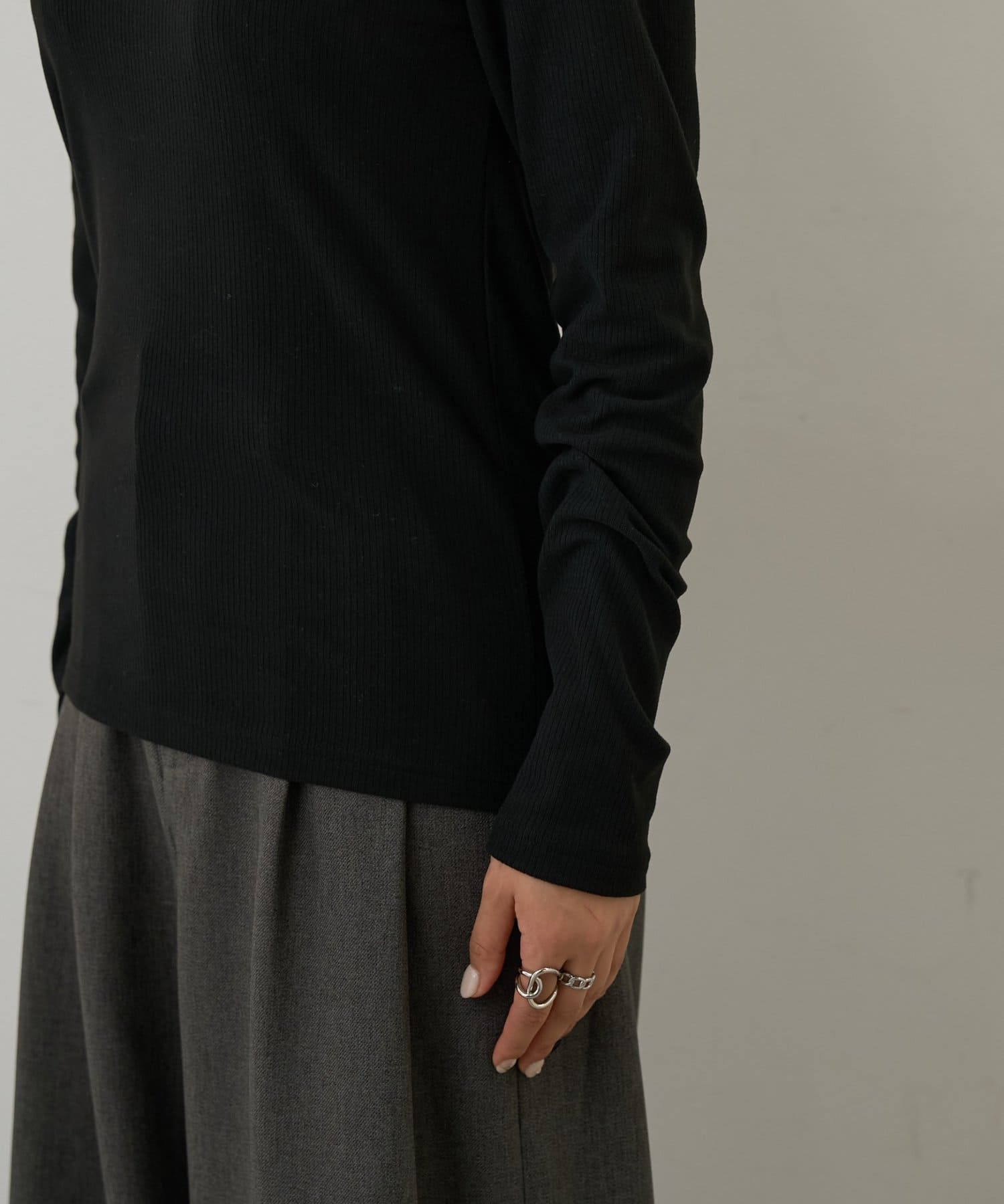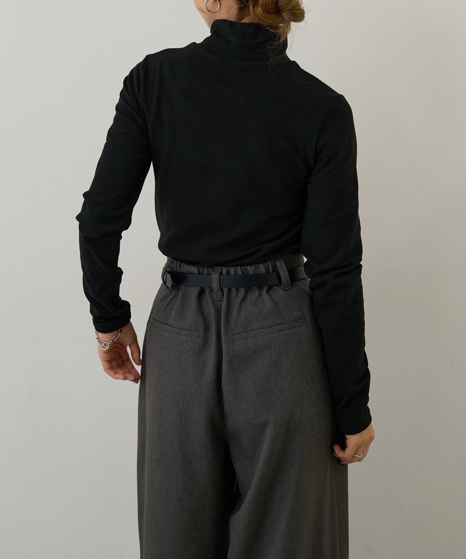 オフィスシーンから普段使いまで役立つ万能さにプラスして、首元まで隠れるハイネック仕様なので防寒性も◎