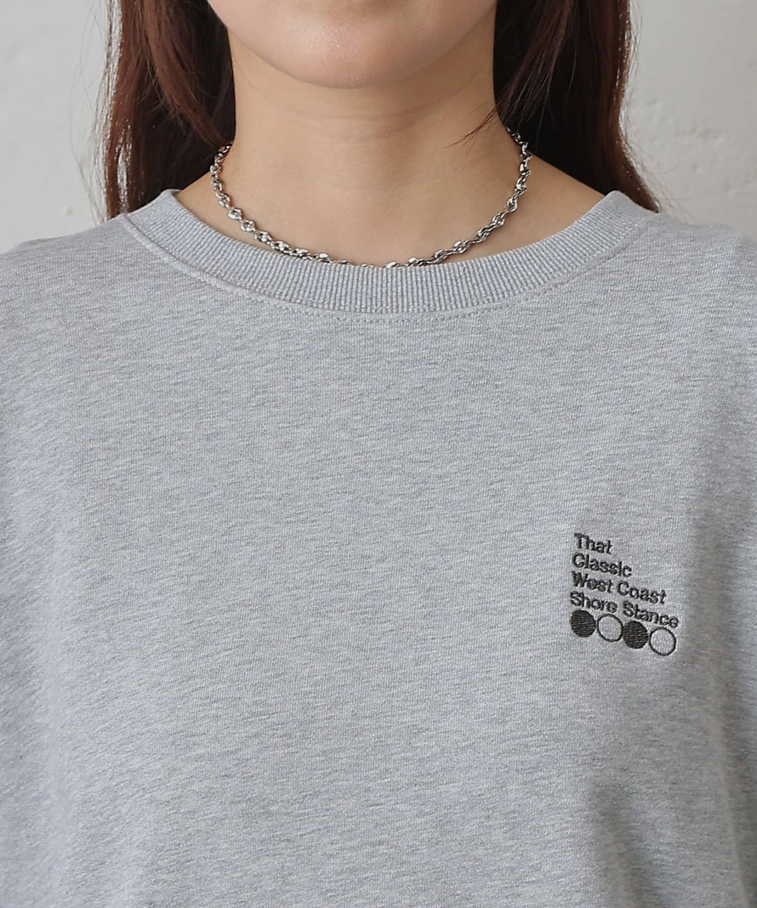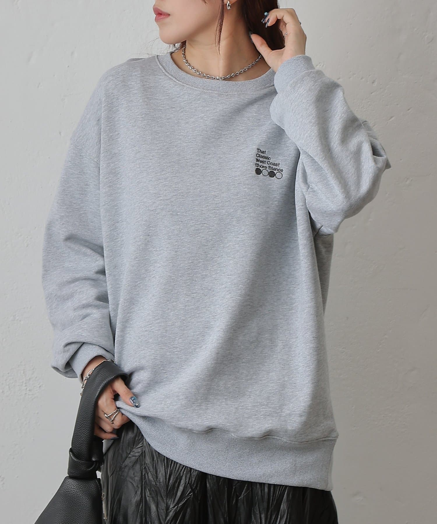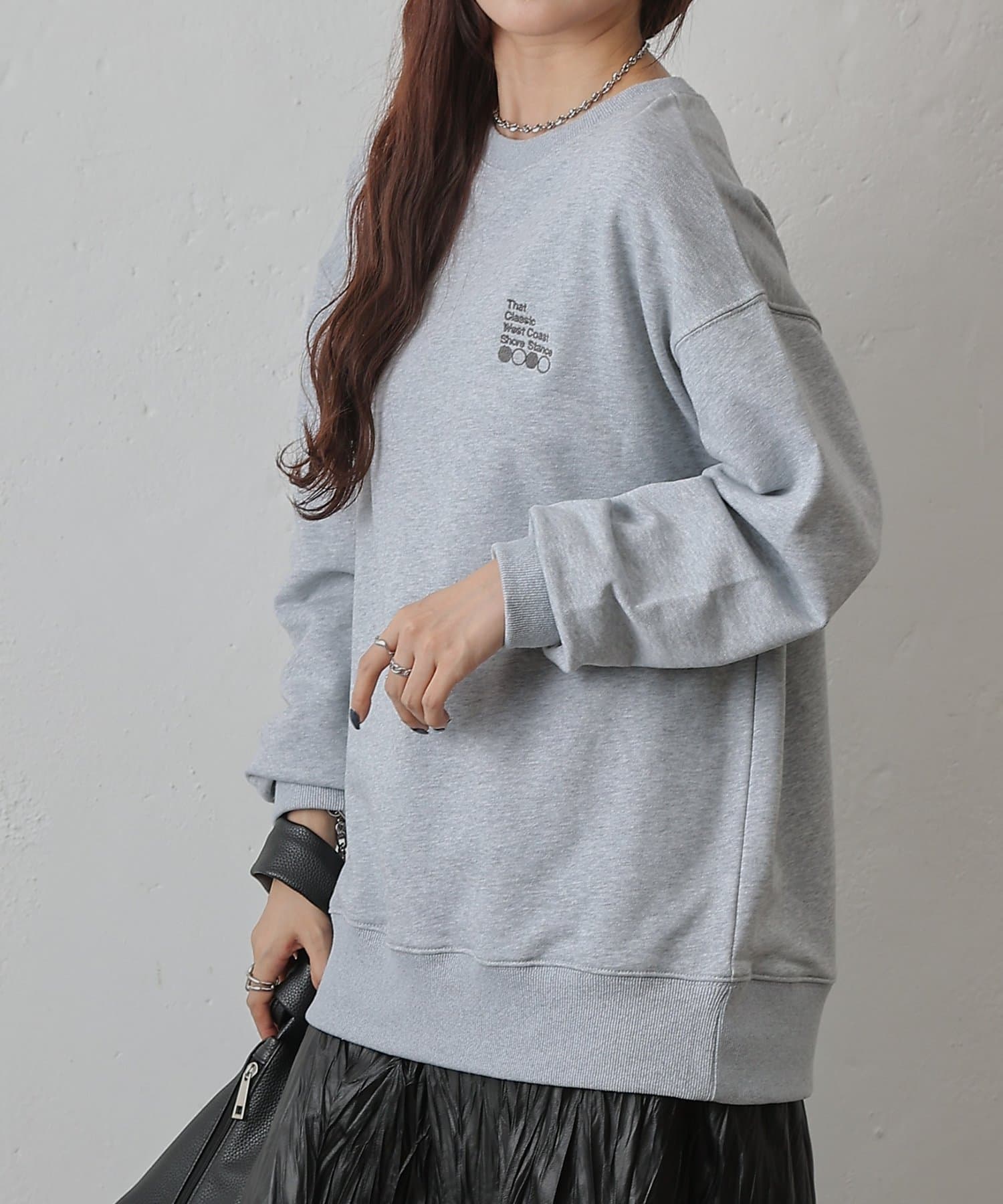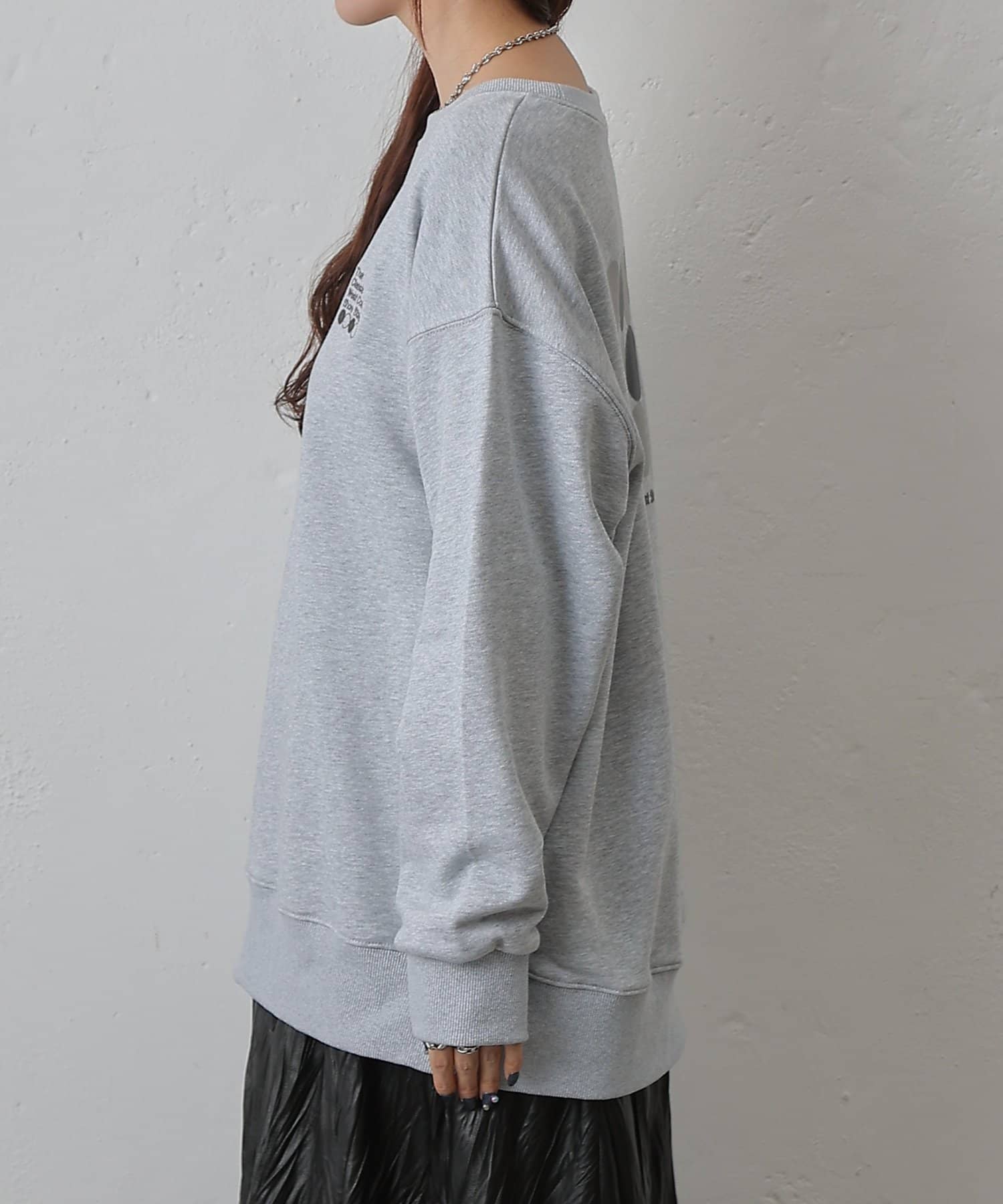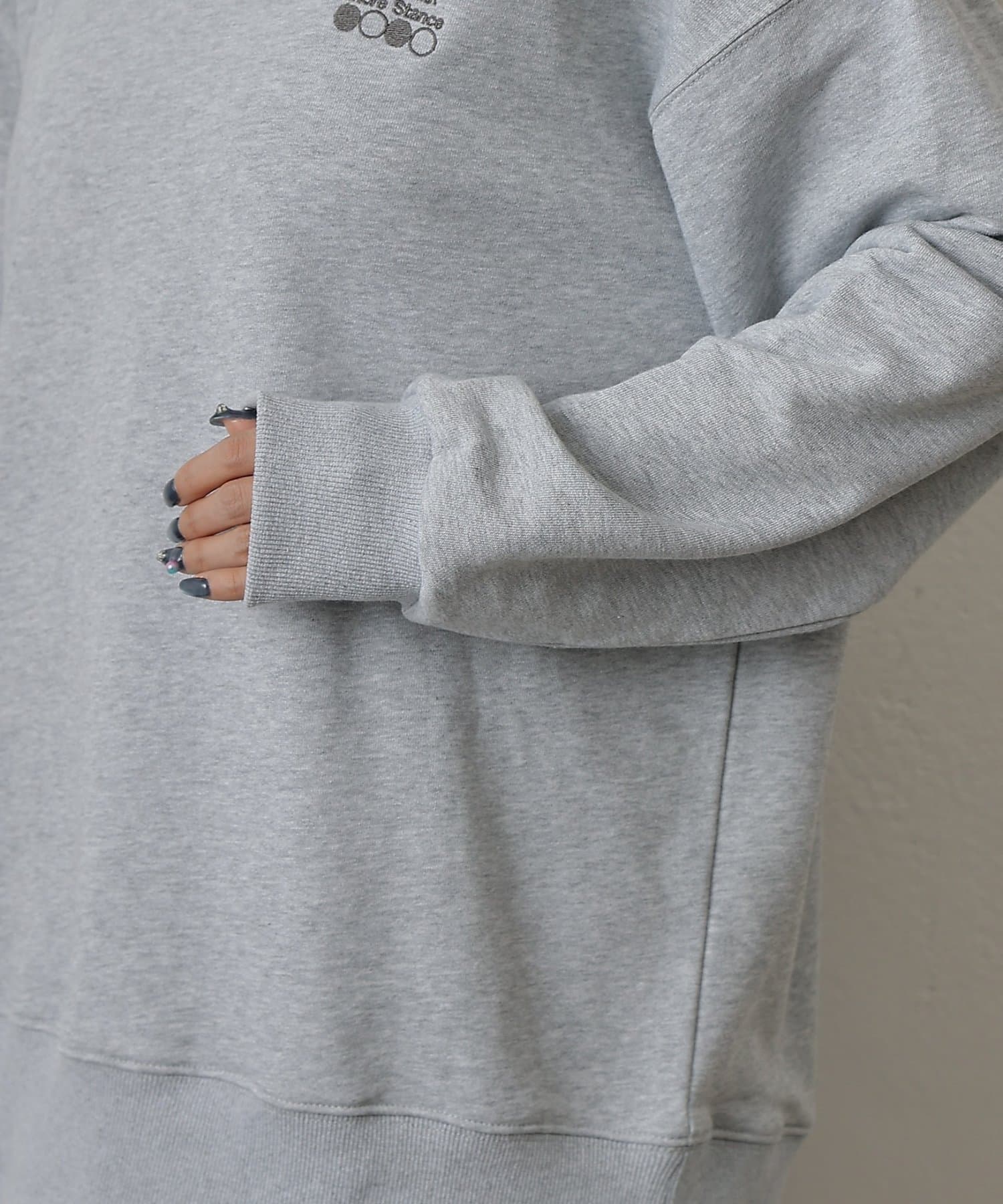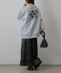 バックのフロッキープリントと胸元の刺繍がポイントのプルオーバーです。