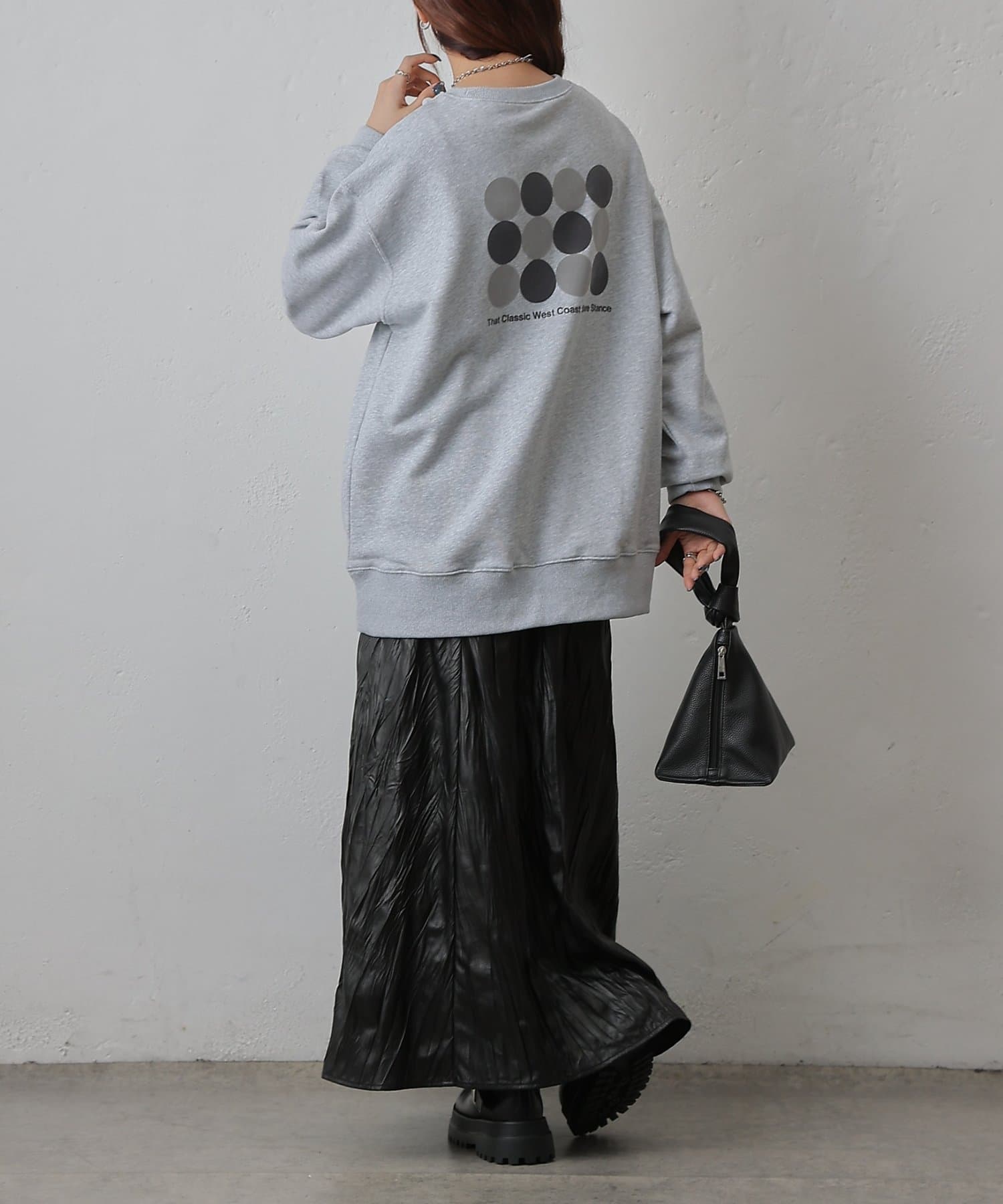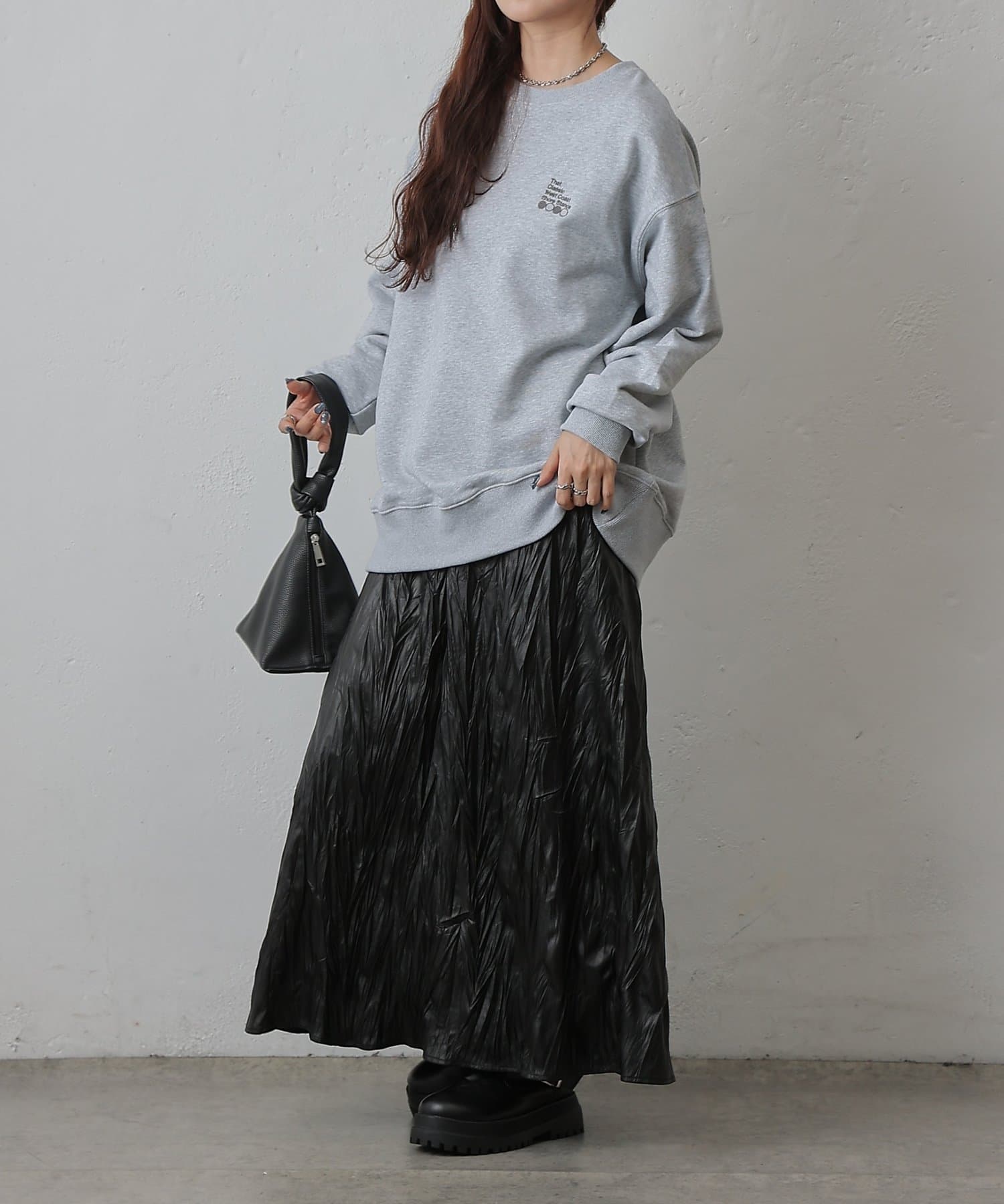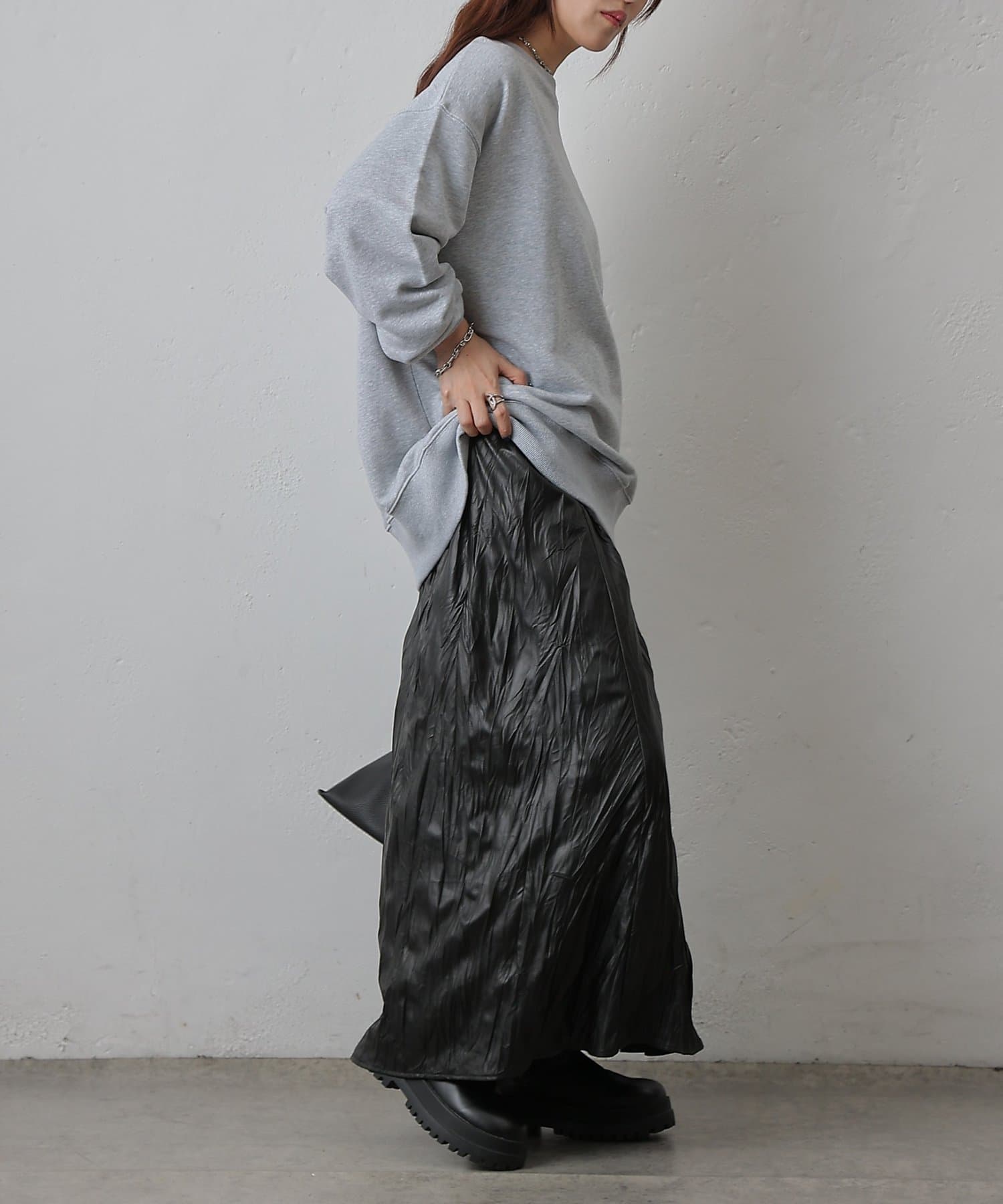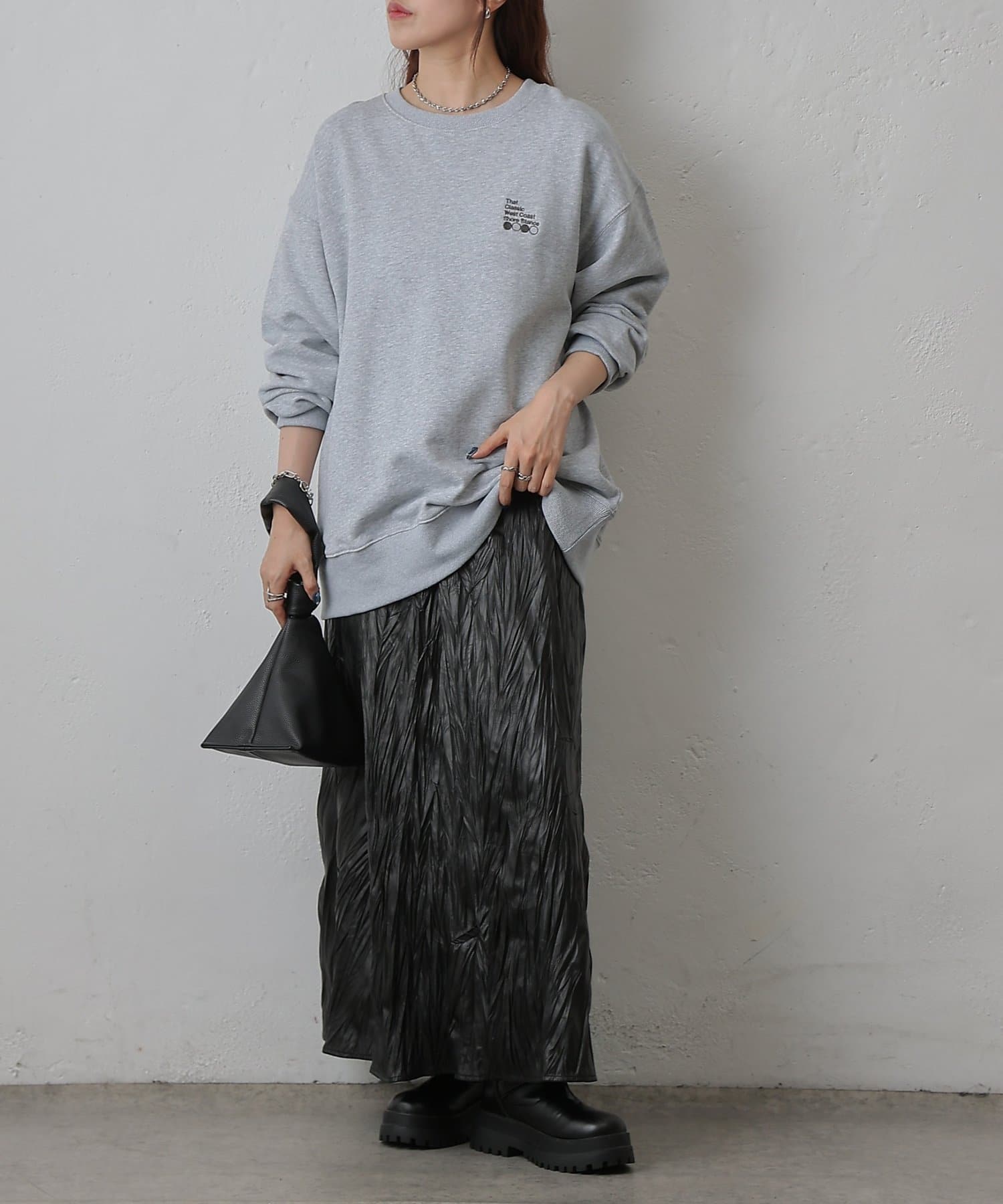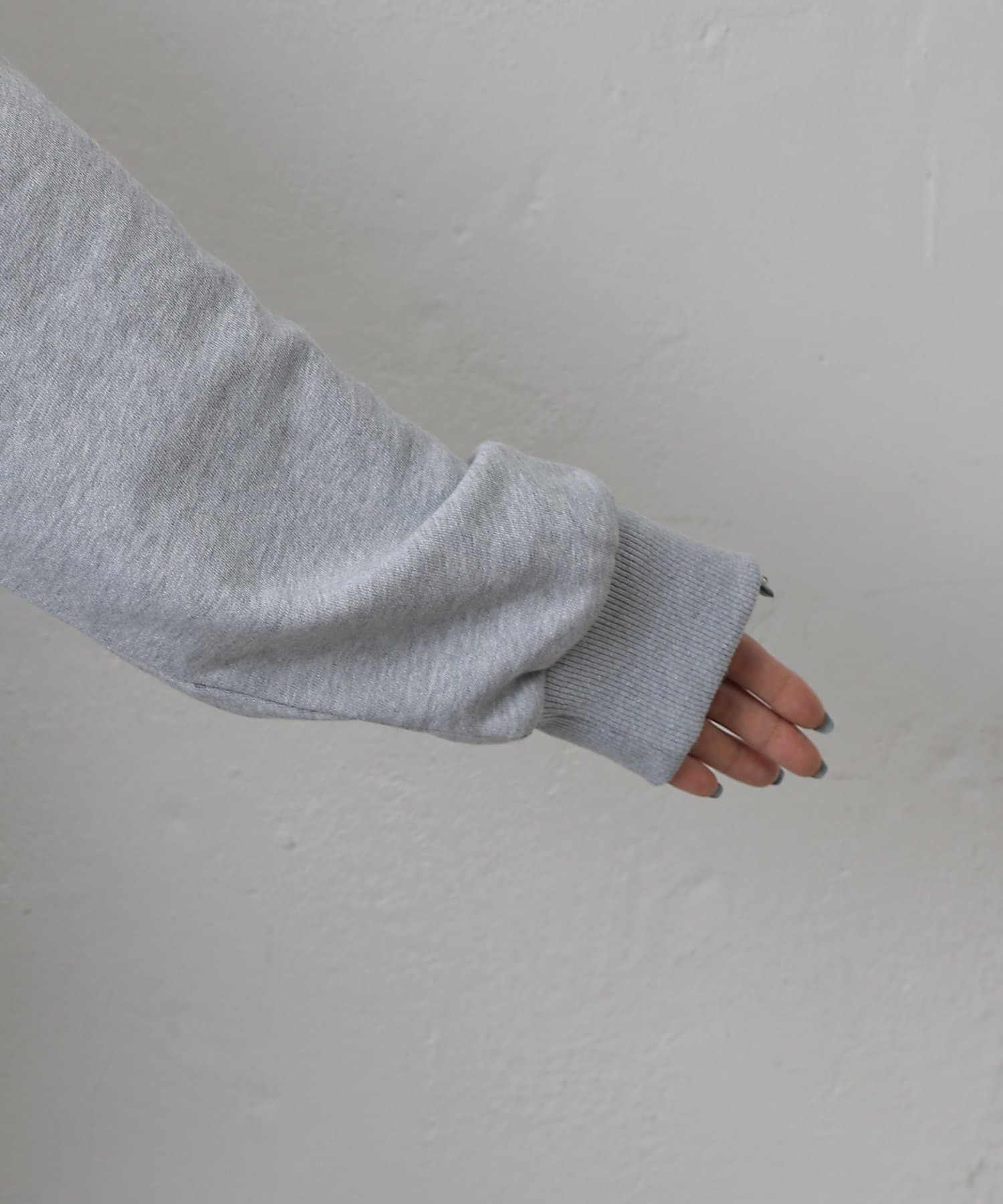 ゆったりとしたシルエットですが、裾と袖のリブ加工でメリハリが出るのでラフ過ぎない印象に◎