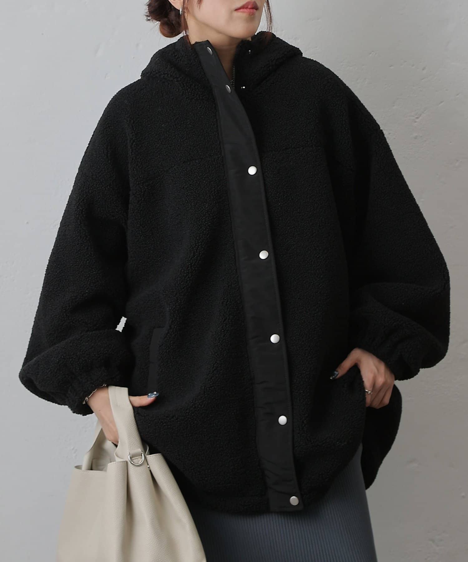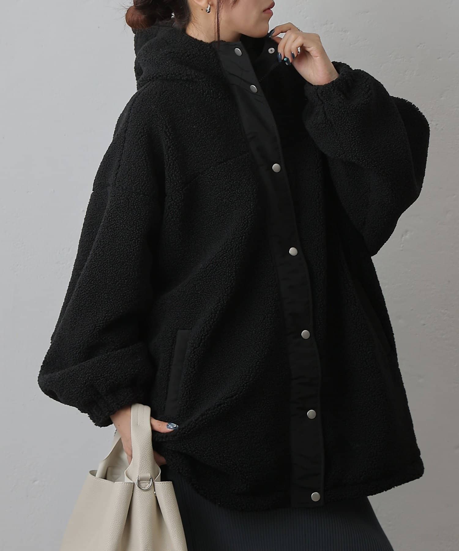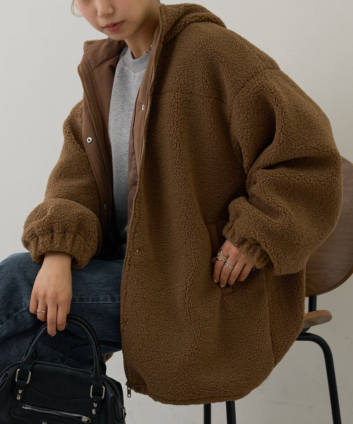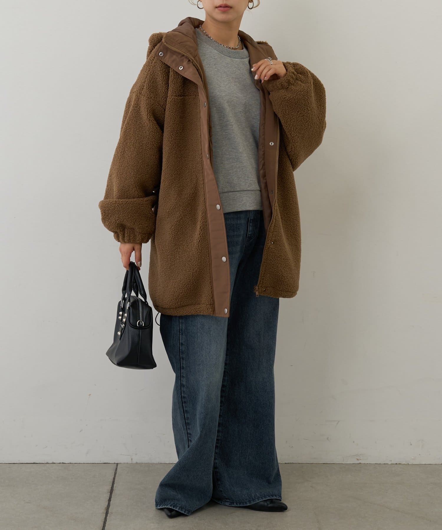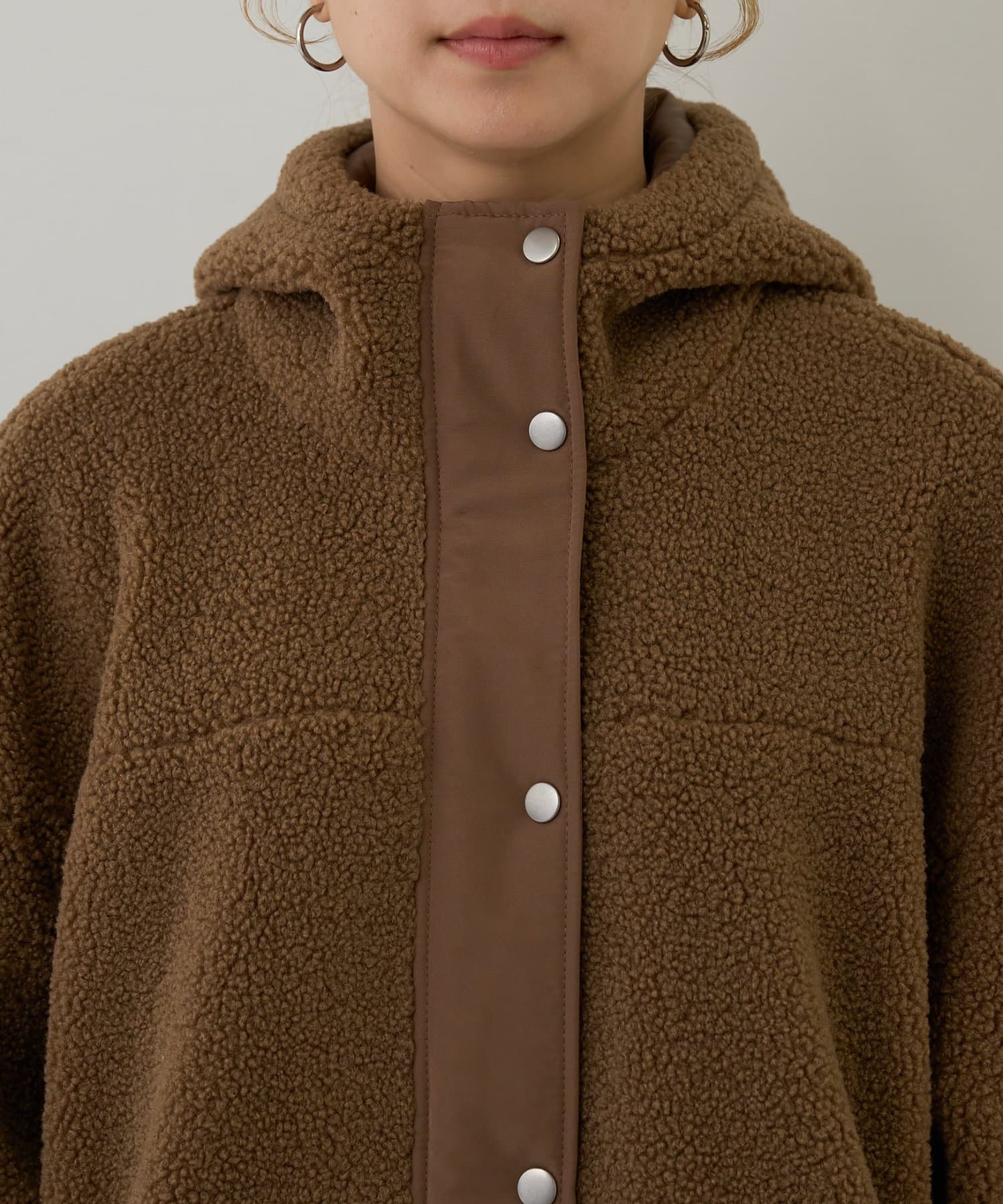 シーズンムードが漂うもこもこボア素材で、見た目も着心地も暖かい印象に◎