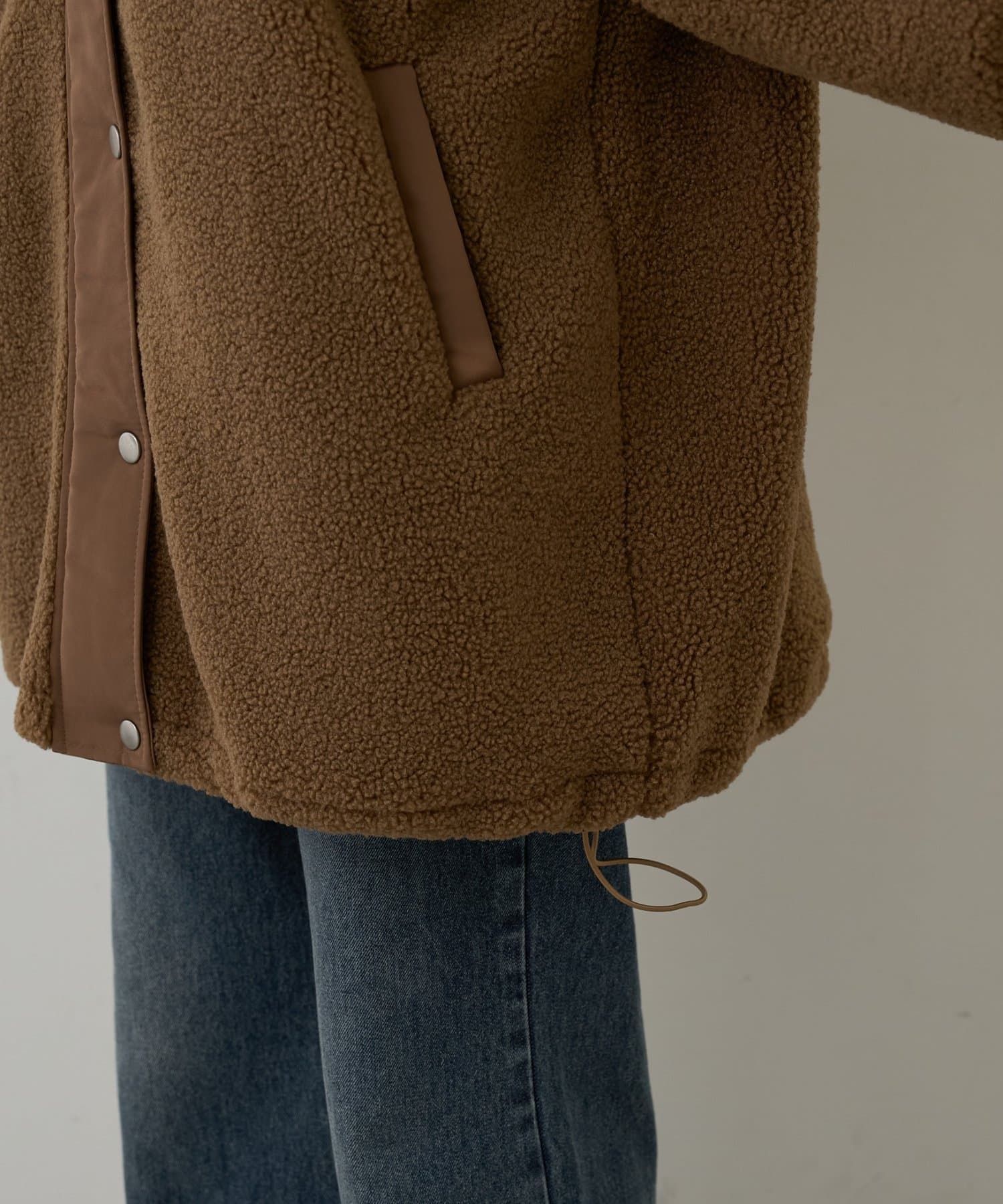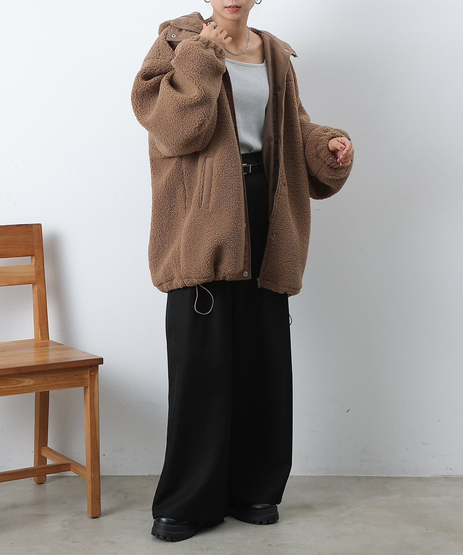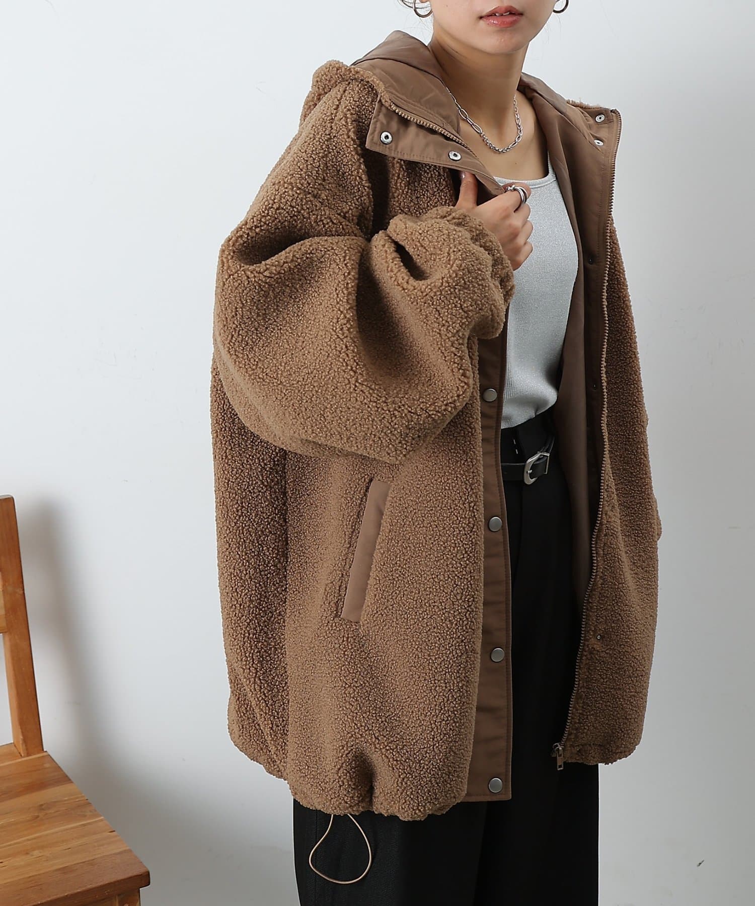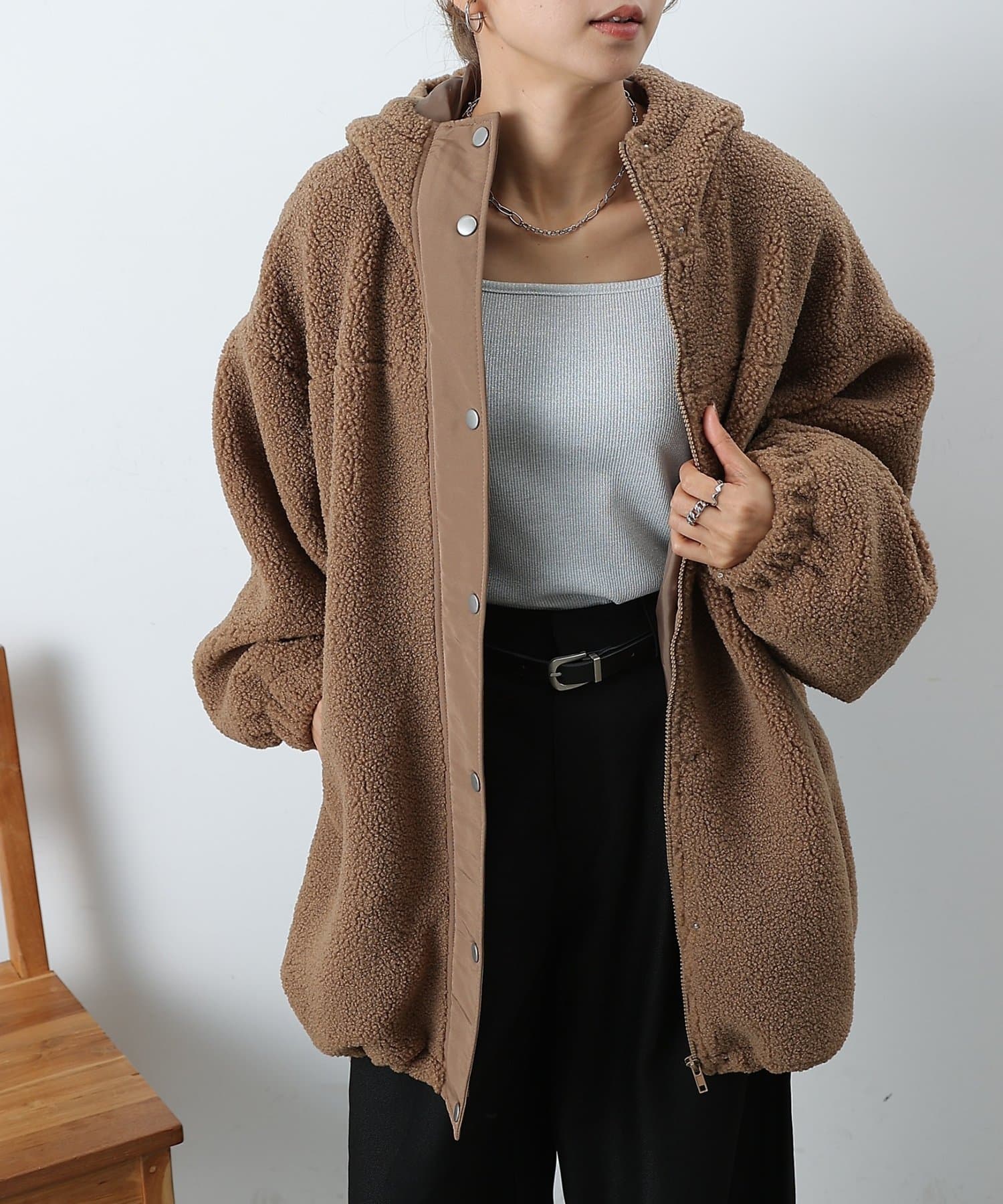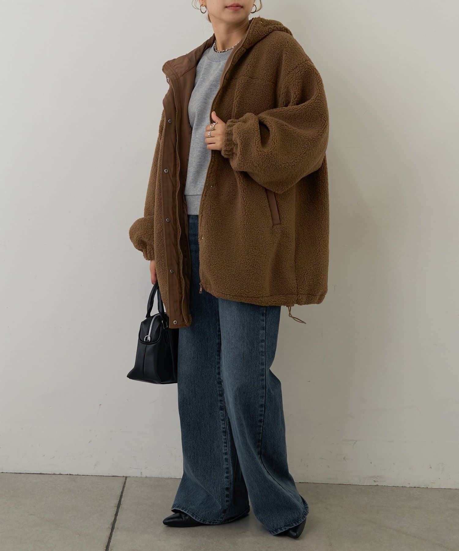 シーズンムードが漂うもこもこボア素材で、見た目も着心地も暖かい印象に◎