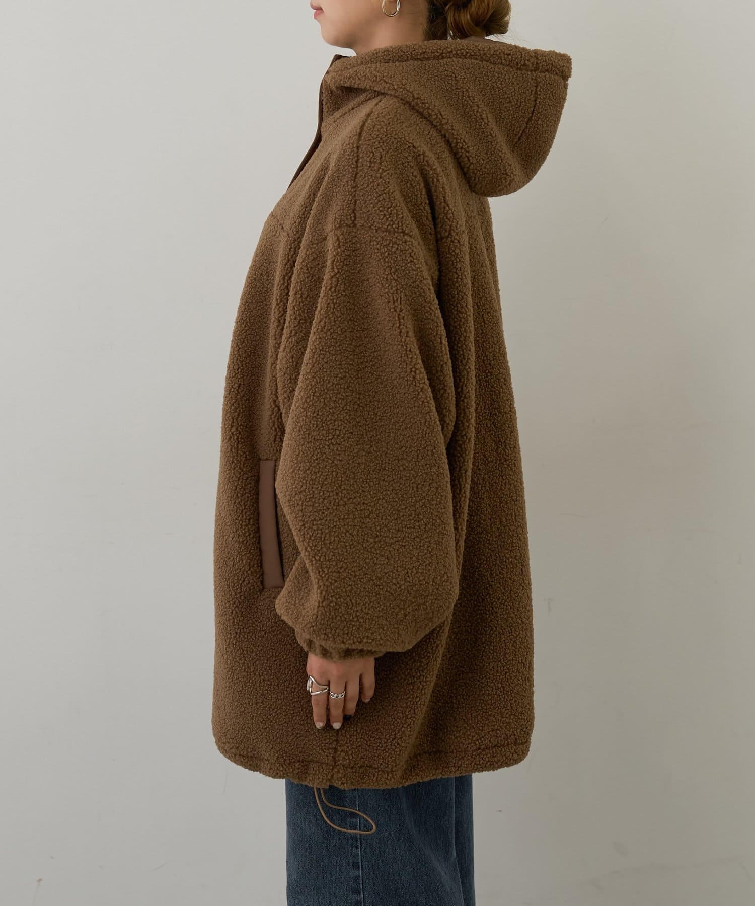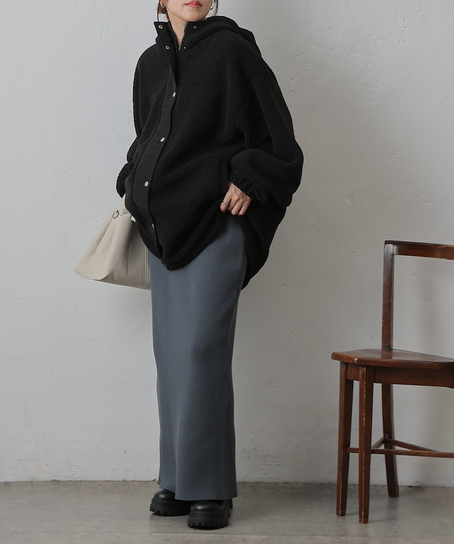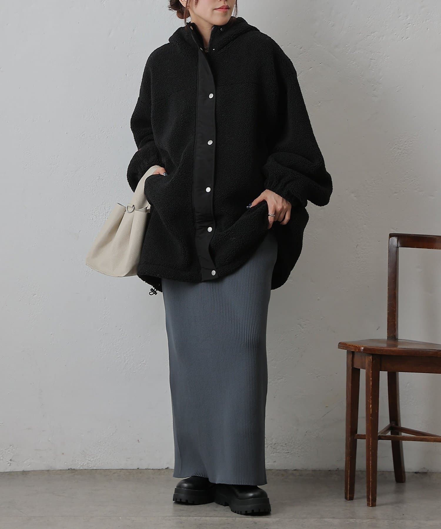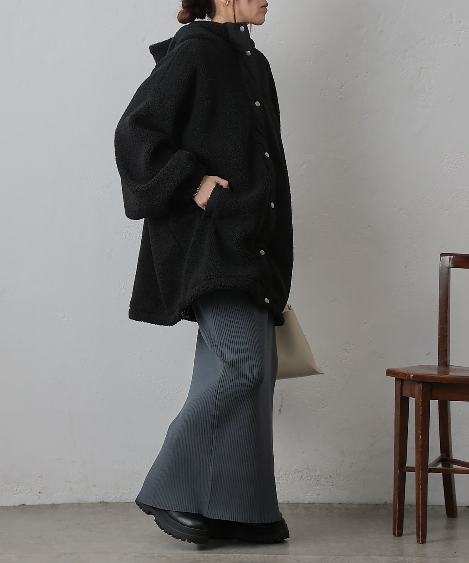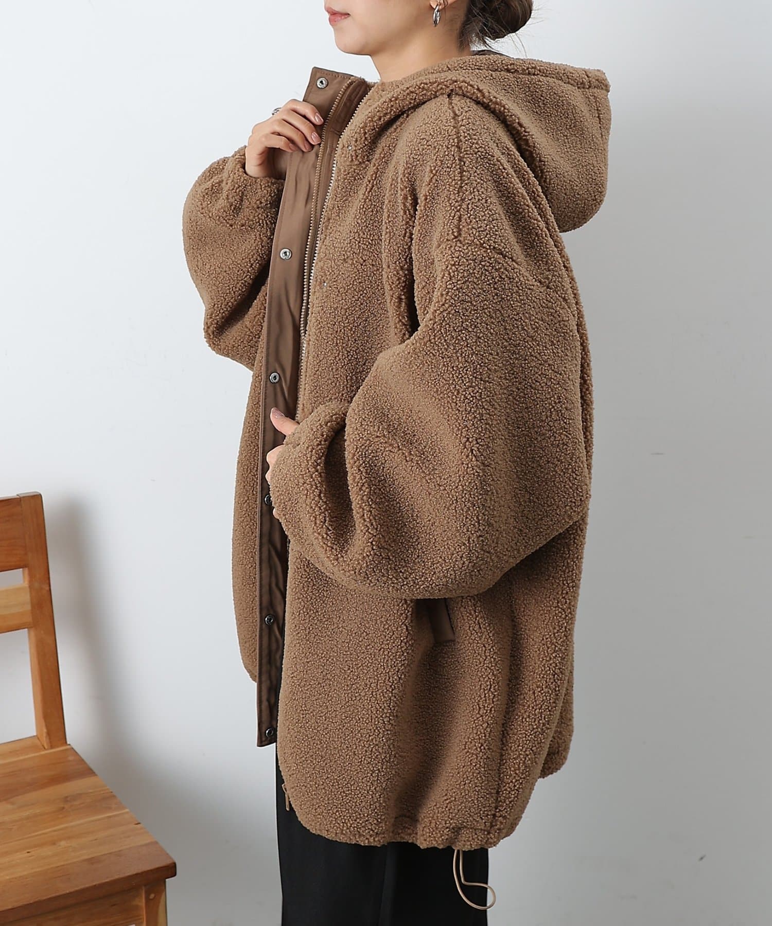 シーズンムードが漂うもこもこボア素材で、見た目も着心地も暖かい印象に◎
