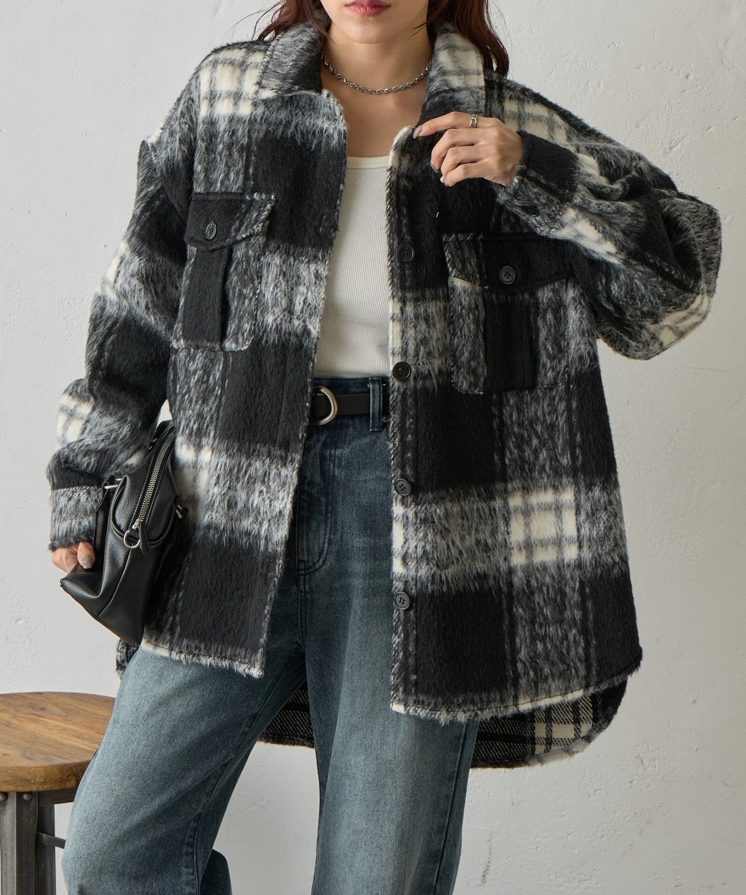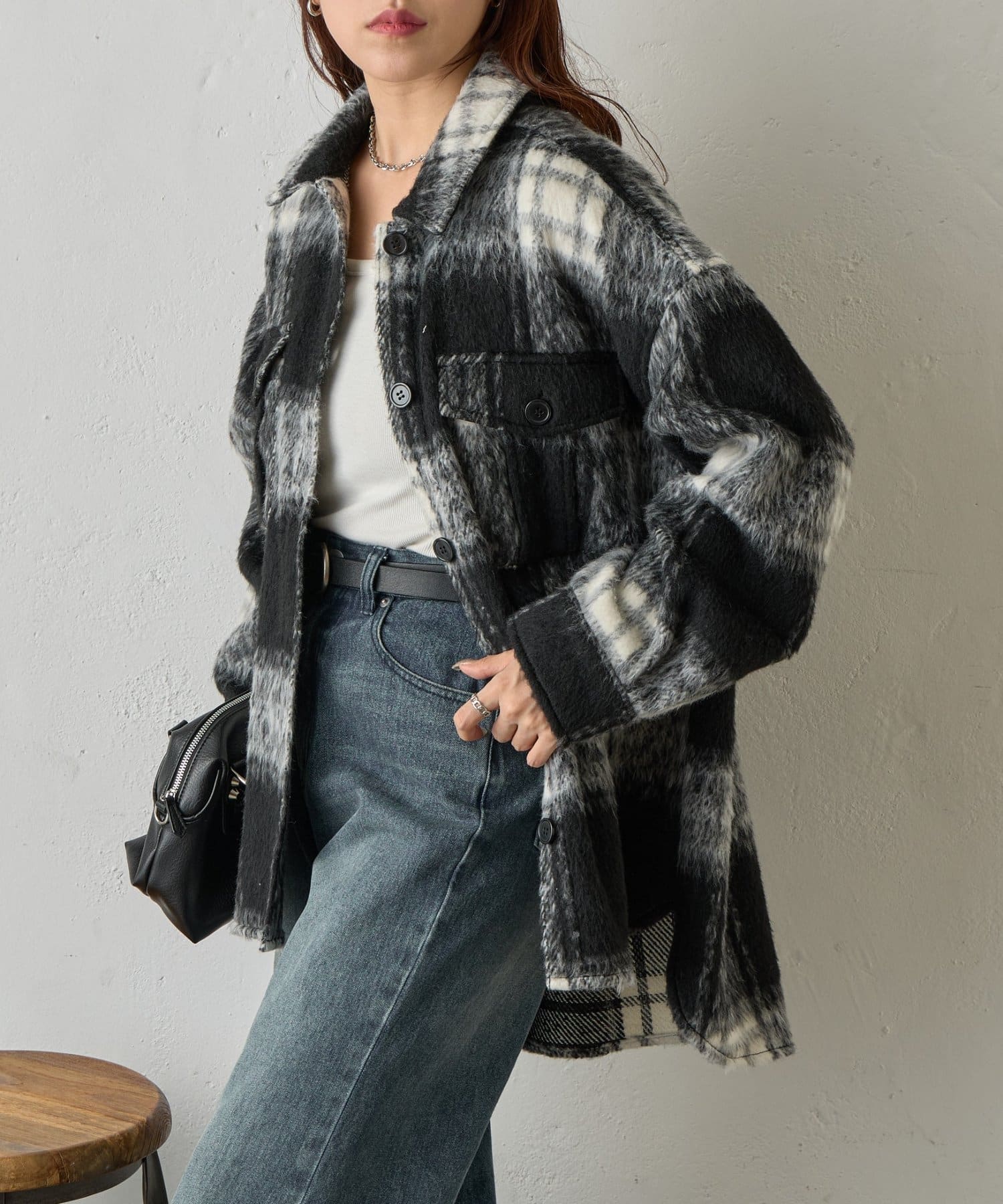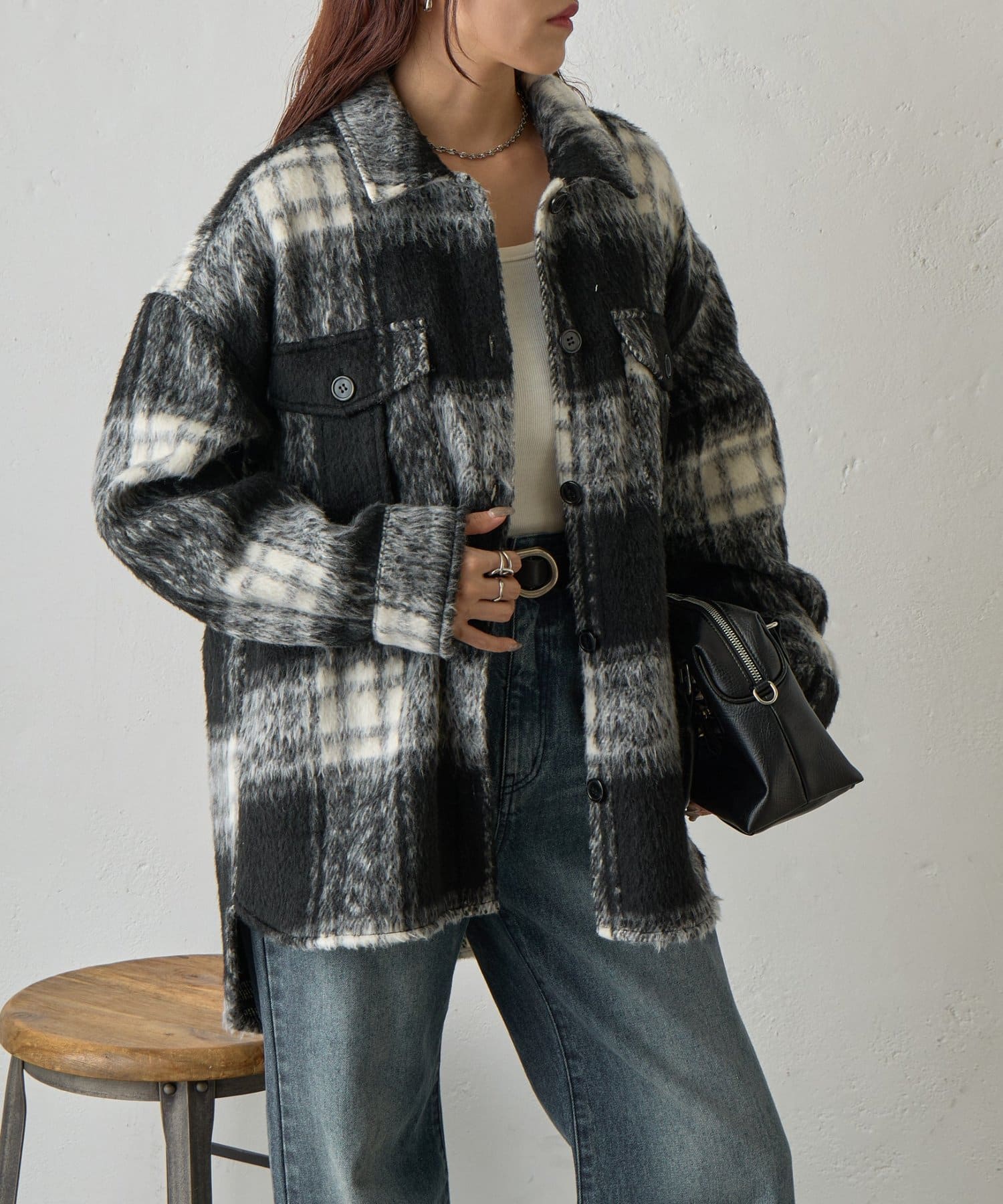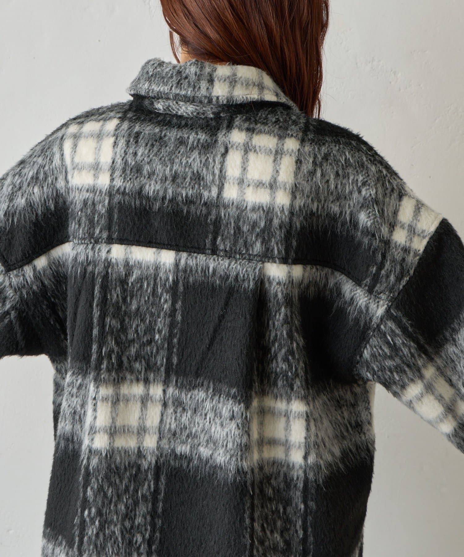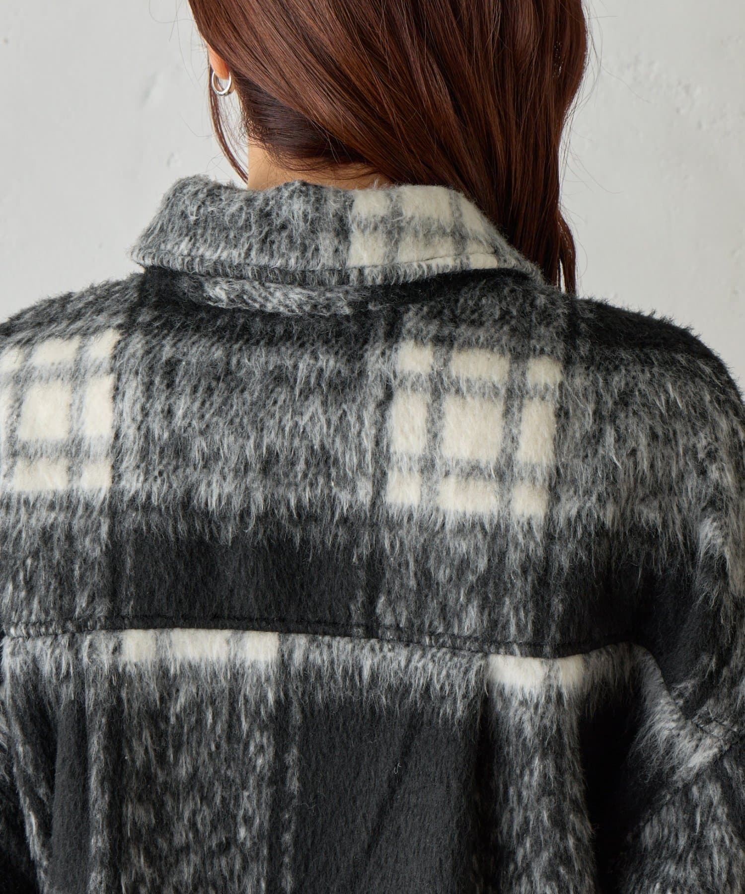 さっと羽織るだけでトレンド感あふれるスタイルが完成するシャギーチェックシャツアウターが登場。