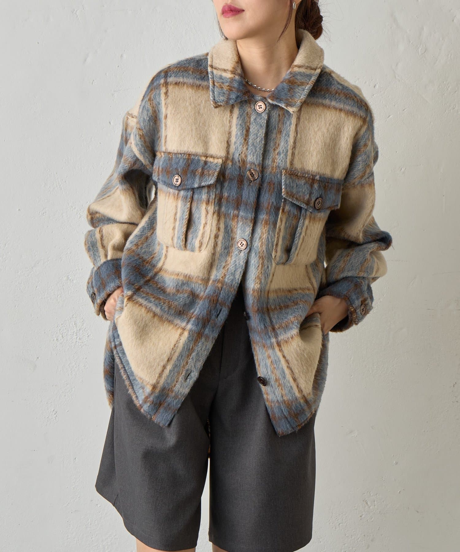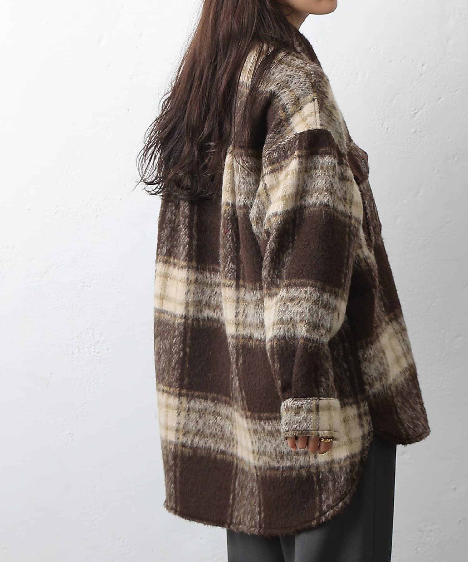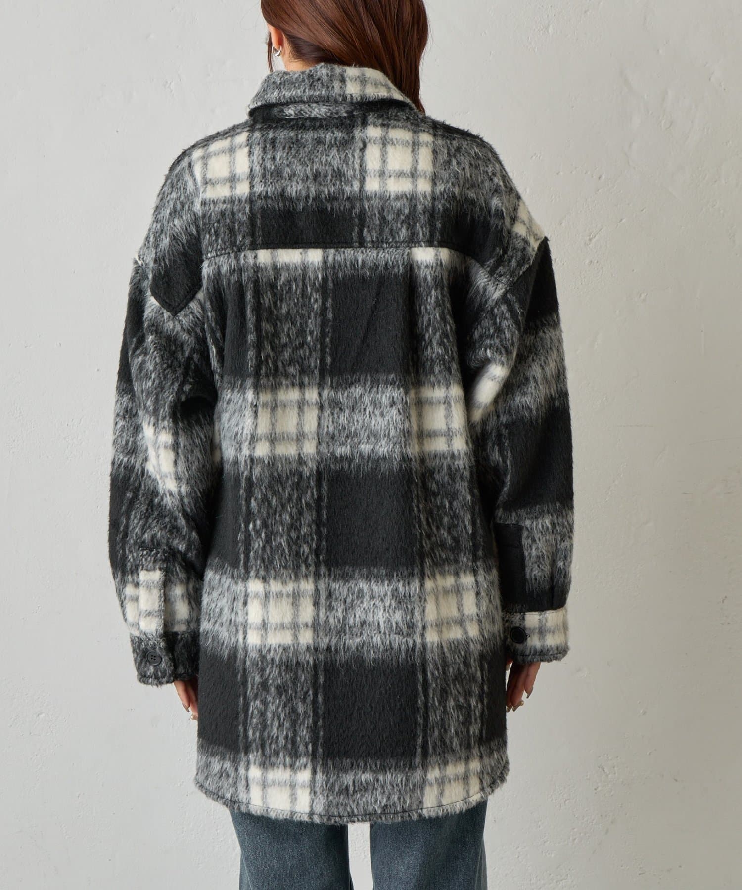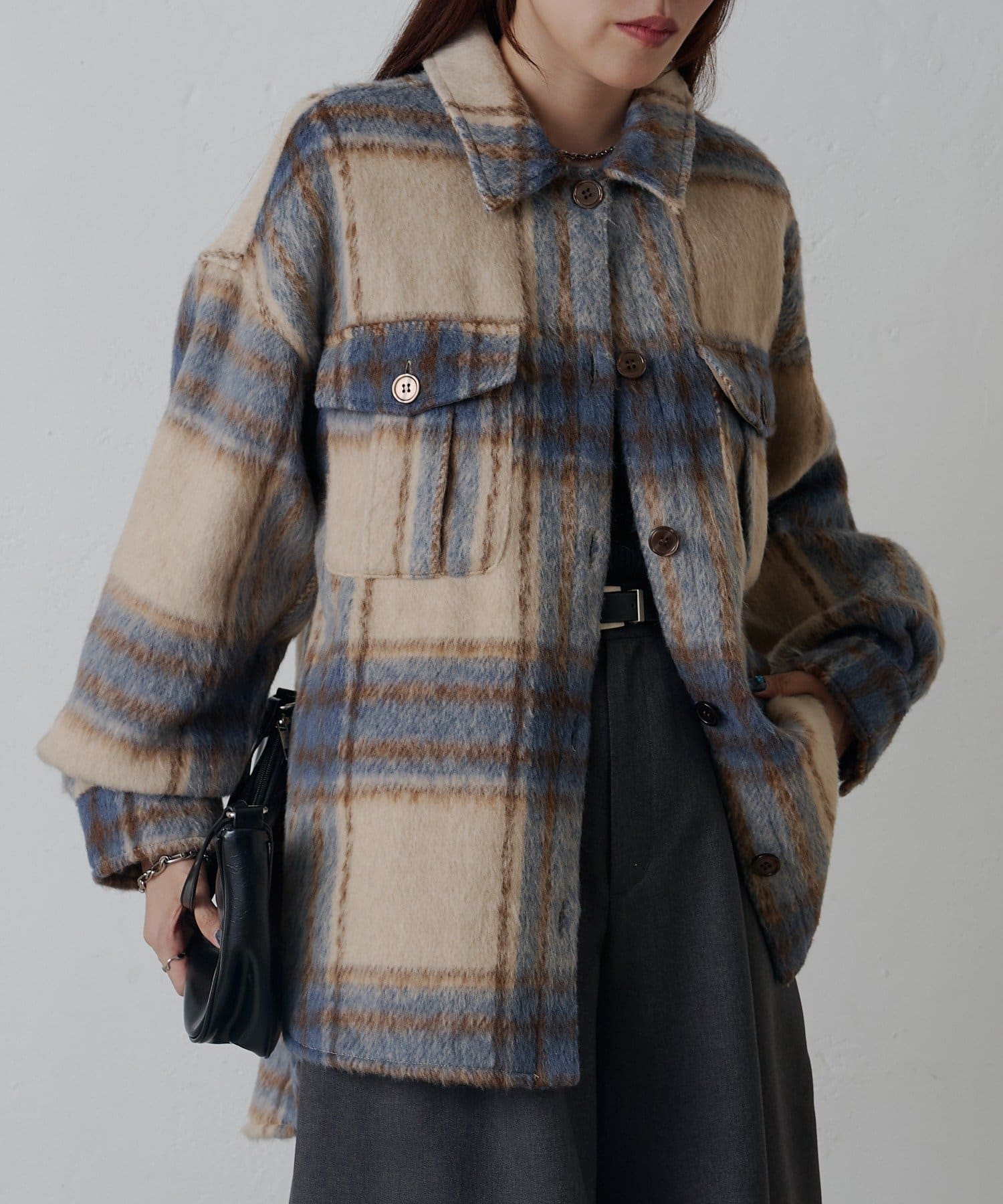 さっと羽織るだけでトレンド感あふれるスタイルが完成するシャギーチェックシャツアウターが登場。