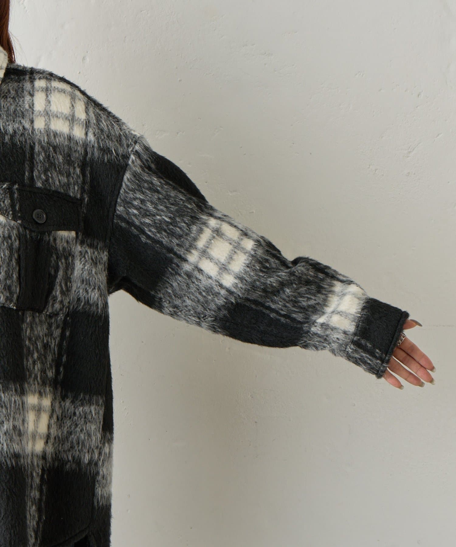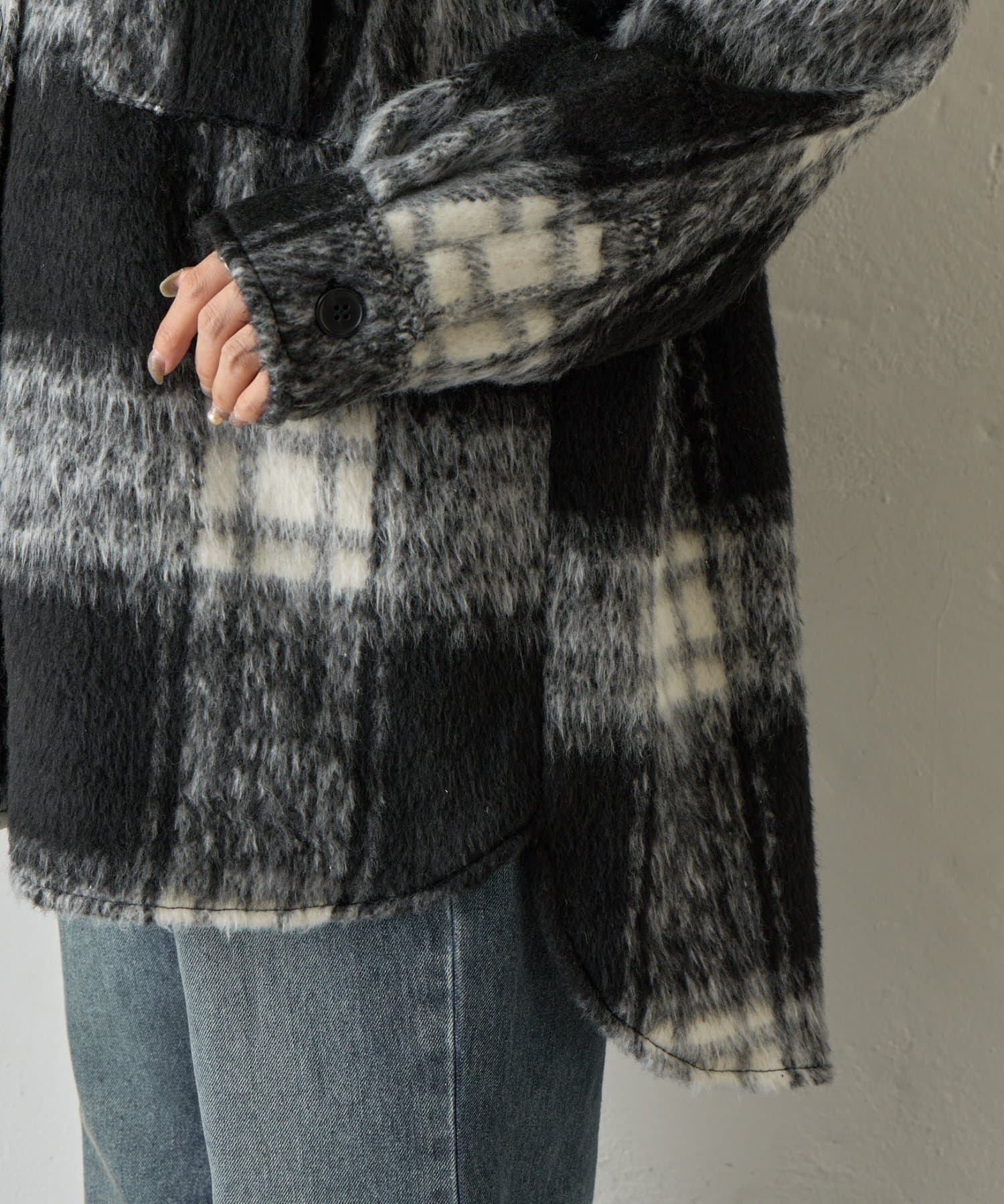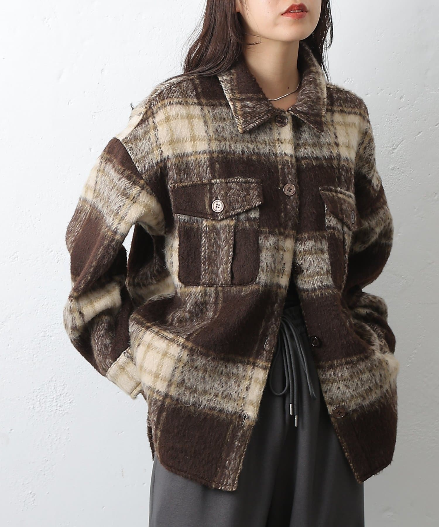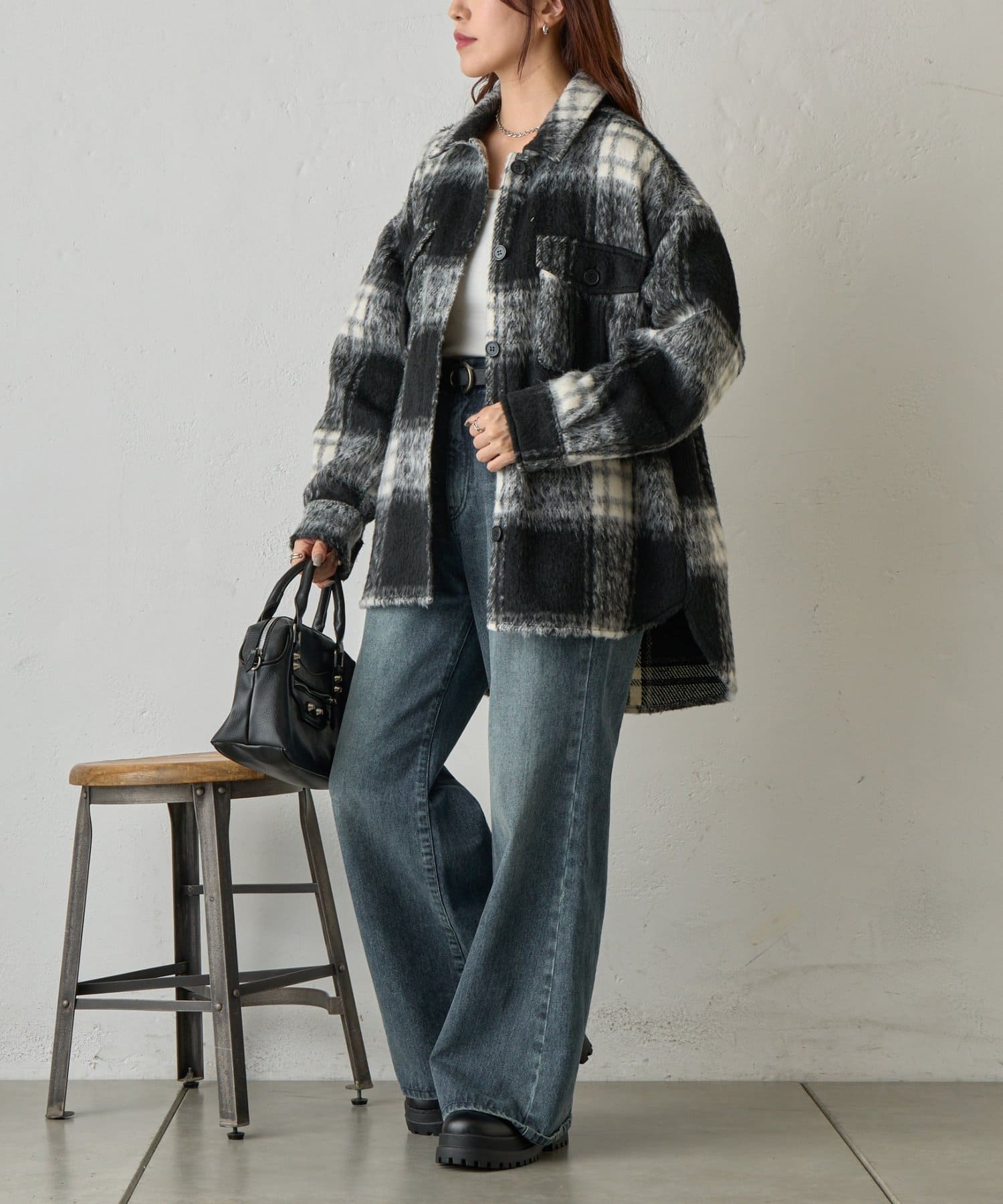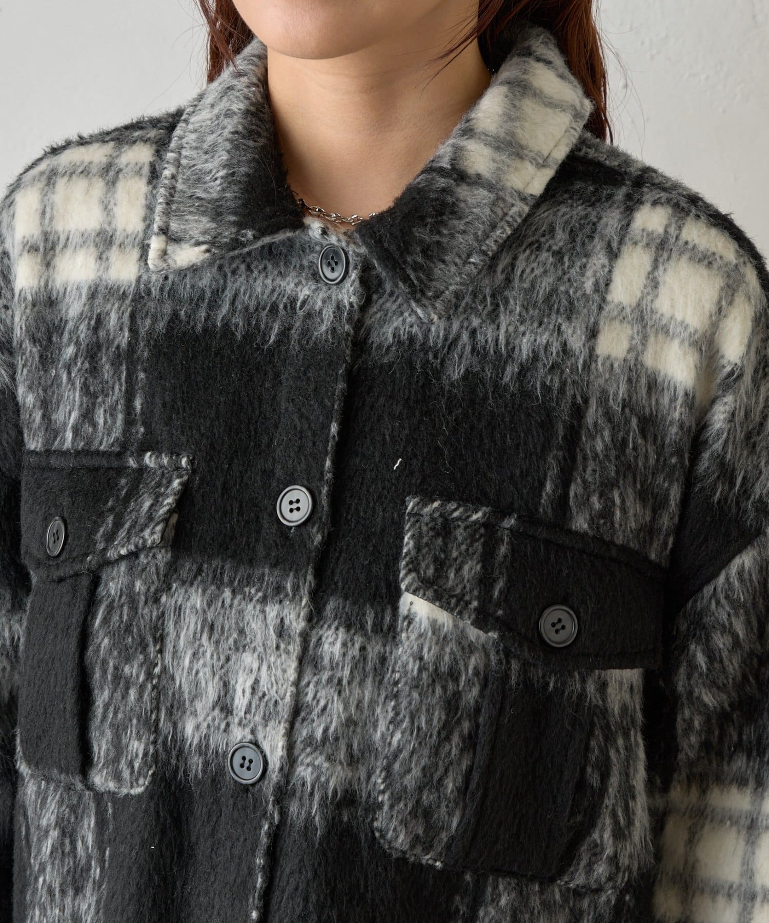 さっと羽織るだけでトレンド感あふれるスタイルが完成するシャギーチェックシャツアウターが登場。