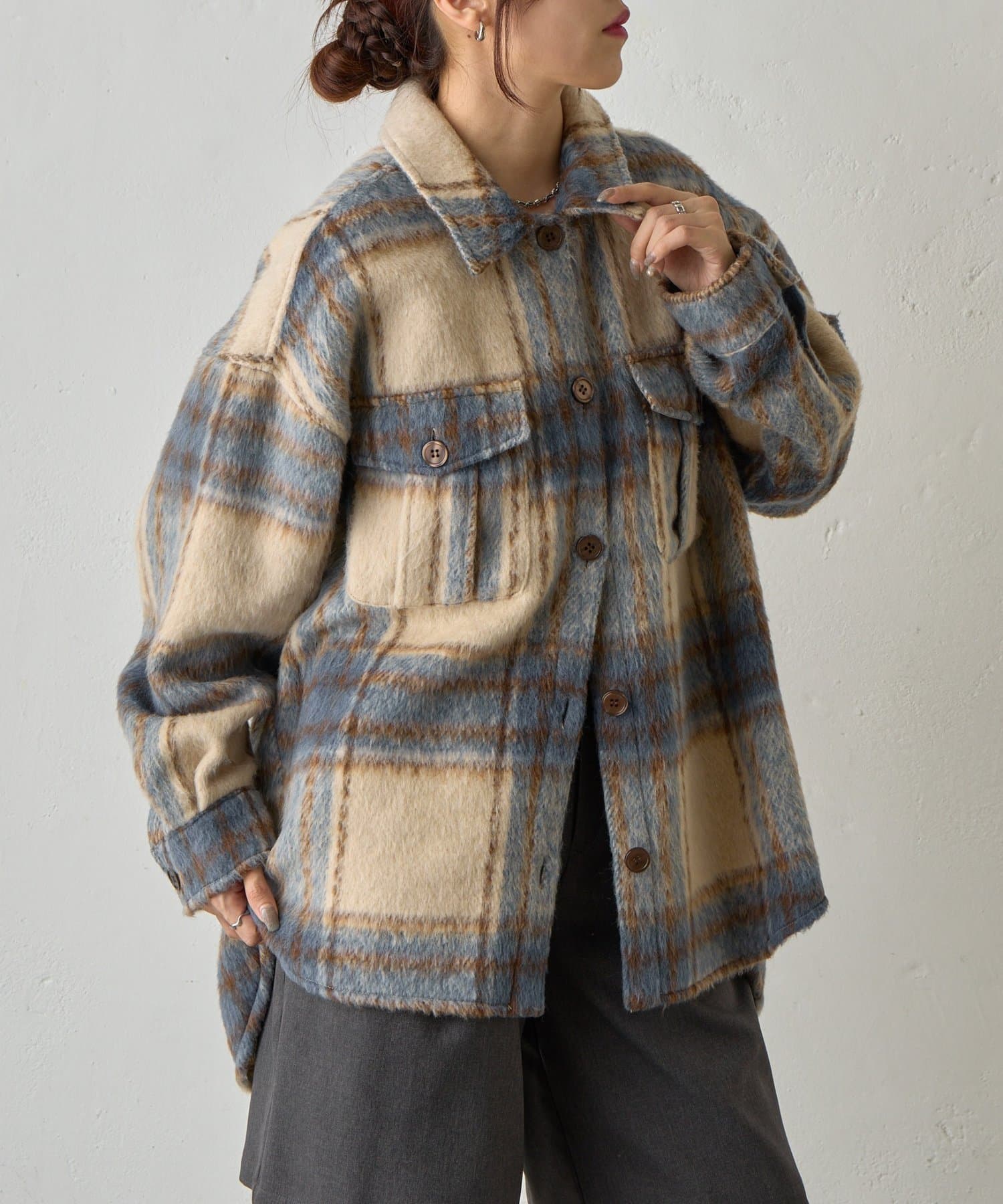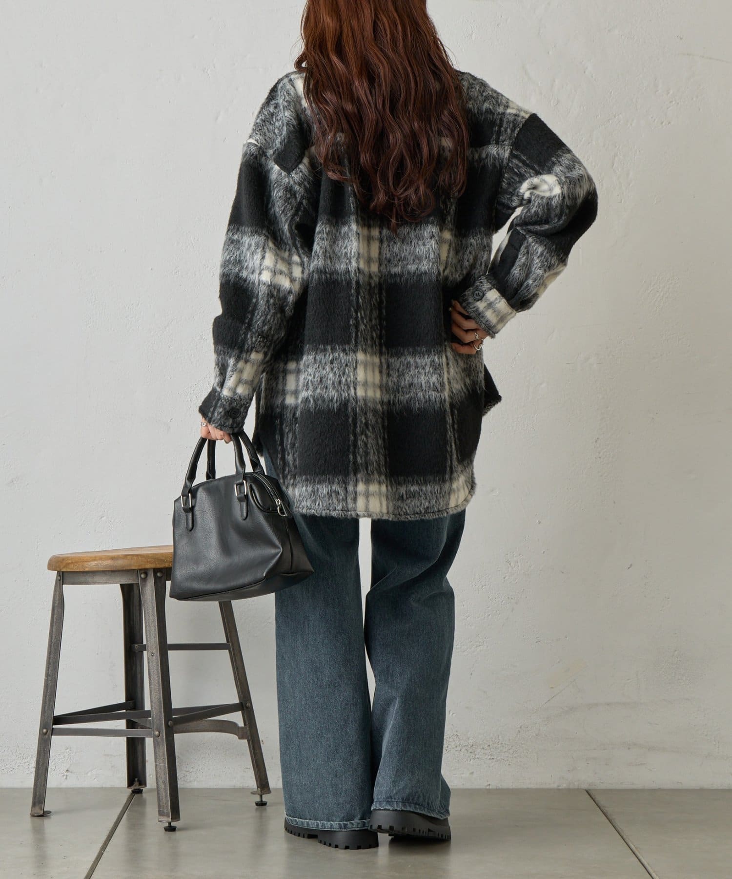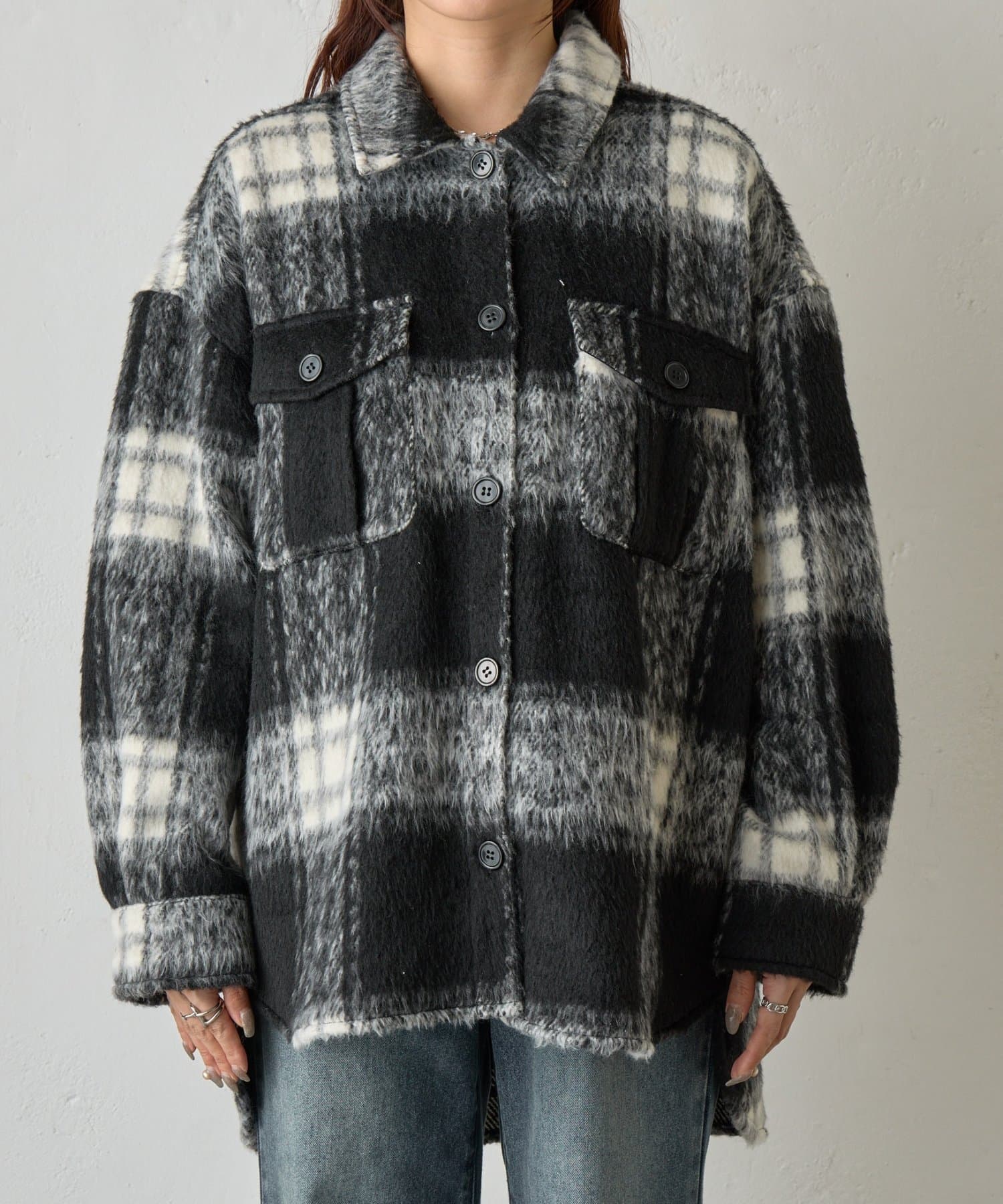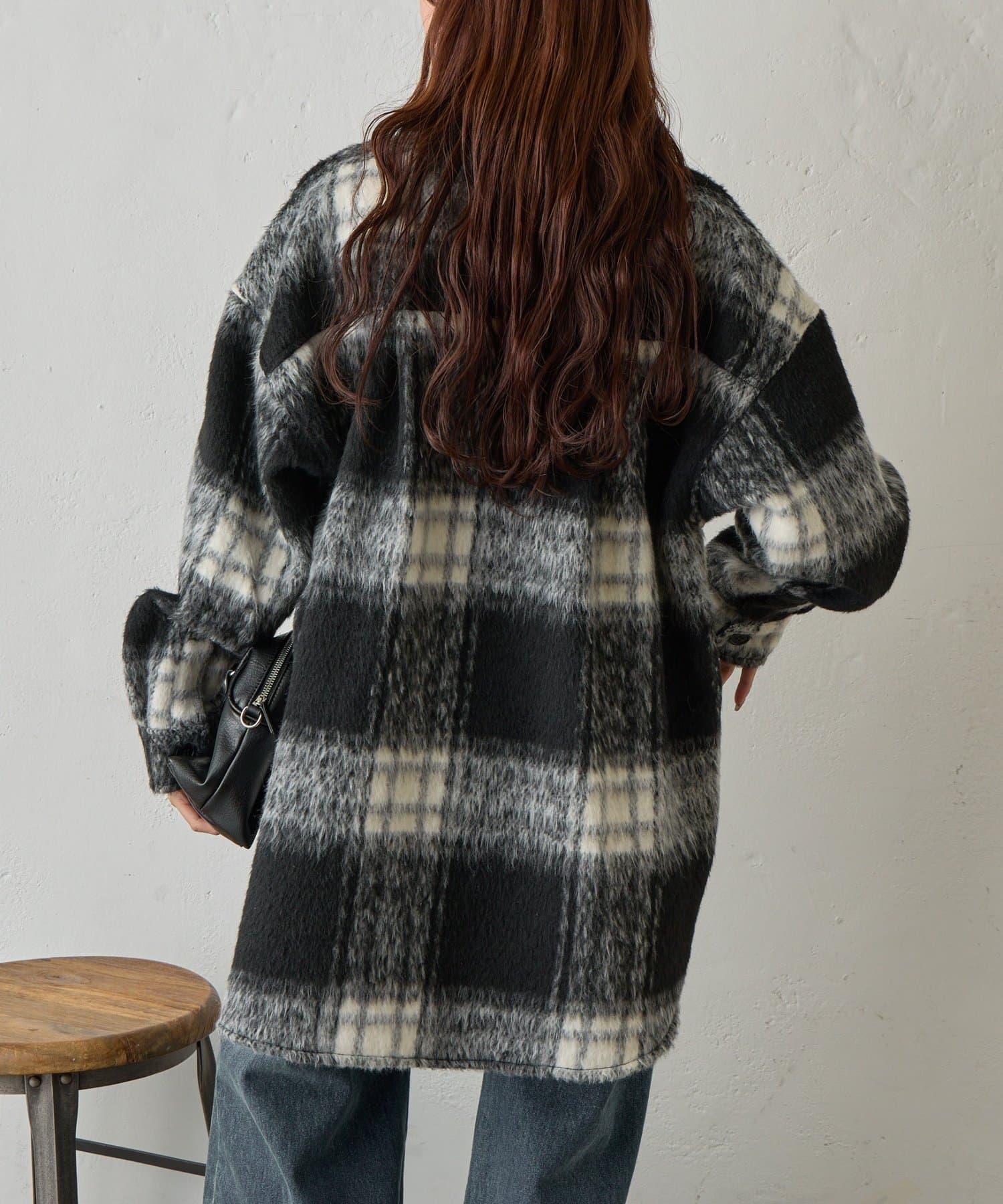 さっと羽織るだけでトレンド感あふれるスタイルが完成するシャギーチェックシャツアウターが登場。