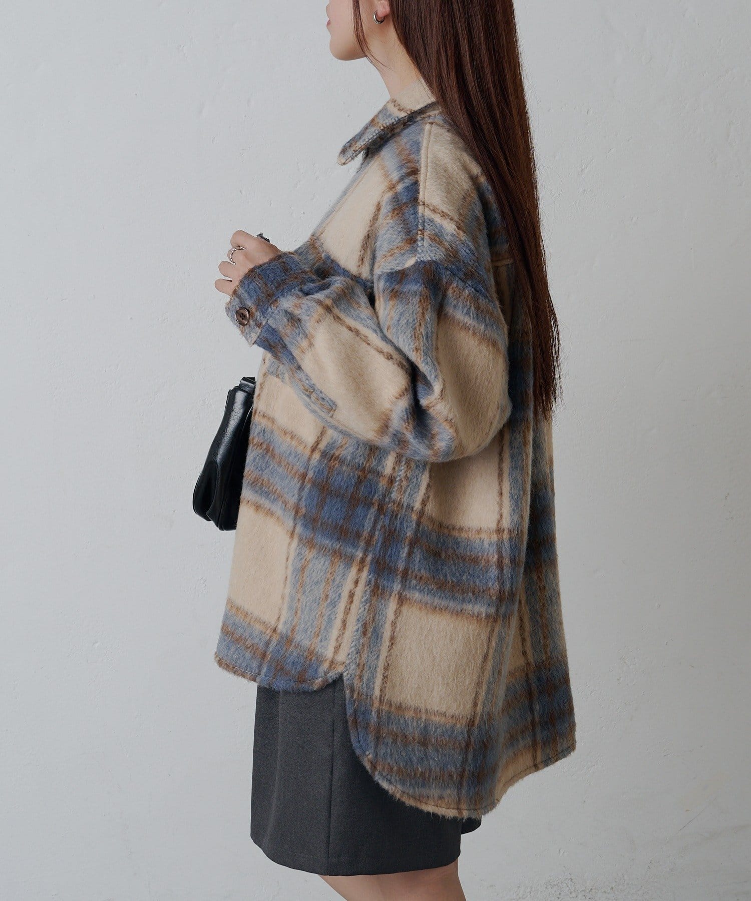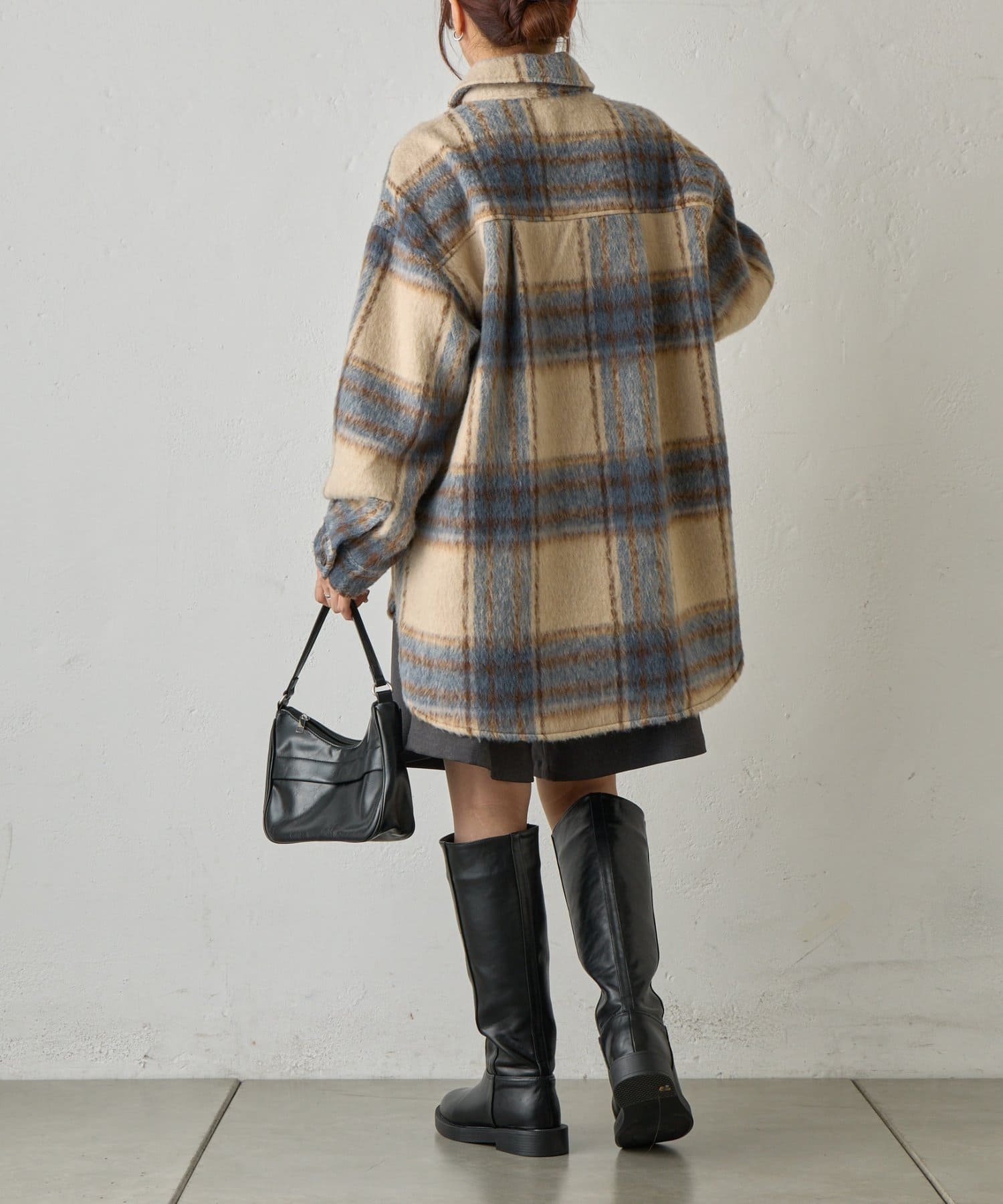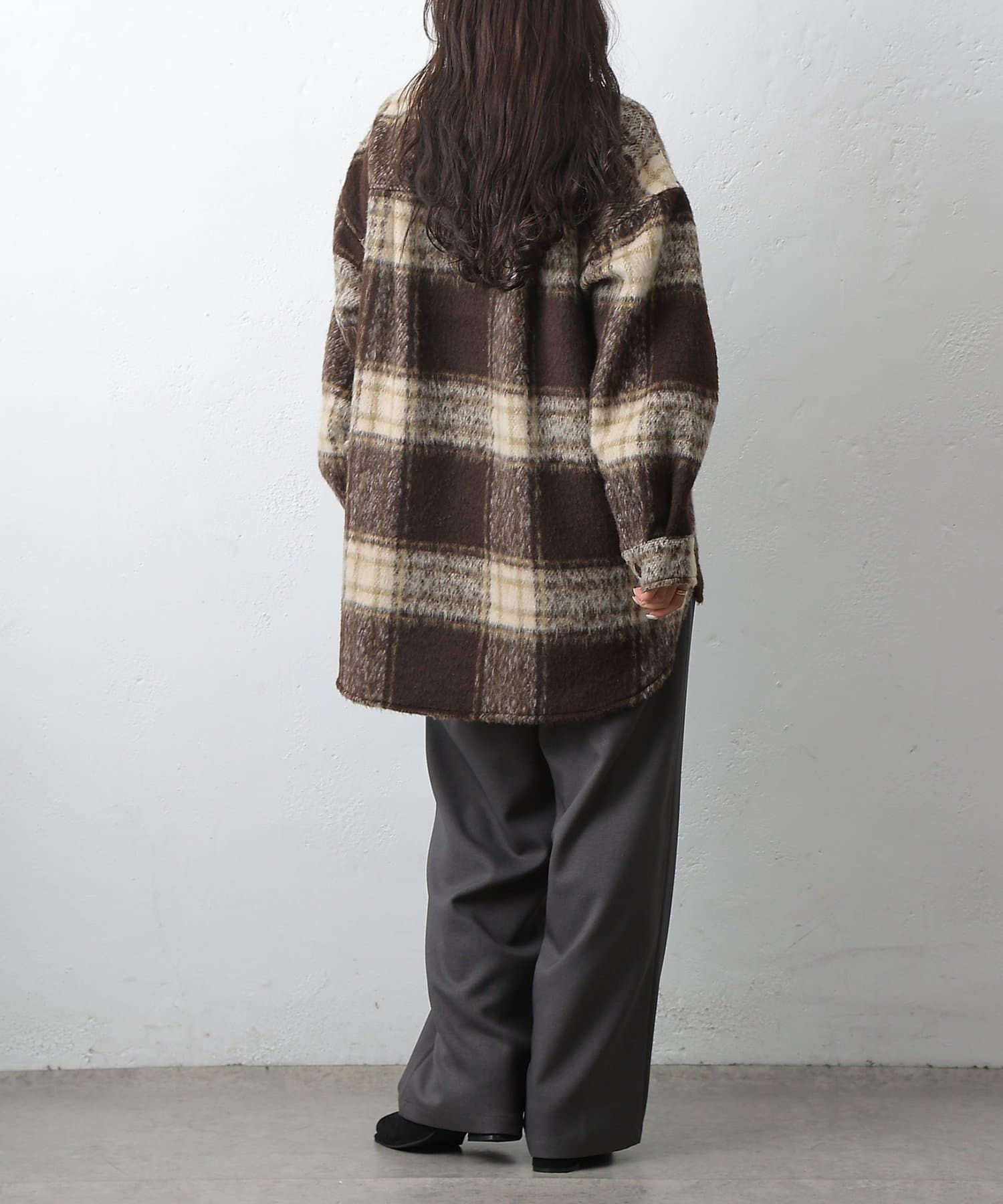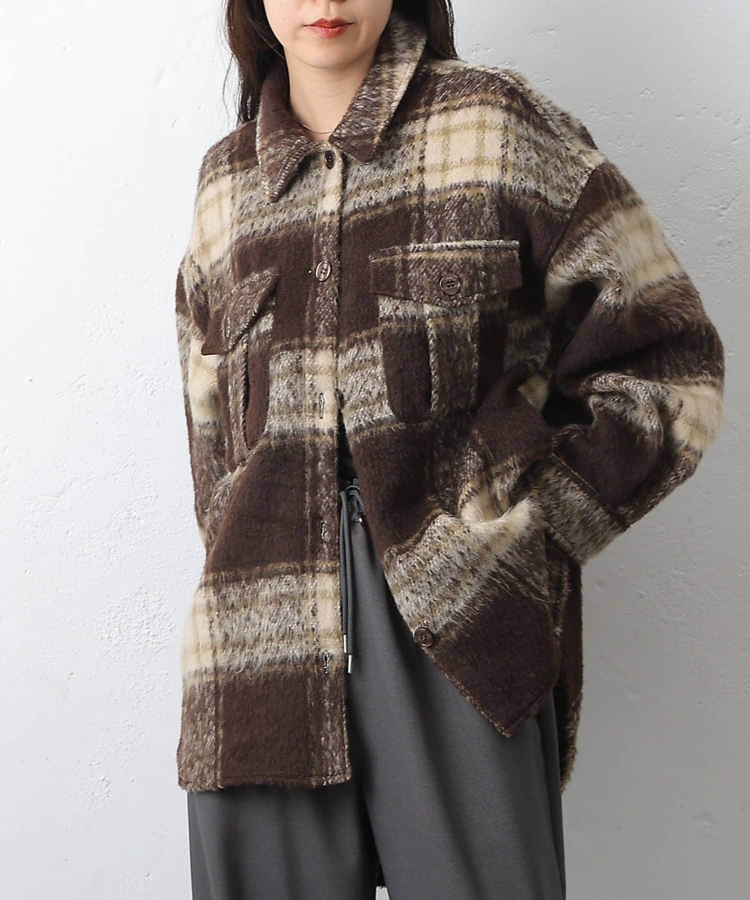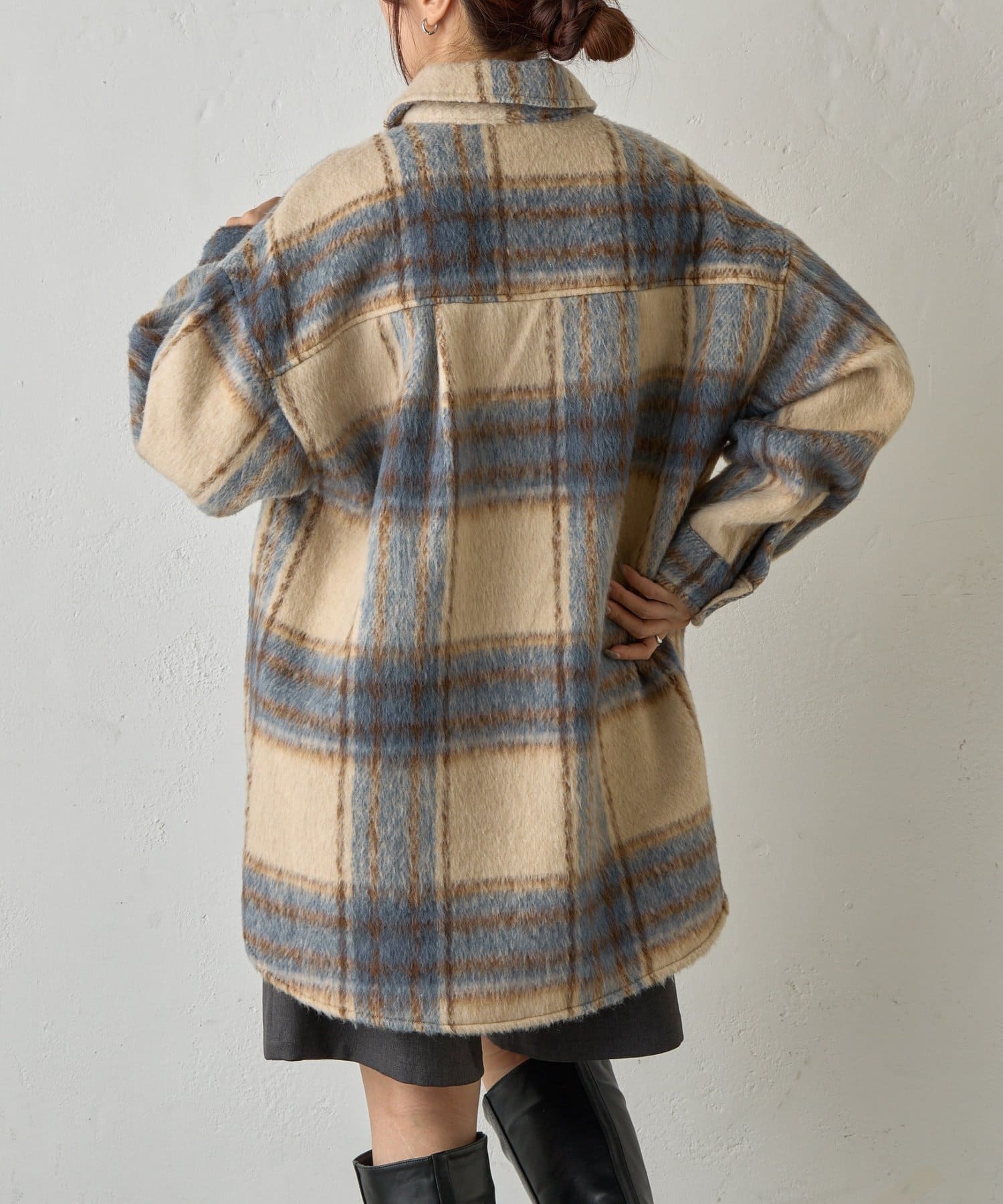 さっと羽織るだけでトレンド感あふれるスタイルが完成するシャギーチェックシャツアウターが登場。