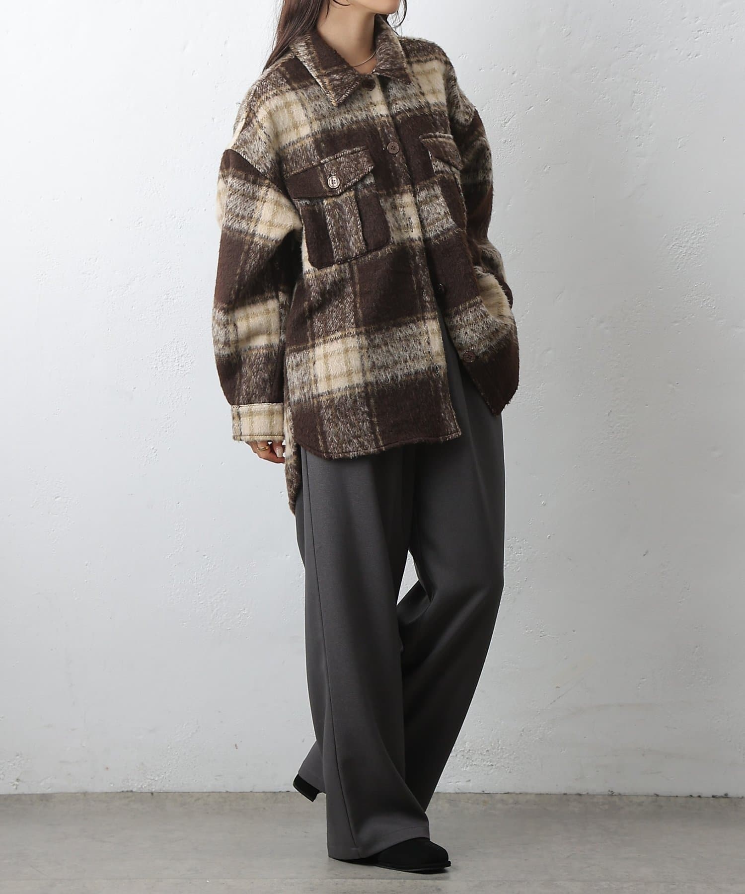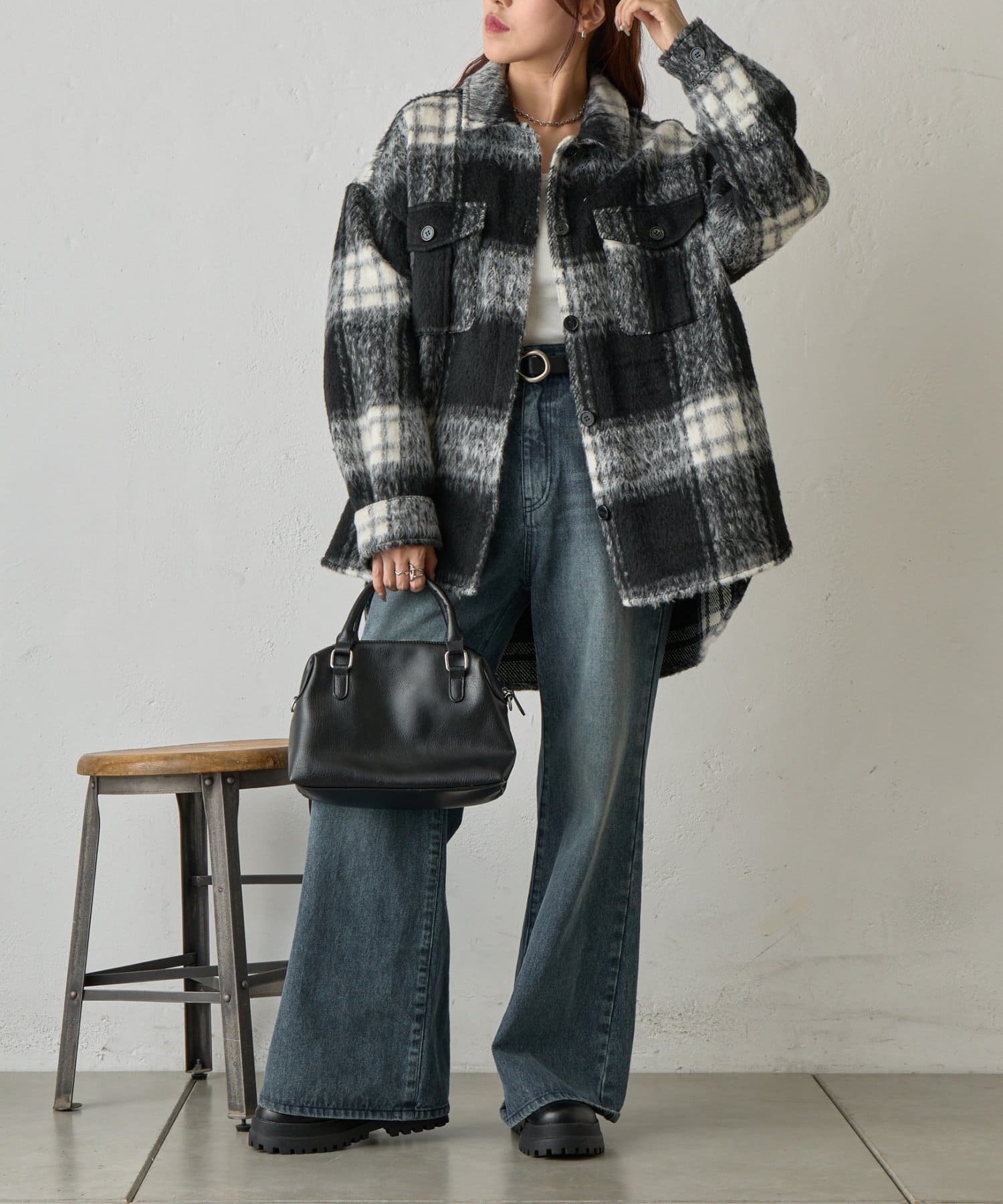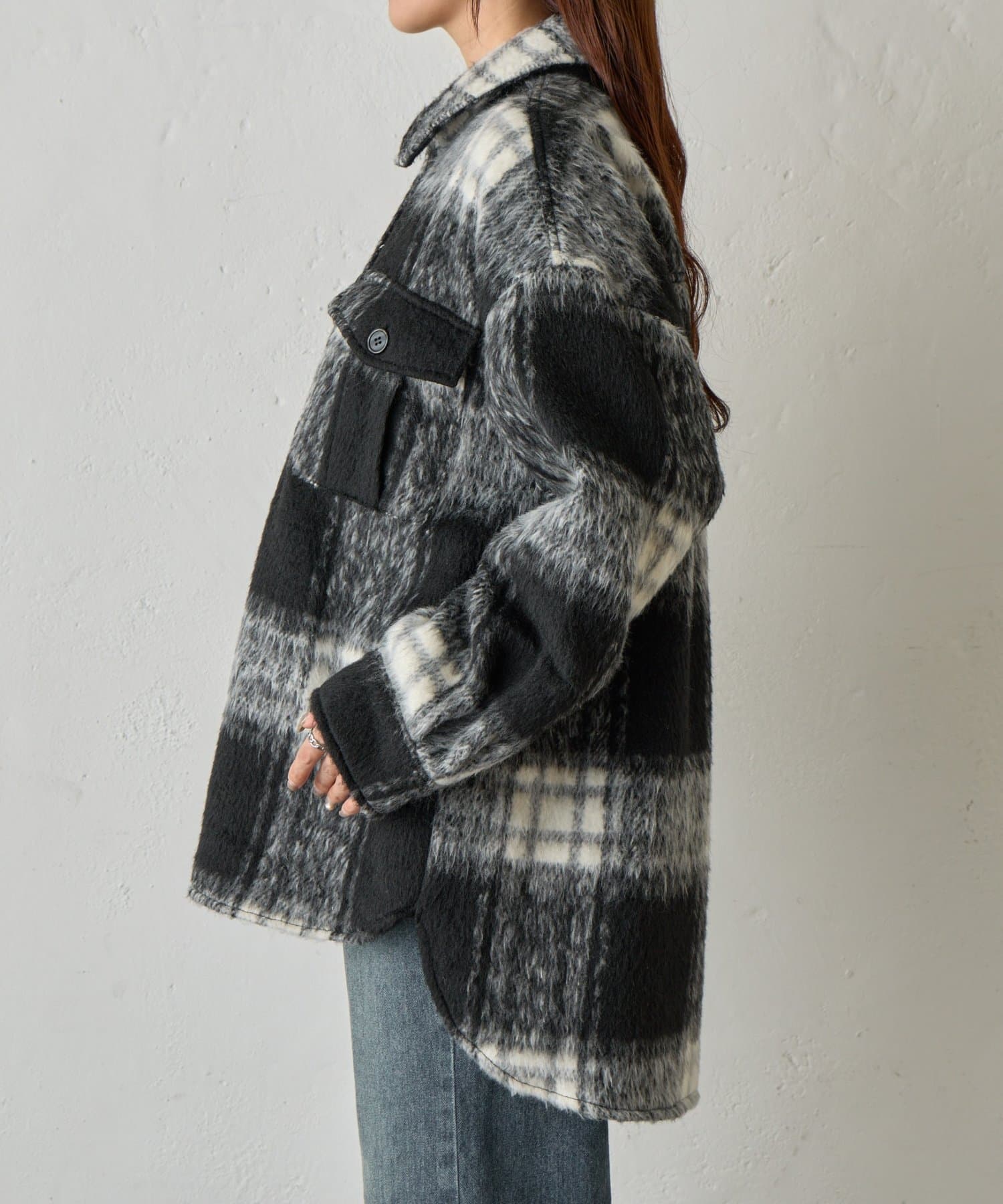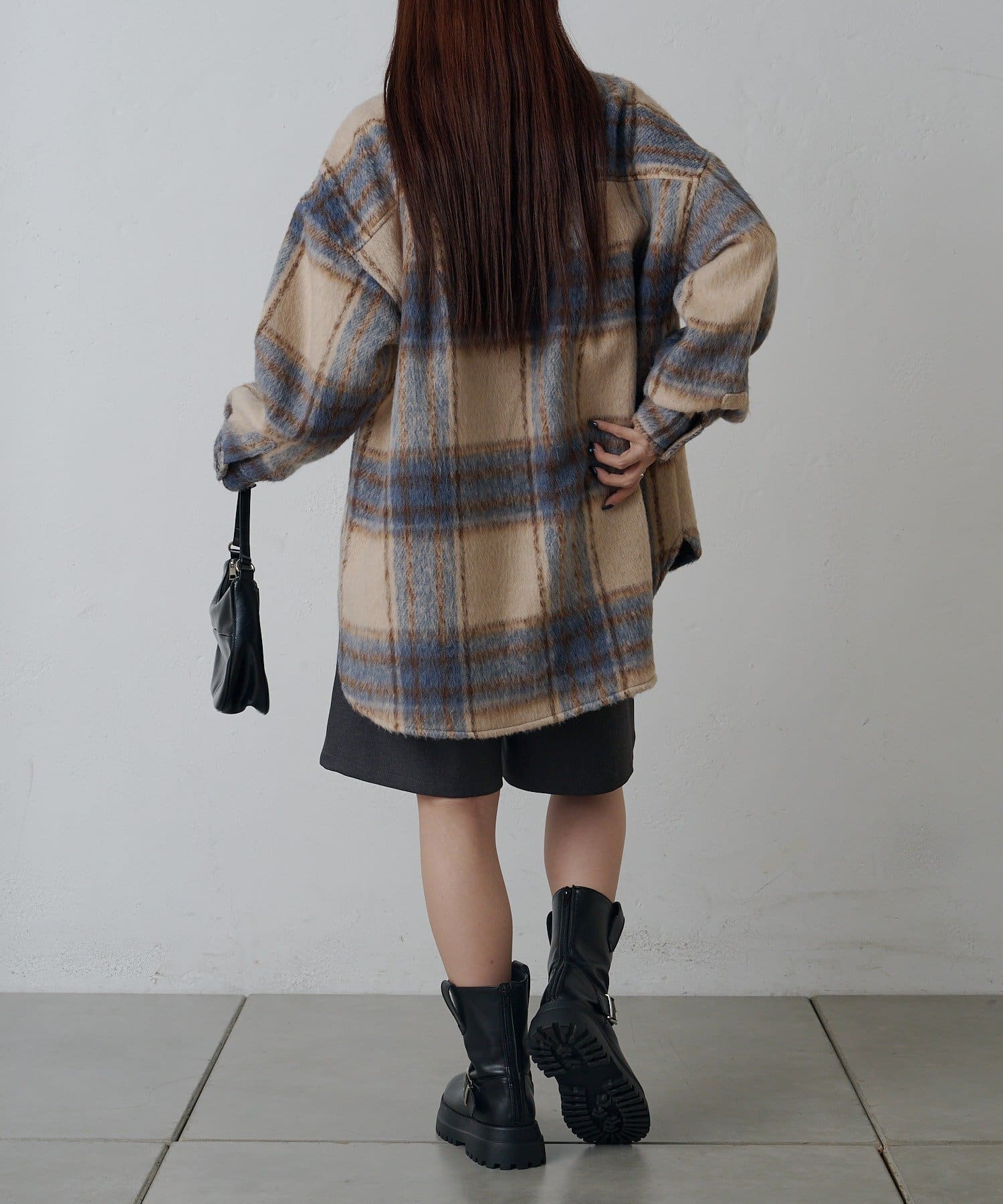 さっと羽織るだけでトレンド感あふれるスタイルが完成するシャギーチェックシャツアウターが登場。