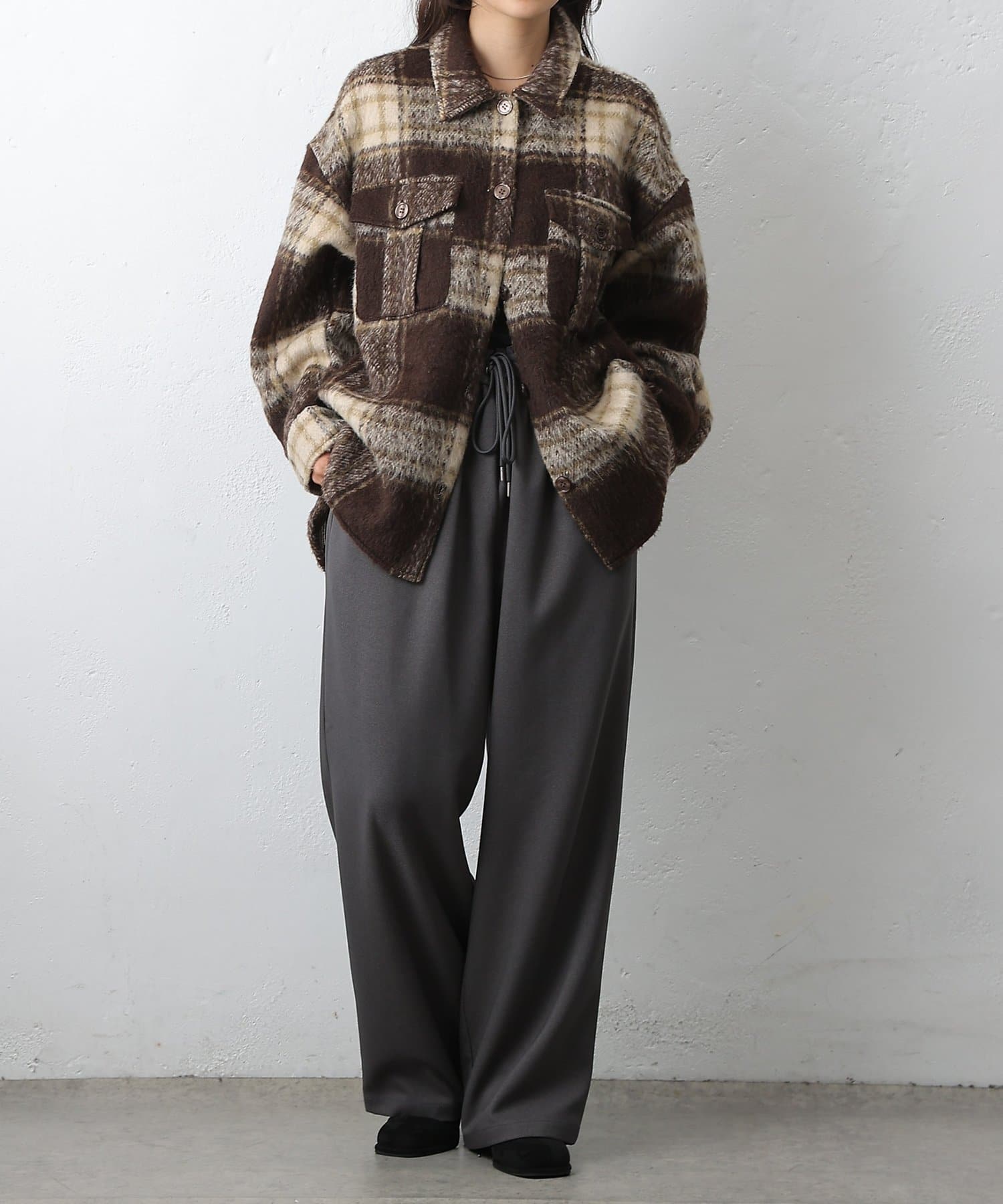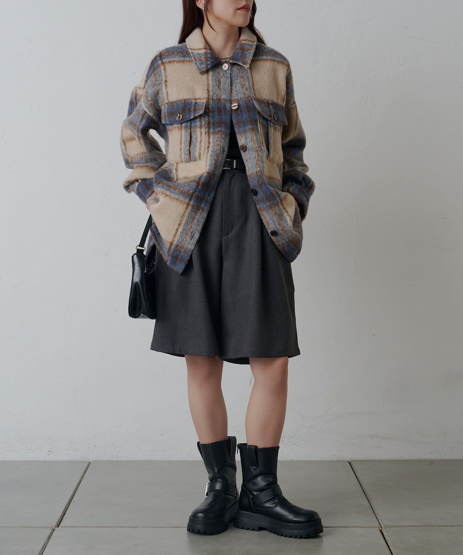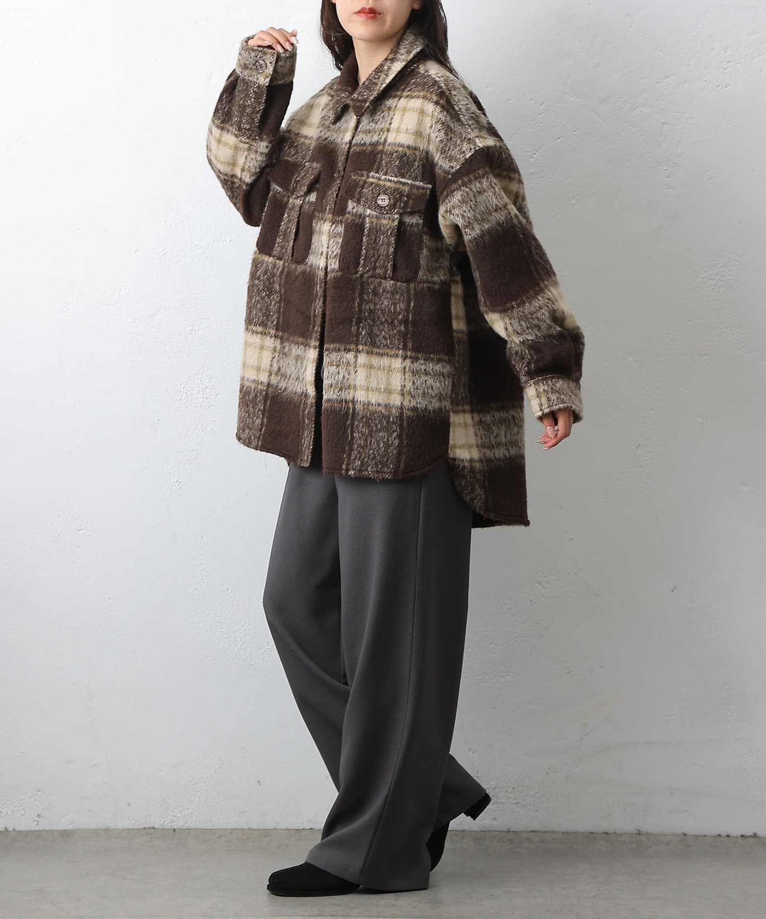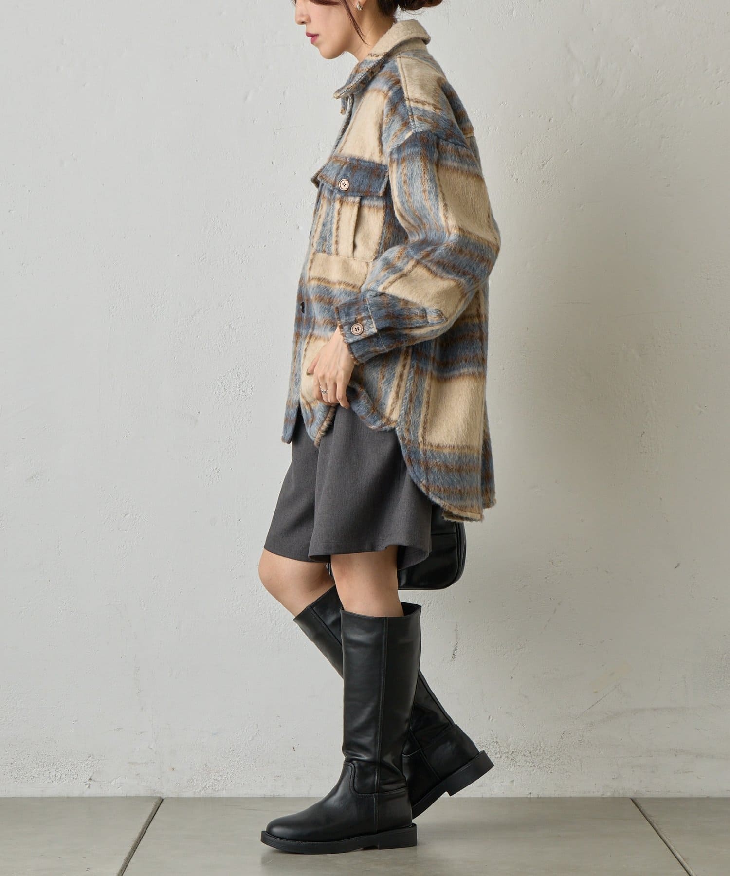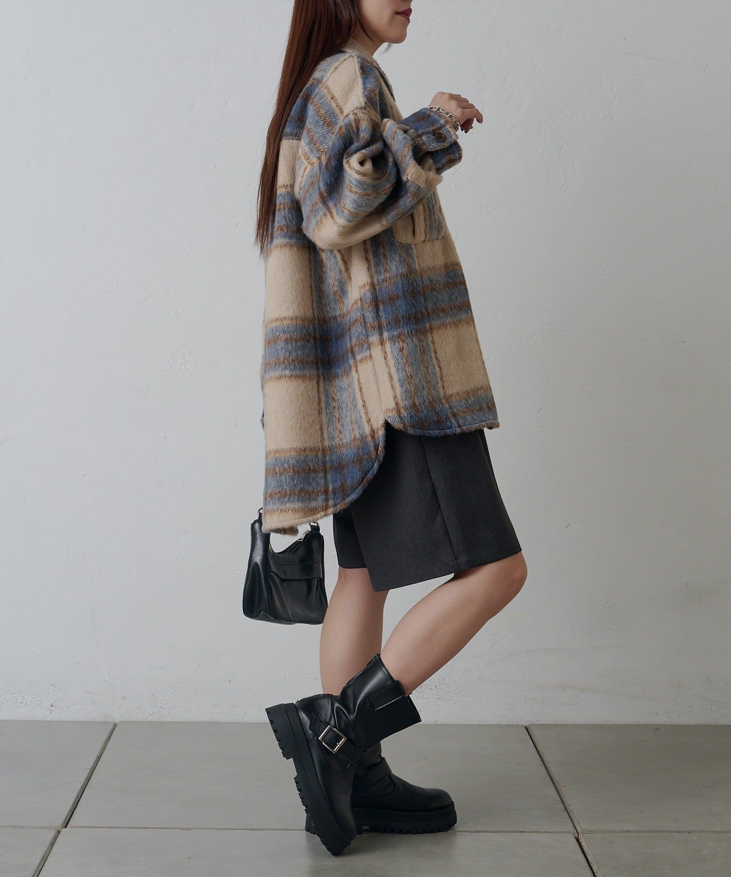 さっと羽織るだけでトレンド感あふれるスタイルが完成するシャギーチェックシャツアウターが登場。