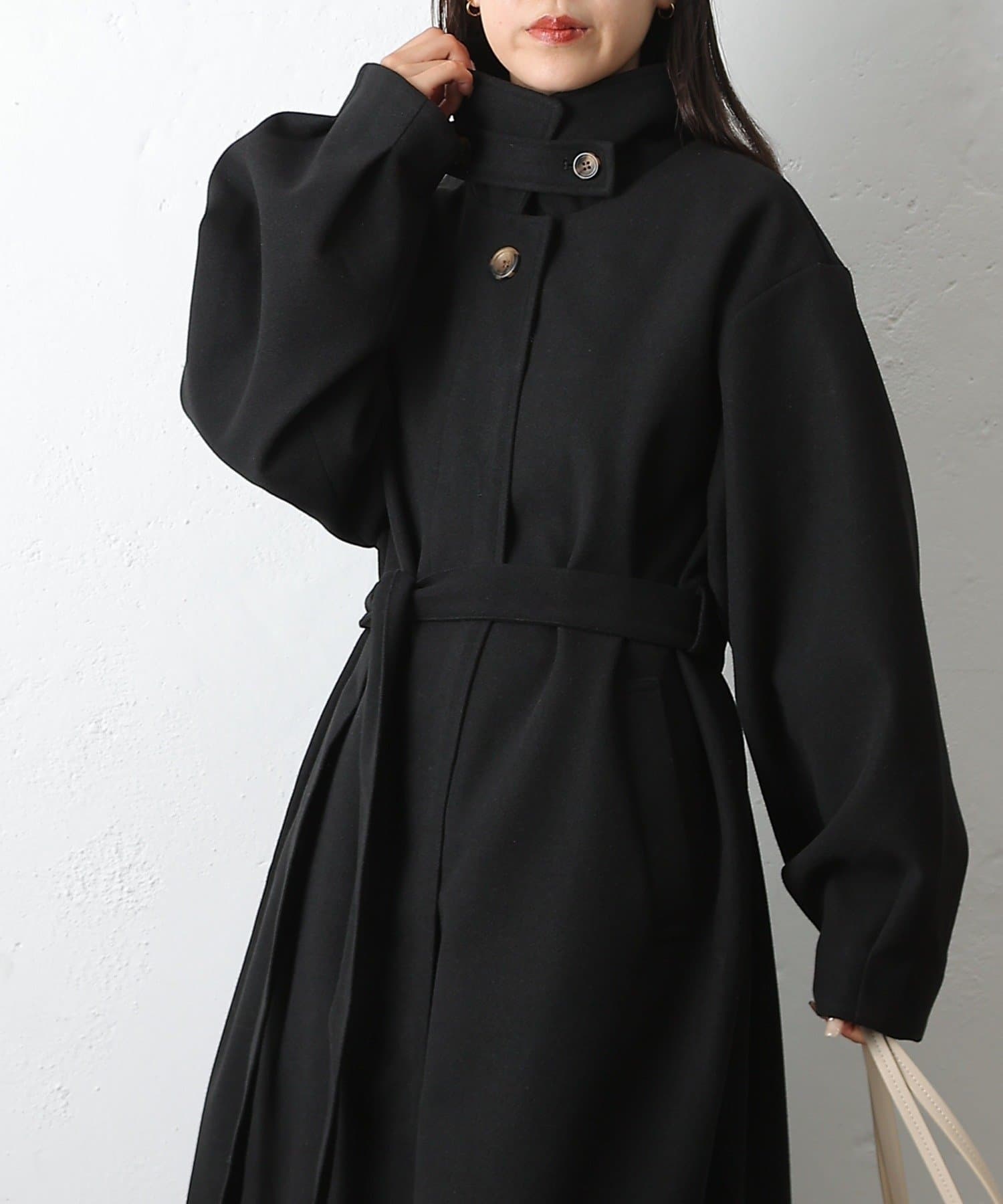 ボリュームのある袖が特徴のベルト付ボリューム袖ステンカラーコートです。