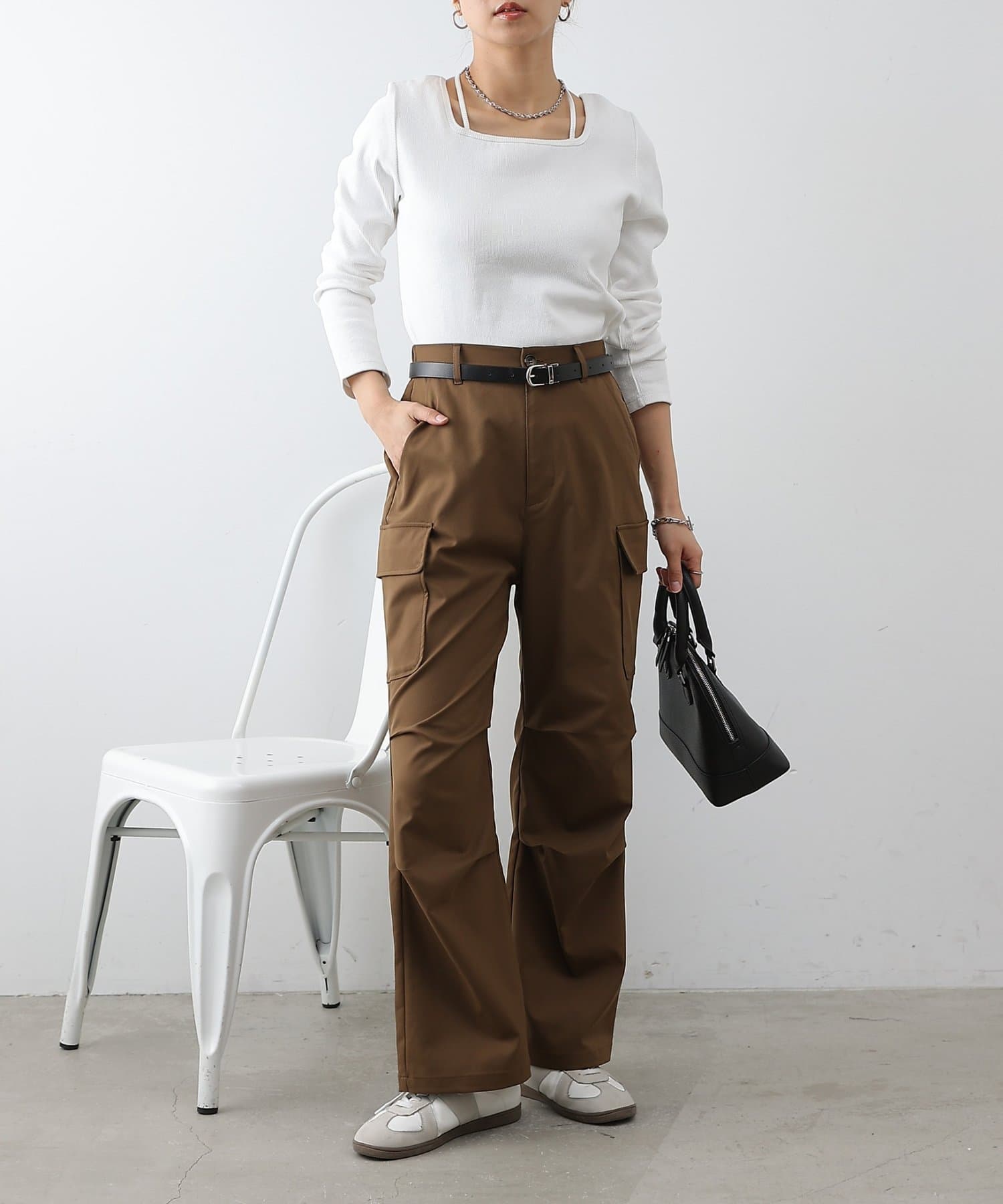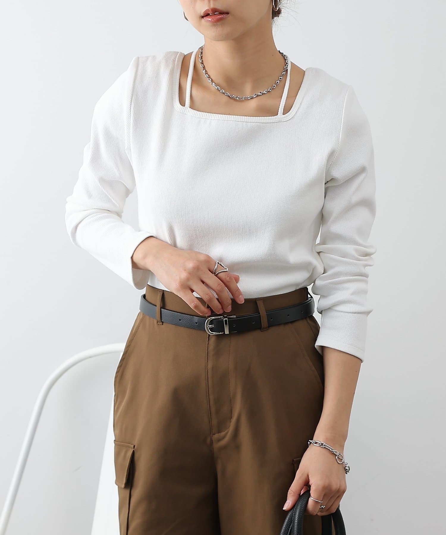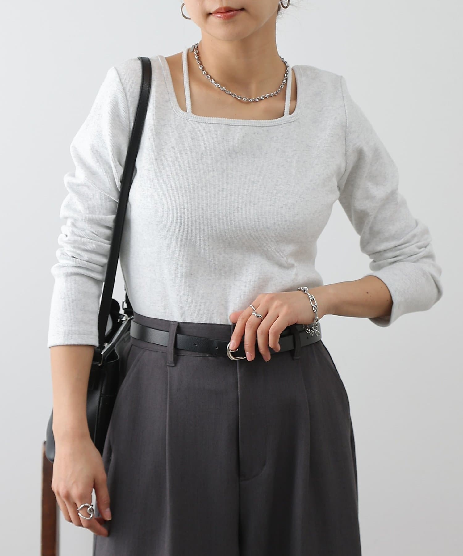 また、スクエアネックデザインなので顔周りがすっきりして見えるのもポイントです。