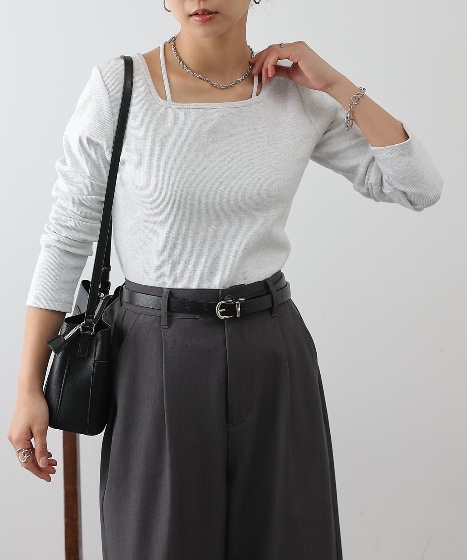 【細リブ×スクエアネックで細見え効果抜群のアイテム】
