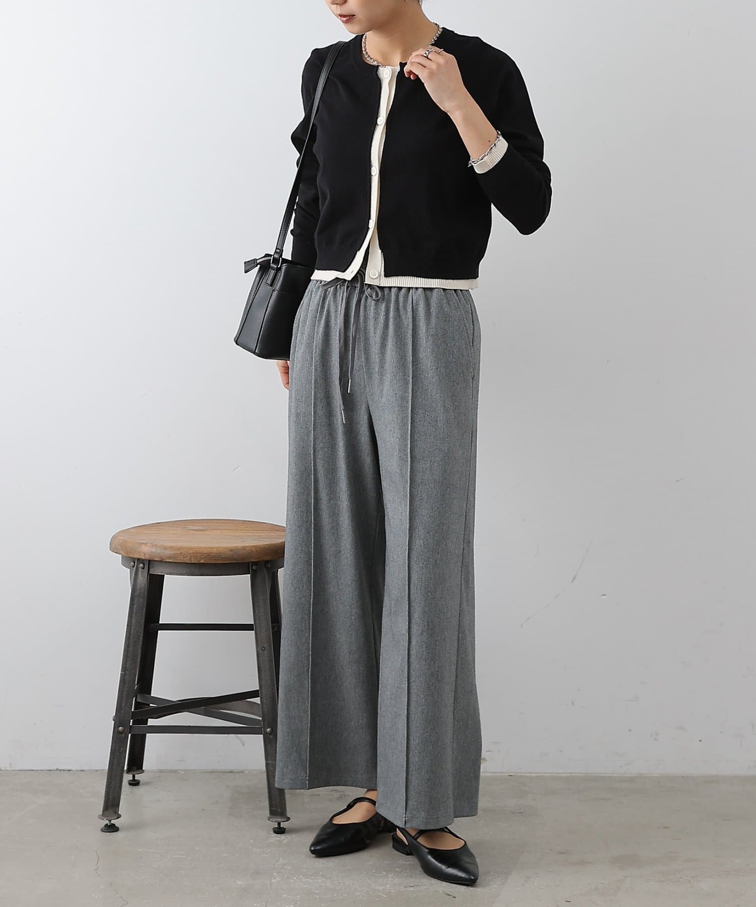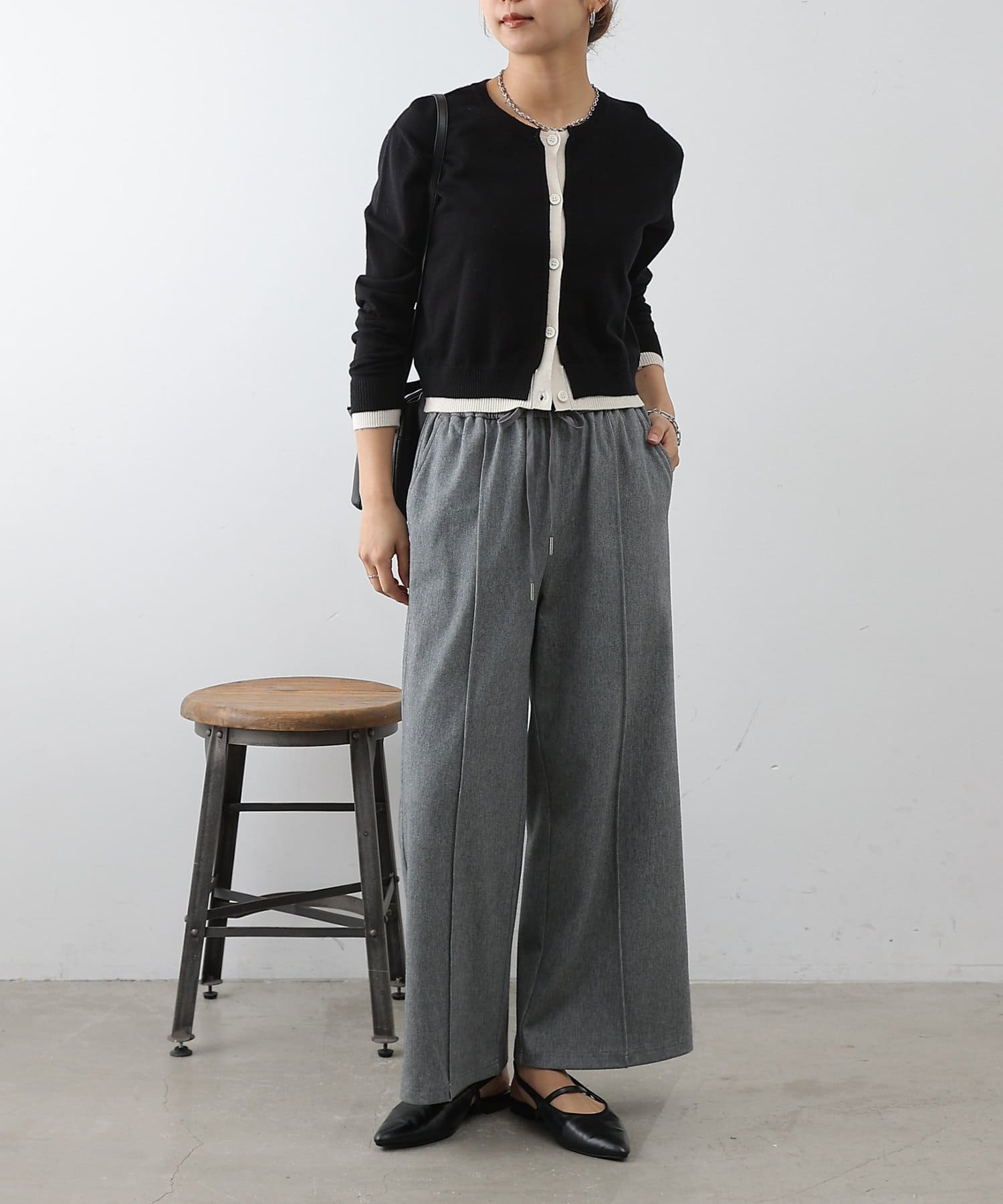 伸縮性に優れた生地感を使用したワイドパンツです。