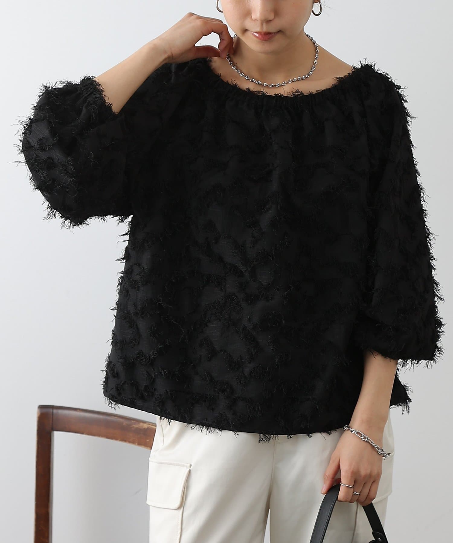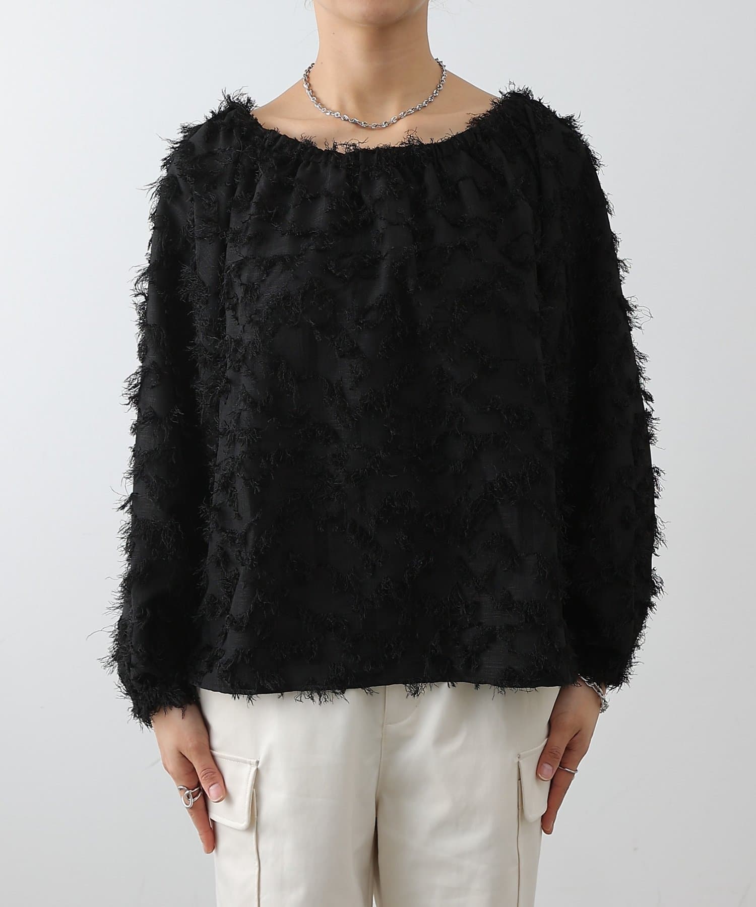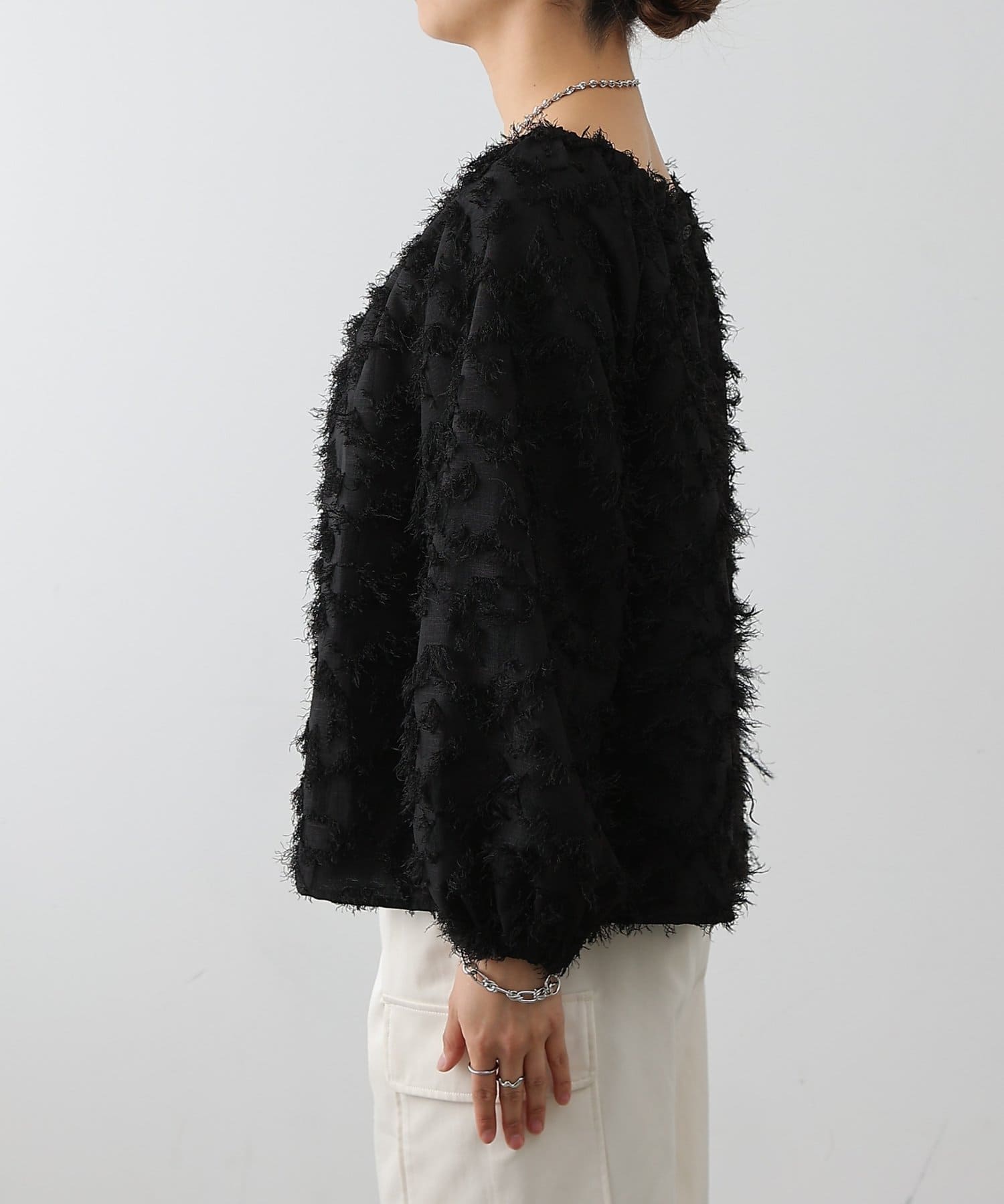 こなれ感たっぷりのフリンジ素材を使用したブラウスです。