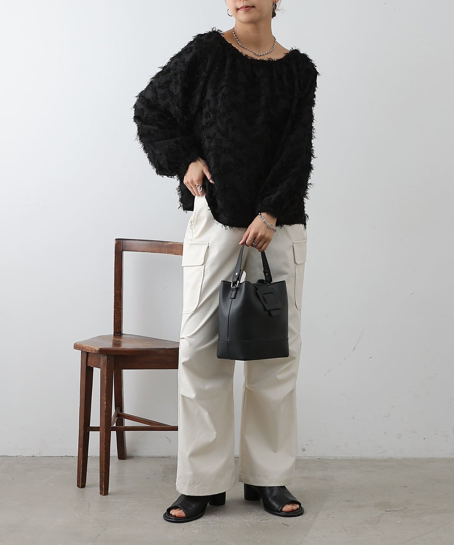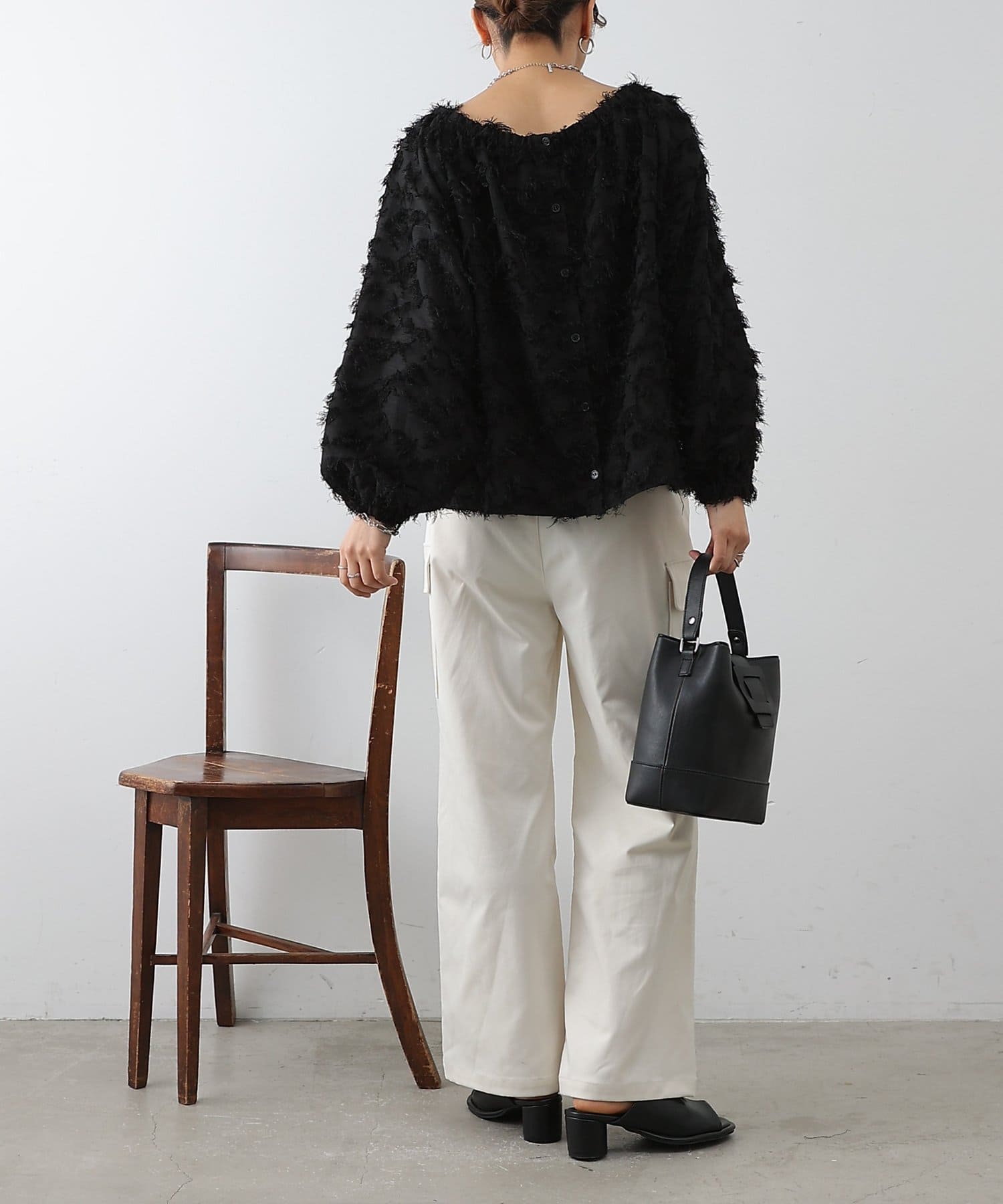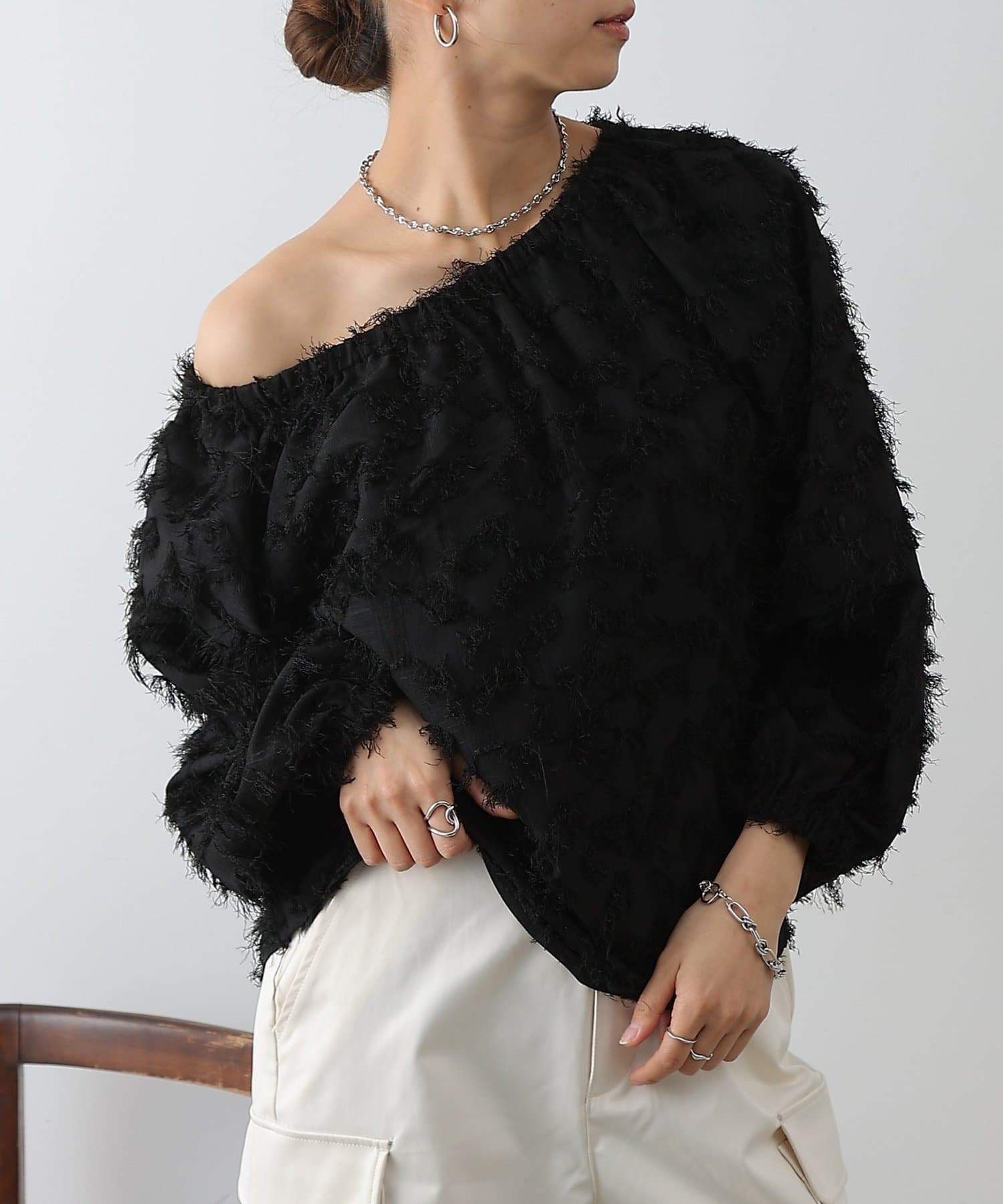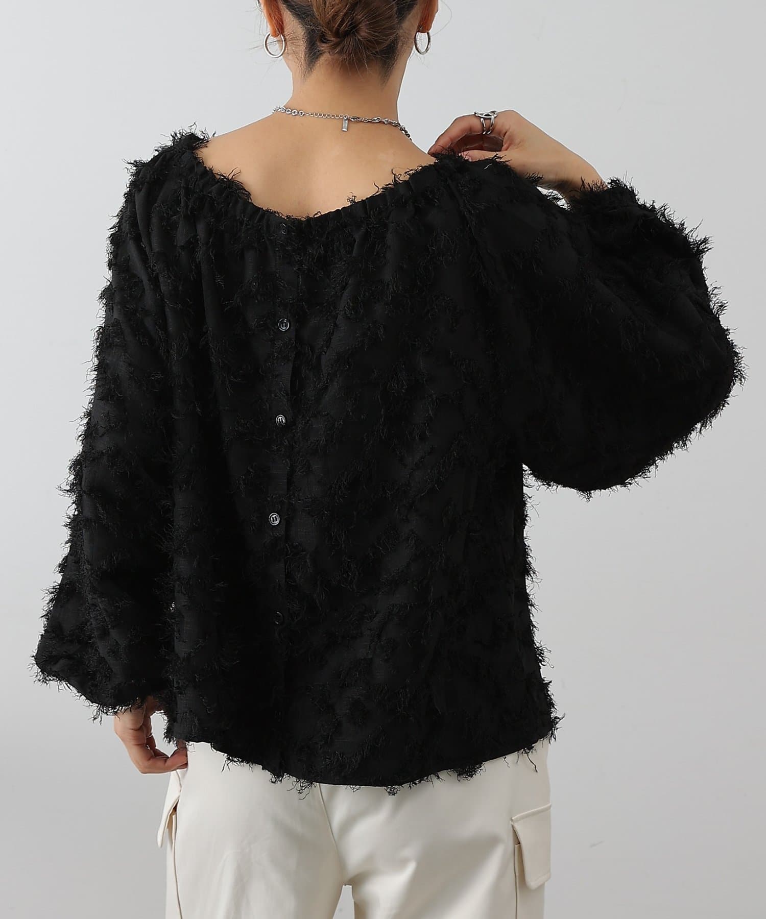 こなれ感たっぷりのフリンジ素材を使用したブラウスです。
