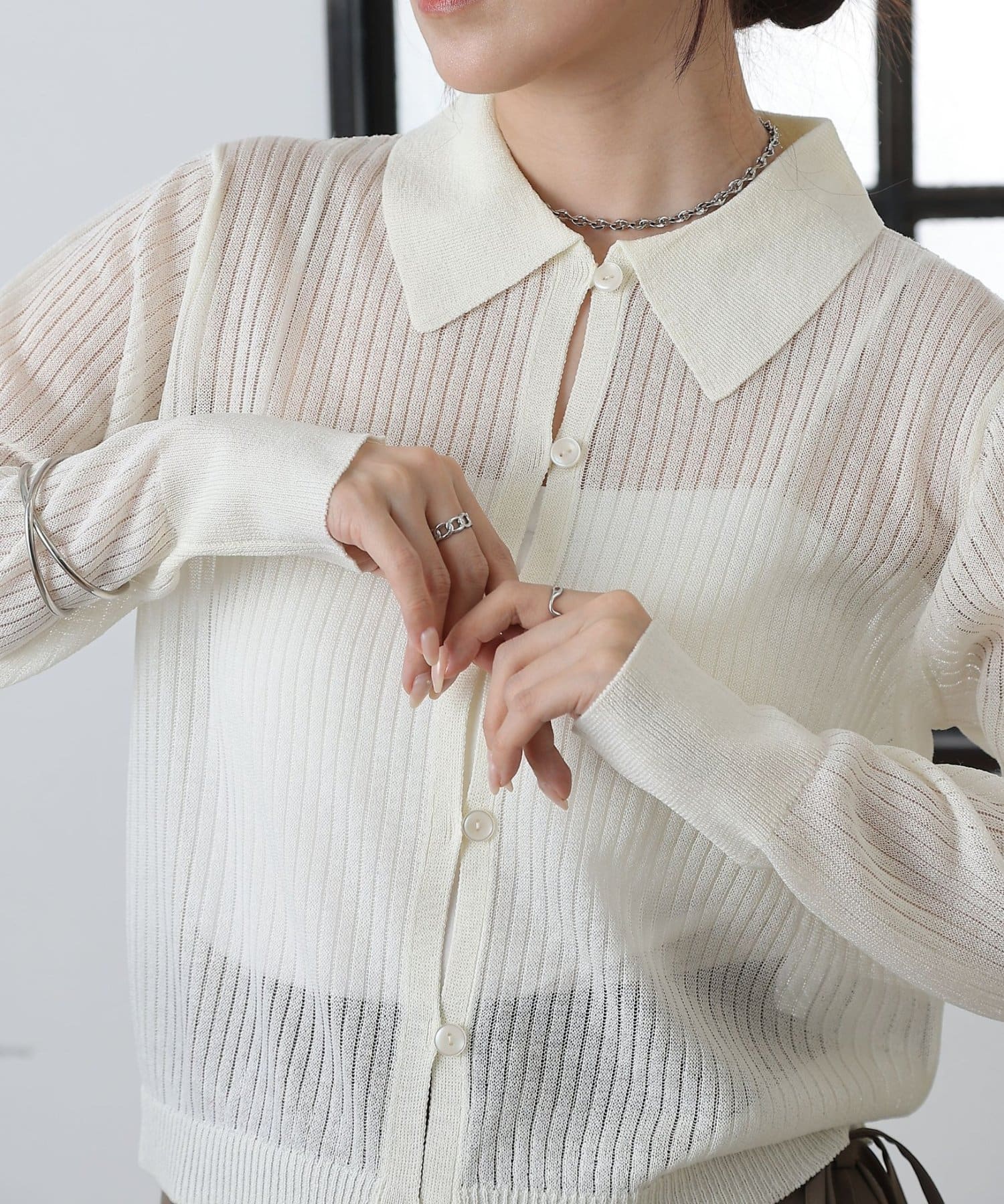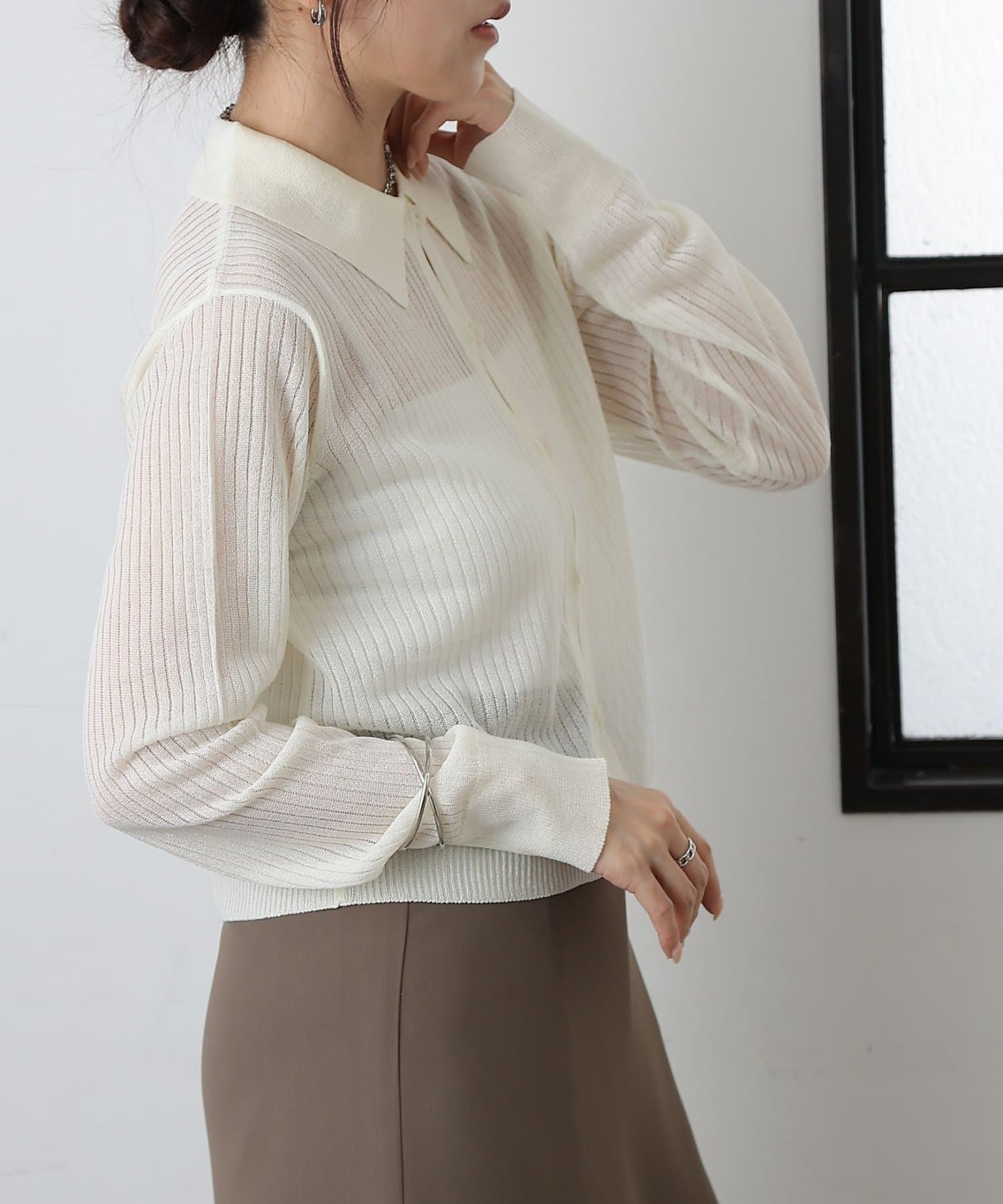 【縦リブで細見え効果大◎なループボタン衿付きカーディガン】