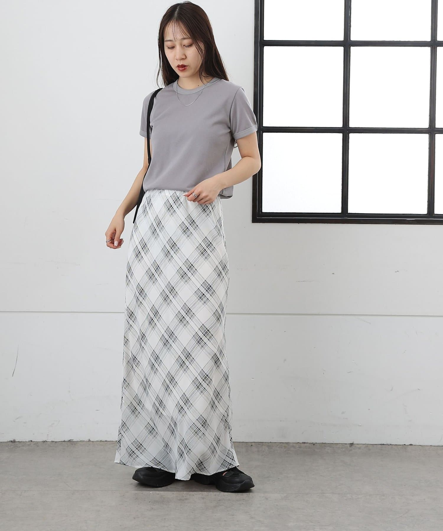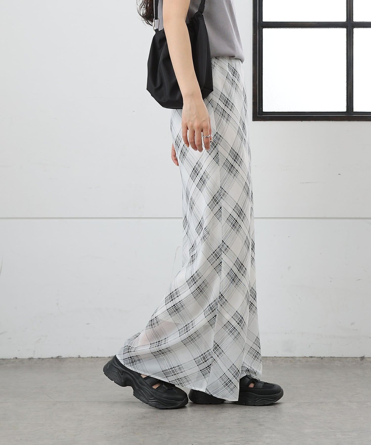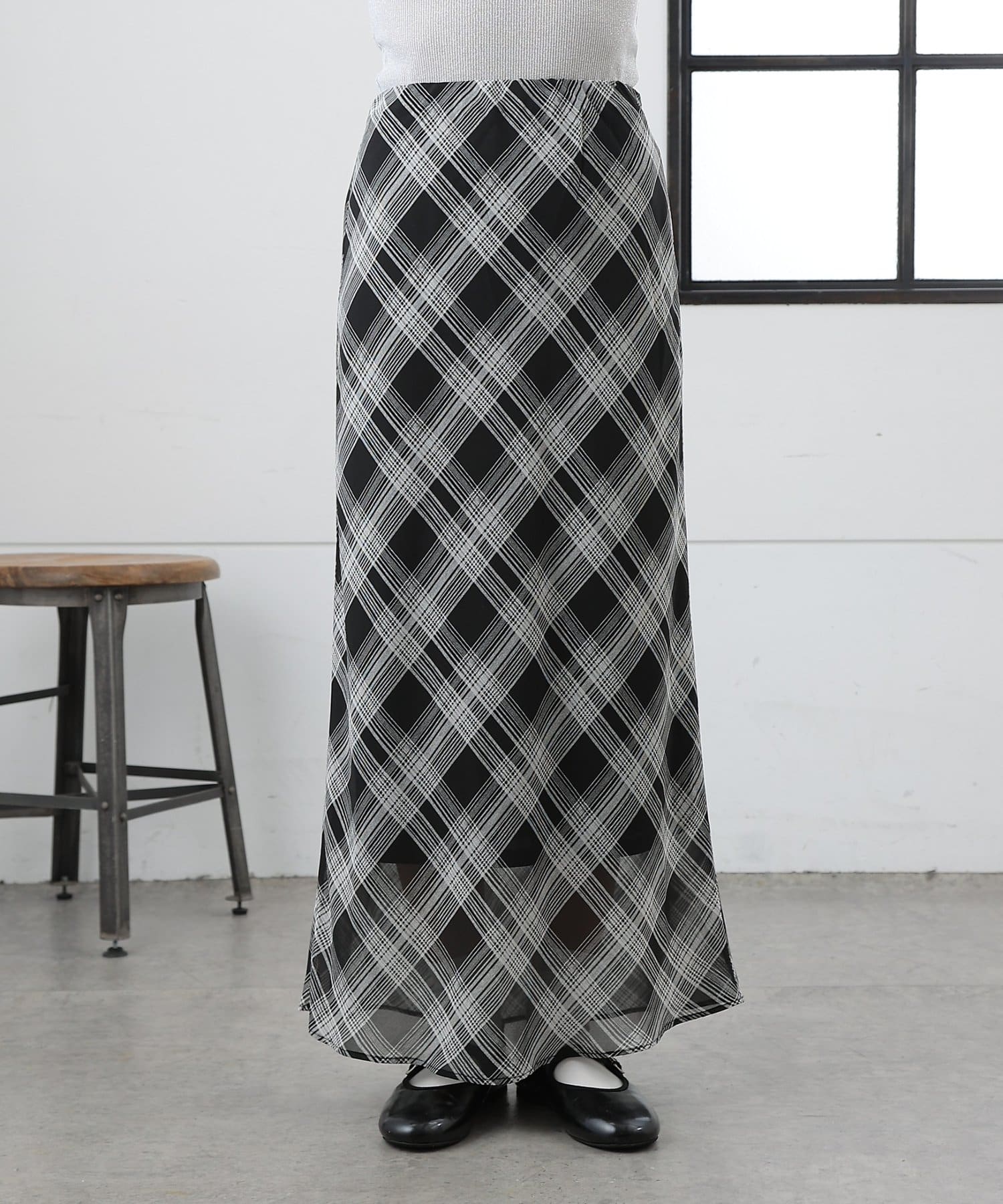 【トレンドシルエットで合わせに困らないシアーチェックスカート】