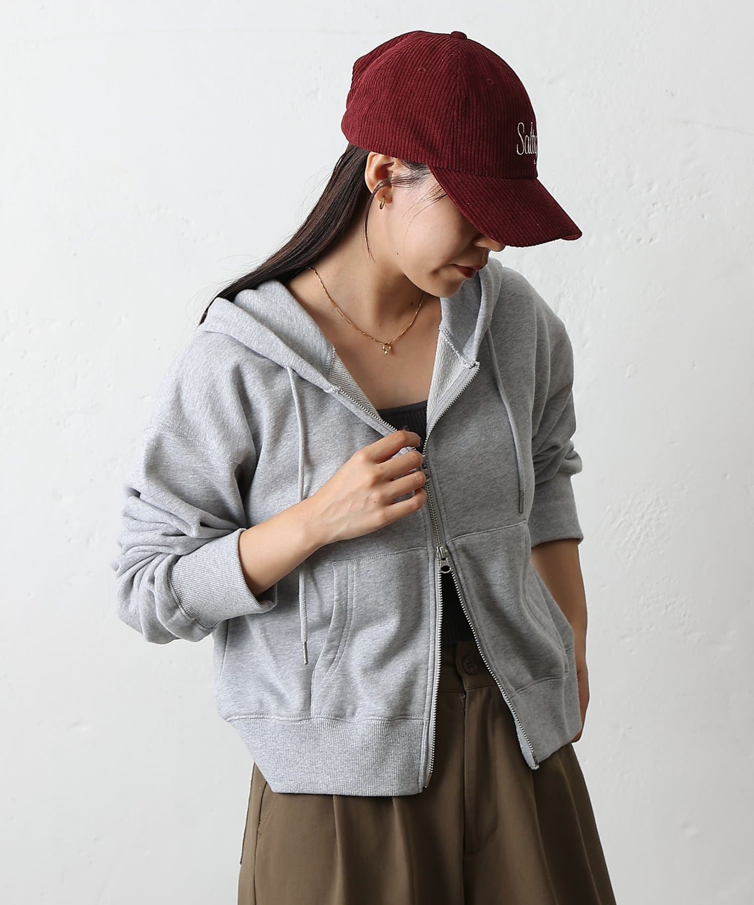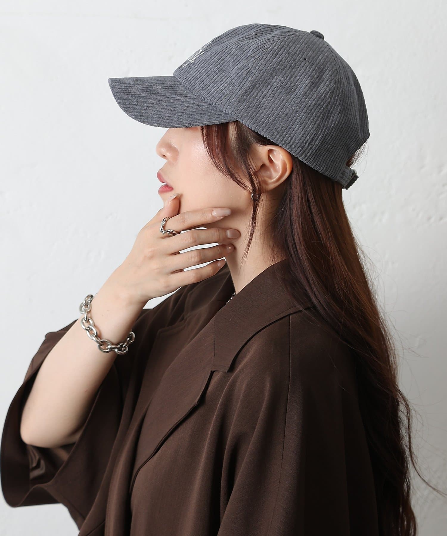コーデュロイ刺繍キャップ