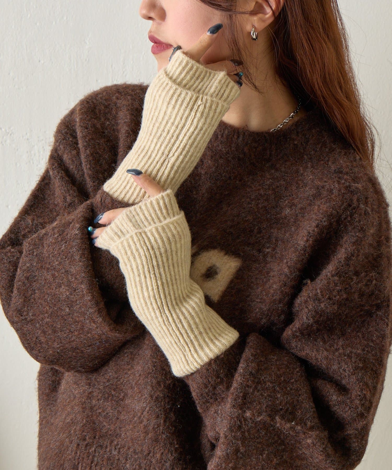 上品なリブ編みのデザインは、指先までしっかり暖かいのにすっきり見え◎