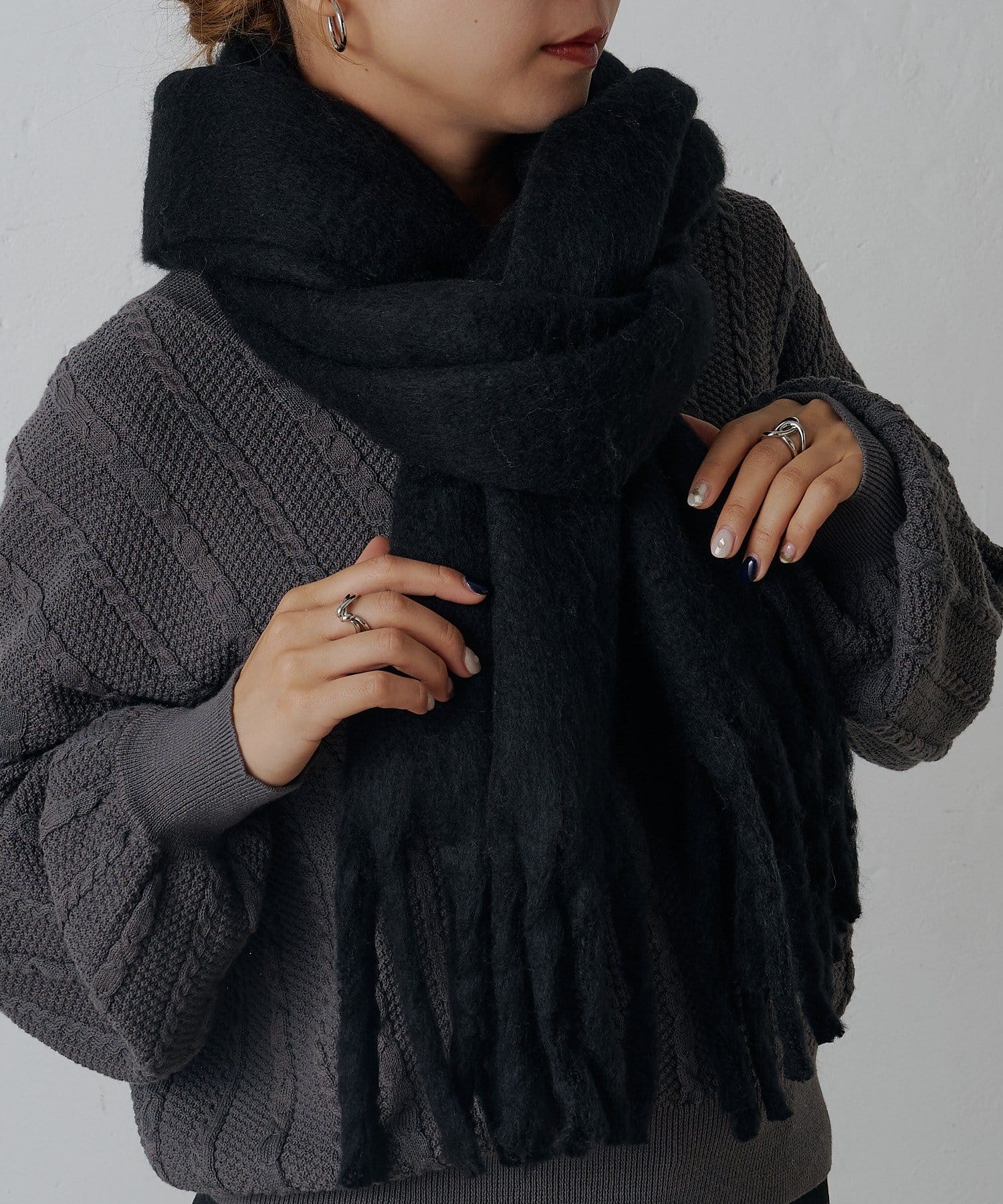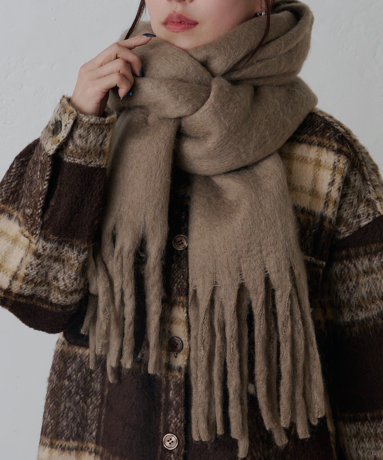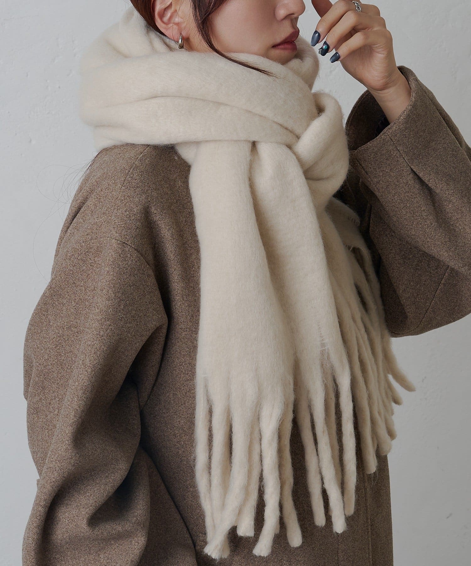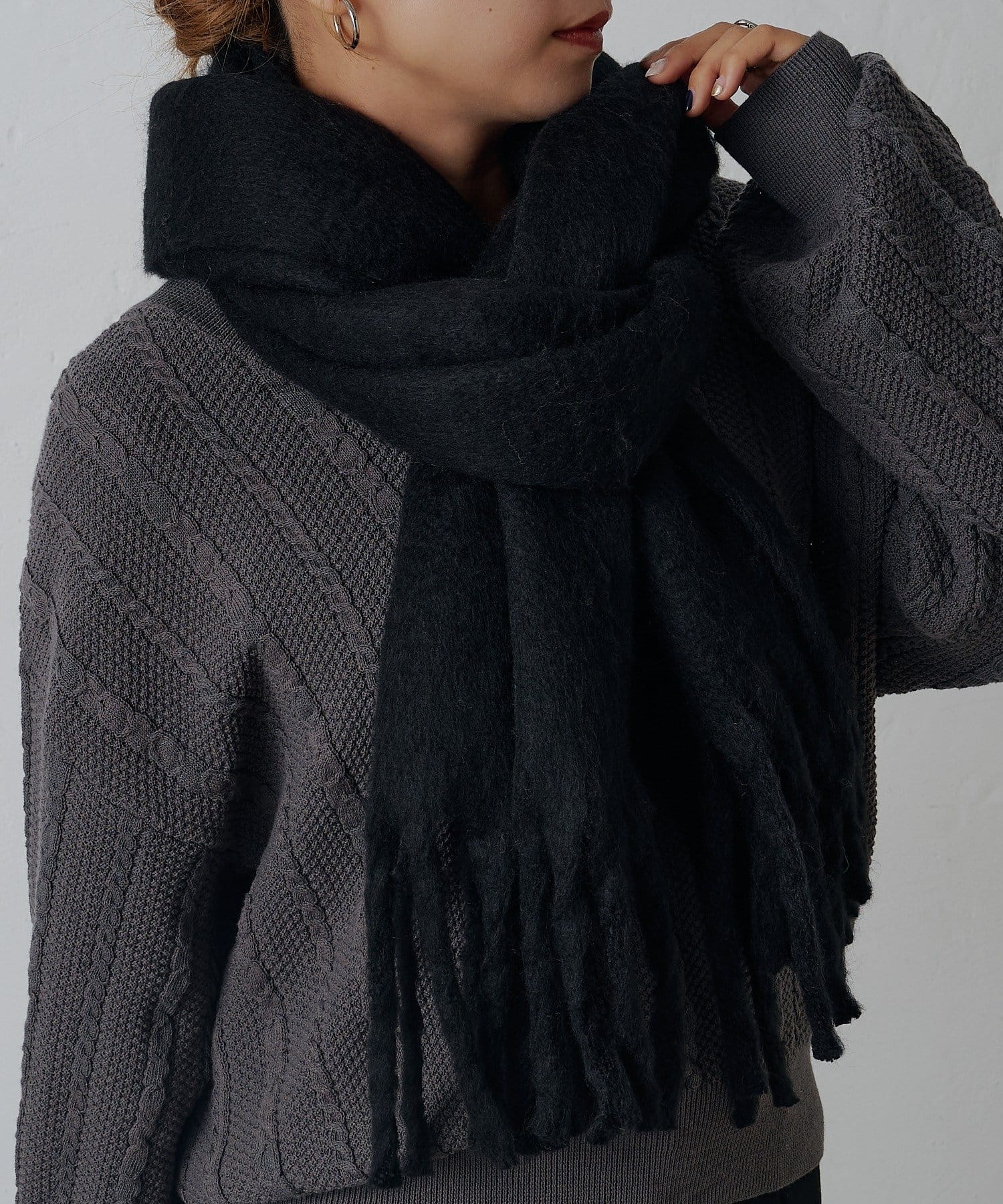モヘア風の柔らかくボリューム感のある起毛素材で保温性もしっかりしています。