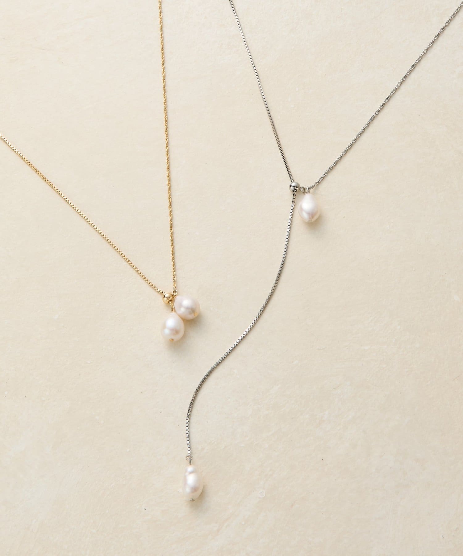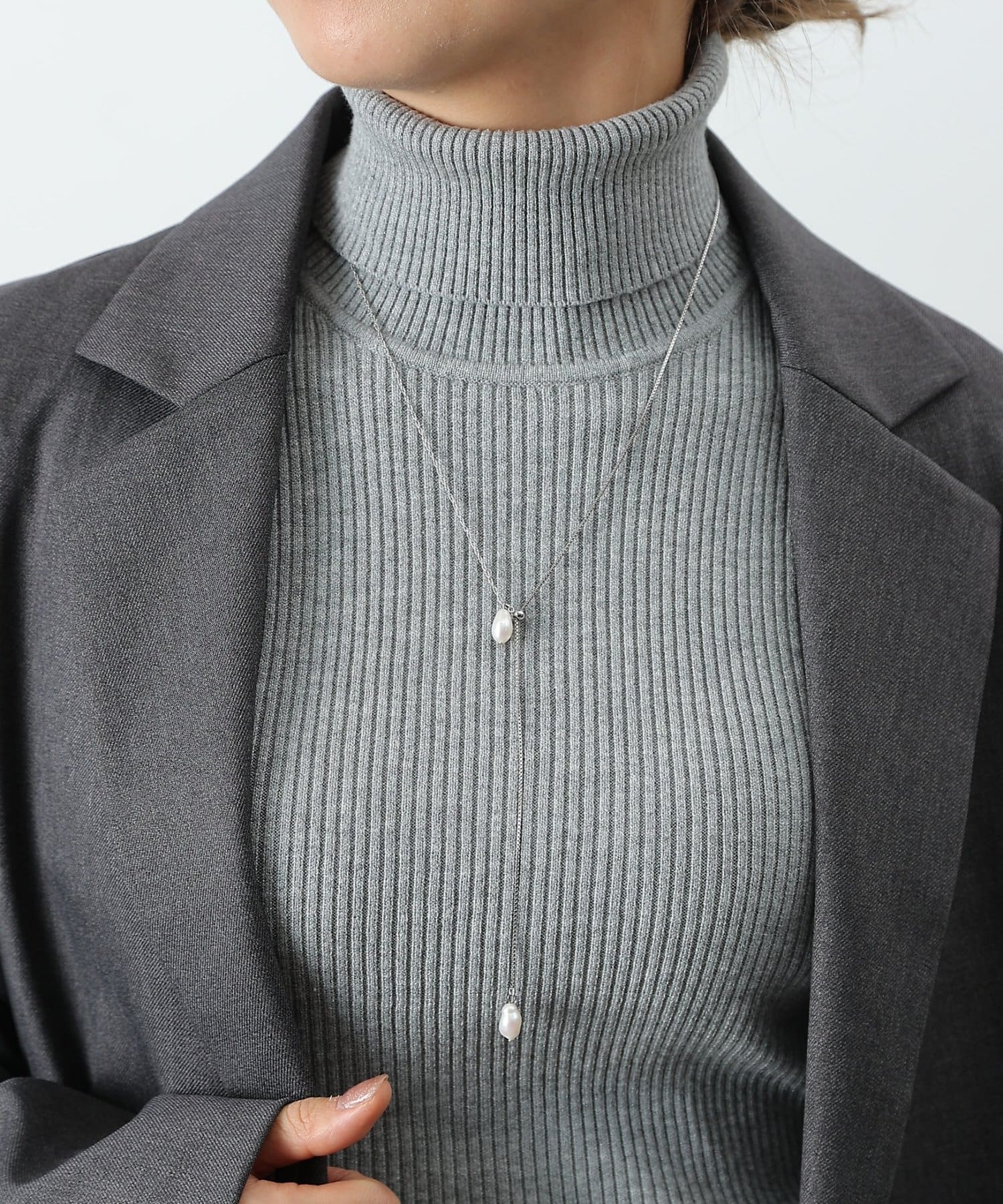 スライド仕様のチェーンは長さ調節が自由で、ワントップでパールの存在感を際立たせたり、Y字シルエットなどその日の気分やコーディネートに合わせてアレンジ可能です。
