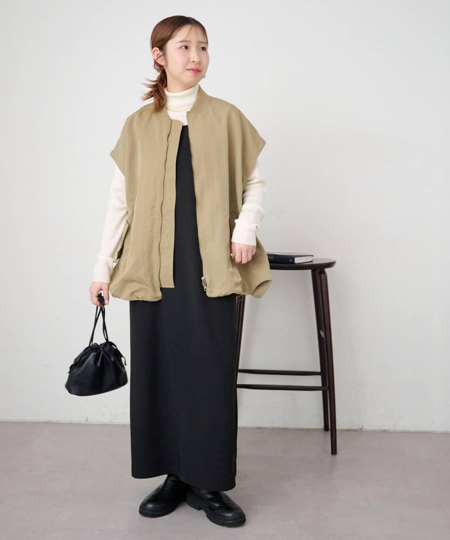 152cmレディーススタッフ:軽い着心地なので、小柄でも気負わず羽織れるのが嬉しいです。裾を絞ることで丸みのあるシルエットになり、女性らしい印象で着用できました。