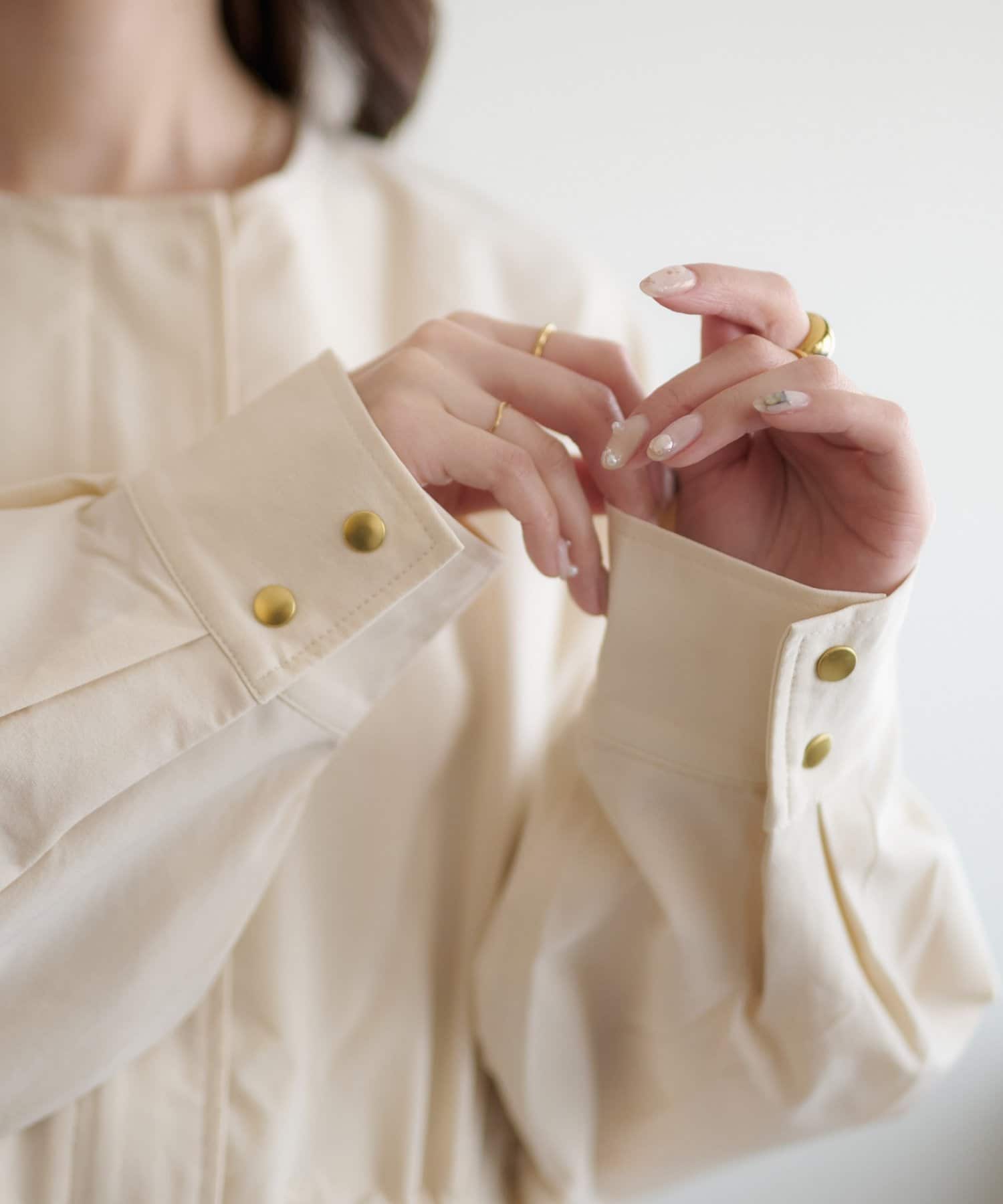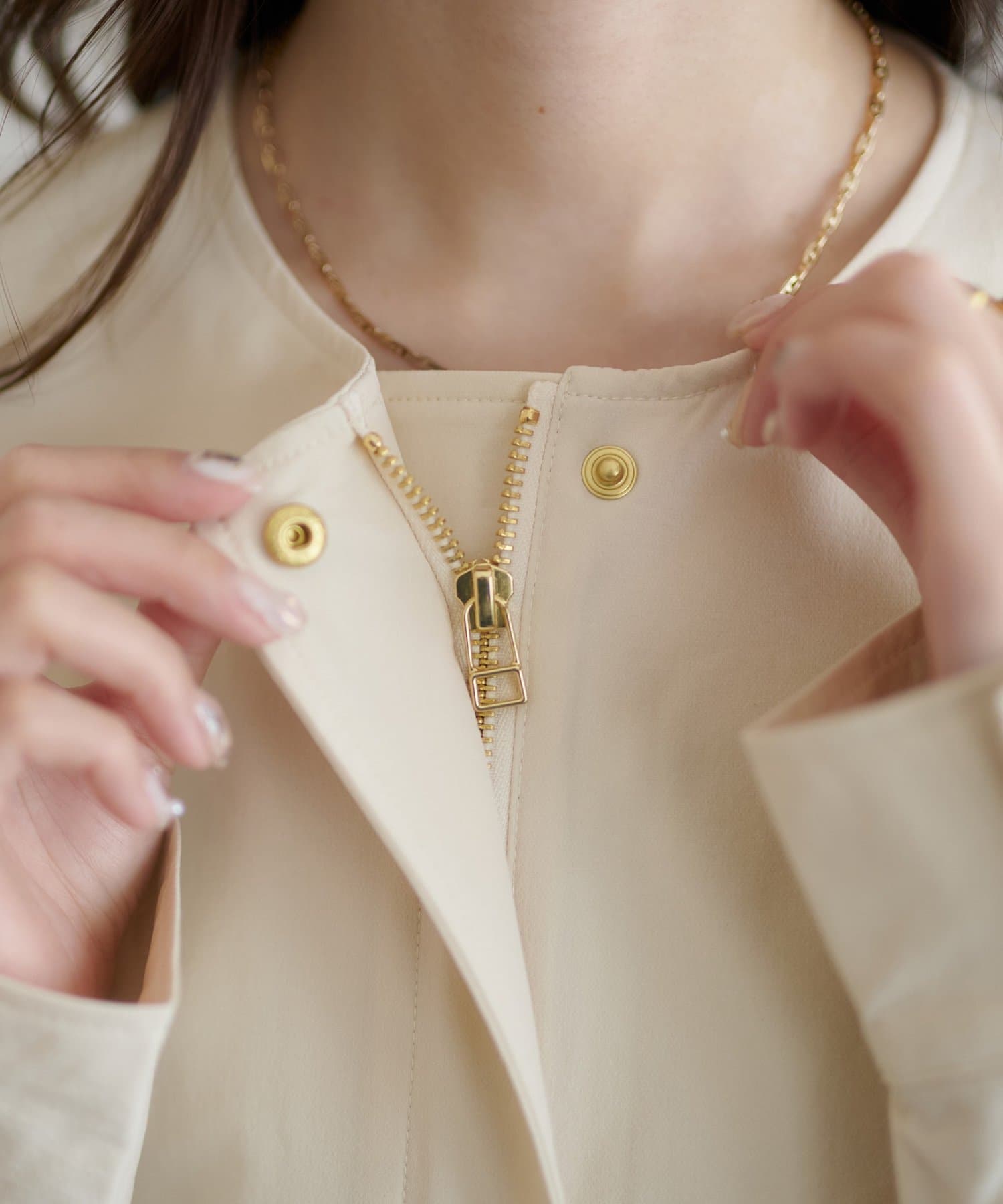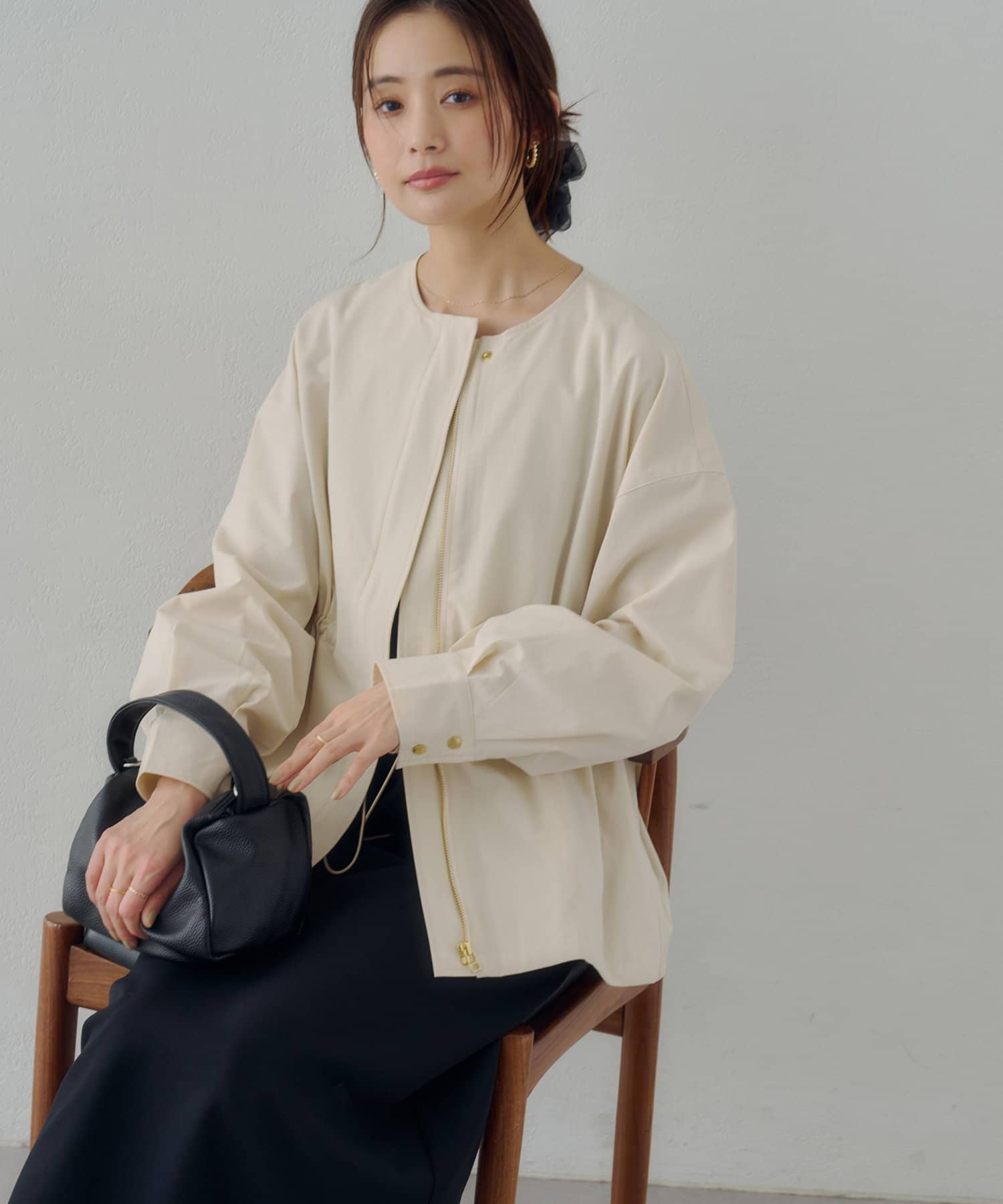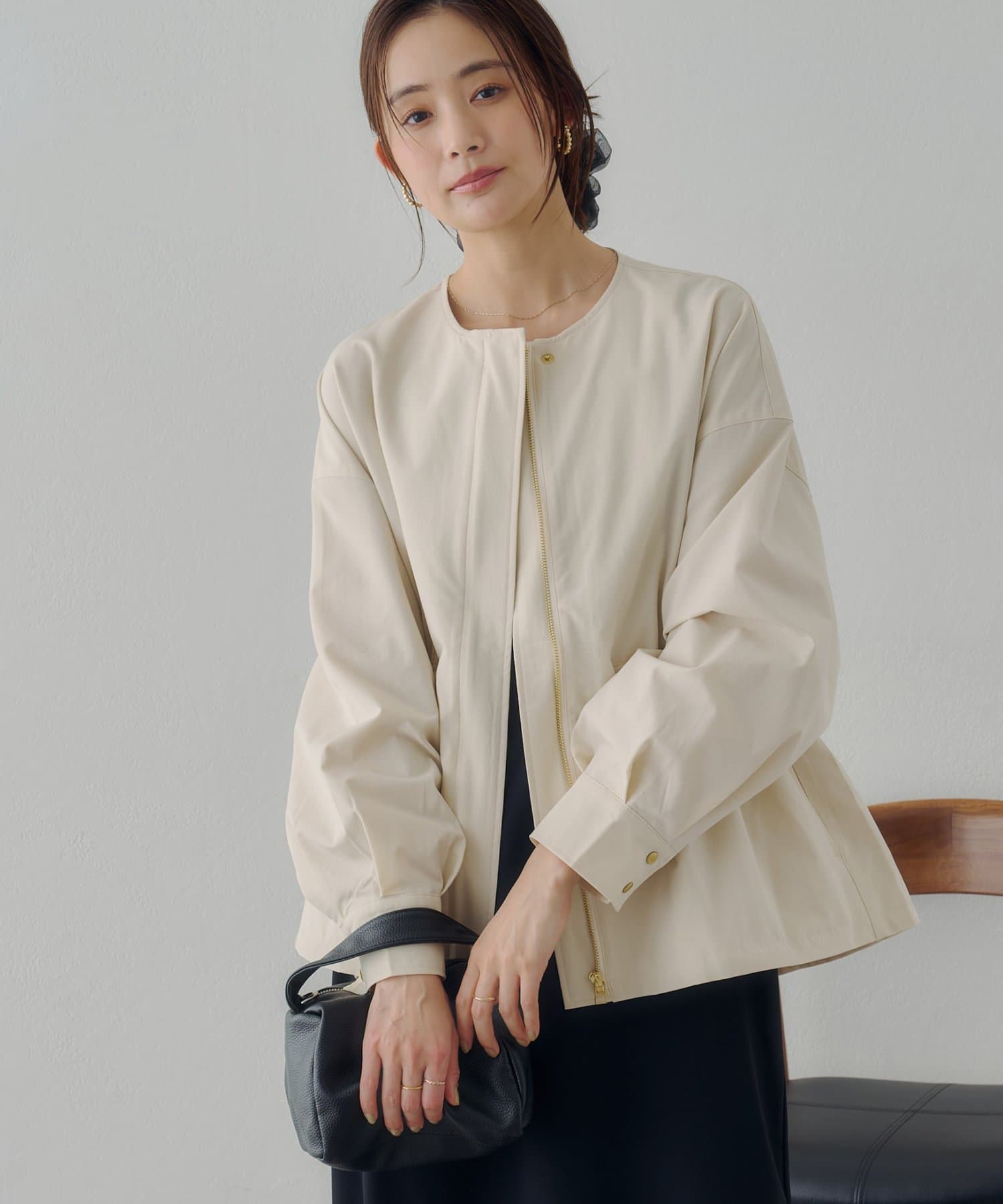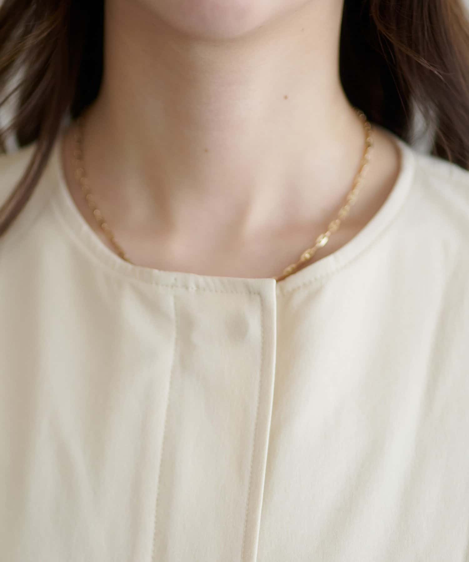・ノーカラーデザインは、顔回りをすっきりとした印象に仕上げます。